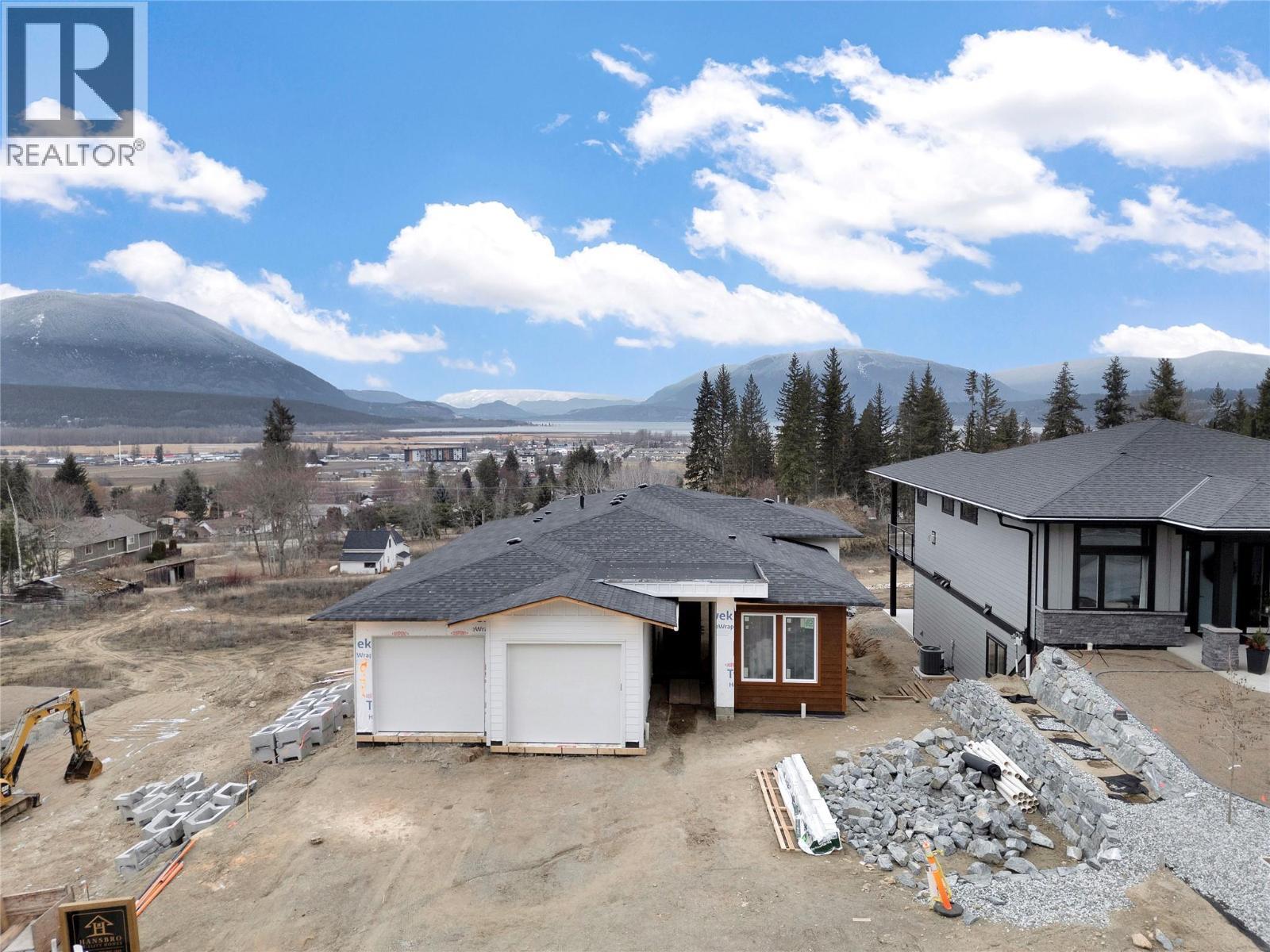 Discover Salmon Arm living at its best with this stunning new rancher by Hansbro Quality Homes—currently under construction in one of the city’s newest subdivisions. Known for their quality craftsmanship and thoughtful design, Hansbro brings their signature style and attention to detail to the Shuswap. Step inside and you’ll be welcomed by soaring 11-foot ceilings and oversized picture windows framing panoramic views of Shuswap Lake and the surrounding mountains. The open-concept main level flows seamlessly between the kitchen, dining, and living areas, creating the perfect space for gathering and everyday living. The primary suite is designed to impress, complete with a walk-in closet, a spa-inspired ensuite, and a smart connection to the laundry room. A second bedroom or office near the entry, along with a full bathroom, makes hosting guests or working from home effortless. The unfinished lower level is a blank canvas for your vision—roughed in for a legal suite, with the flexibility to add one or two bedrooms, plus a suspended slab under the garage that’s ideal for a media room, home gym, or even a hockey practice zone for the kids. All of this is set just minutes from Salmon Arm’s vibrant downtown, schools, parks, and recreation—plus the four-season lifestyle of the Shuswap right at your doorstep. Your opportunity to secure a brand-new home in a growing community is here—don’t miss it. (id:6769)