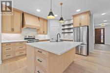 Stunning only begins to describe this beautifully designed 3-bedroom, 2.5 bath + den + bonus room home that showcases quality craftsmanship and high-end finishes throughout. From the moment you enter the spacious foyer, you’ll appreciate the attention to detail and thoughtful design. Featuring engineered hardwood flooring, ceramic tile, custom cabinetry, and quartz countertops, this home blends style with functionality. The kitchen is a chef’s dream—complete with a large island, walk-in pantry, gas stove, gorgeous over range hood fan, dishwasher, built-in microwave and stainless refrigerator. Enjoy the 9-ft ceilings, an inviting living room with a gas fireplace, dining room for family gatherings, den/office, main floor laundry with washer/dryer, a 2pc bath, and a spa like primary bedroom with 4 pc ensuite and walk-in closet. Don't forget the covered decks that extend your living space outdoors. The walk-out basement adds flexibility with a spacious family room, 2 additional bedrooms, a spacious 4 pc bathroom and a bonus/flex room. The attached 21’x21’ double garage offers plenty of parking and storage. Built with ICF construction to the trusses, this home is up to 80% more energy-efficient than traditional builds, offering significant savings on heating and cooling costs. Outside, this property comes with a fully landscaped yard (to be completed), lake and mountain views, and low strata fees of just $80/month, which include lawn care and road maintenance. No age restrictions—just modern, efficient living at its best! (id:6769)