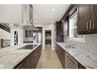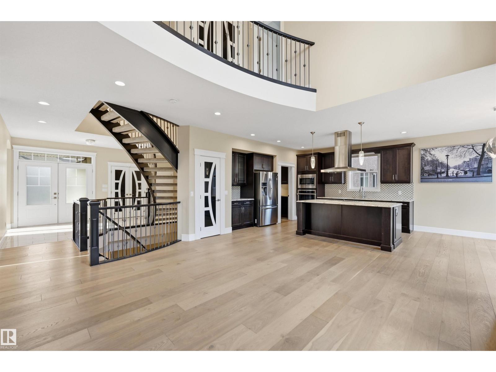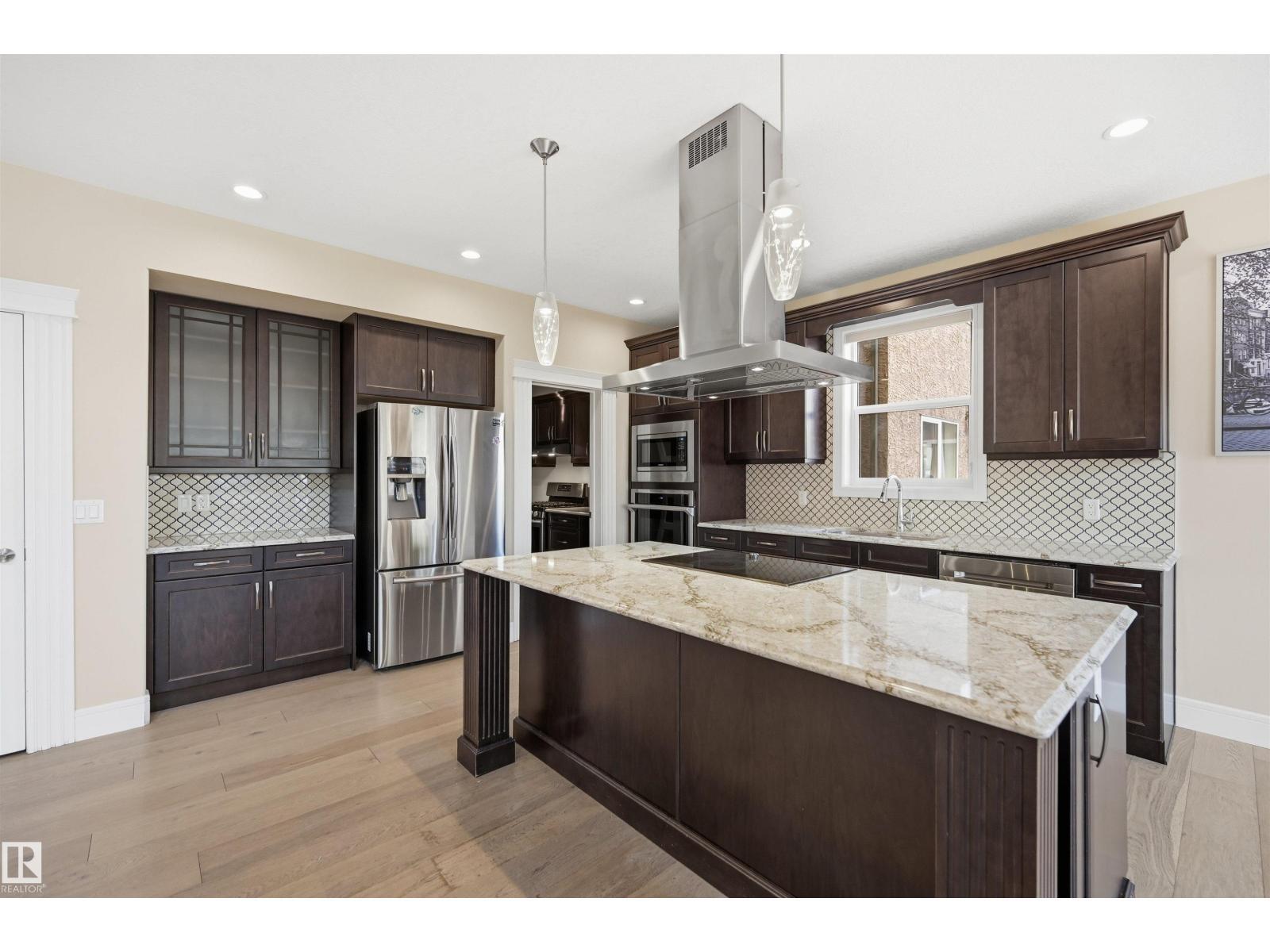 Experience the perfect blend of lifestyle & family living in this exceptional home. Ideal for a growing or large family, it offers convenient access to all amenities, including scenic ponds, parks, Whitemud Creek ravine, restaurants & within catchment of 5 schools. Approx 4700sf of total living space complete with 6 bedrooms +2 offices, 2 kitchens, 3 dining areas, 3 living areas, triple garage, oversized driveway & spacious backyard. A curved staircase leads you through an open layout accented by soaring two-storey windows & expansive living spaces. Sunny southwest dining room doubles as a formal greeting area. Great room offers plenty of natural light. Generous sized kitchen w/plenty of storage, 2nd prep/spice kitchen & dining nook. Convenient main floor bedroom & 2 offices for work/study/hobbies. Upper level features 4 bedrooms including a primary which will house a king sized set & complete w/5pc ensuite & walk-in closet. Lower level will accommodate any furniture arrangement & offers a 6th bedroom. (id:6769)