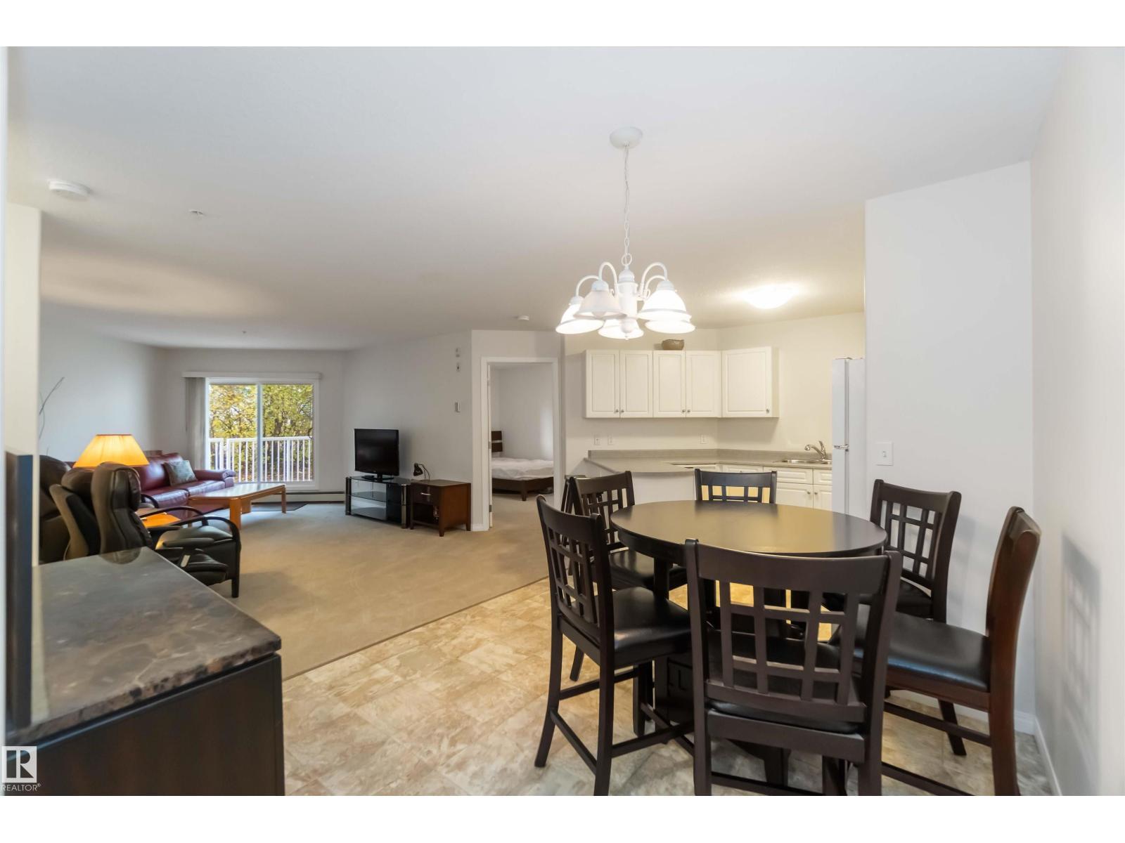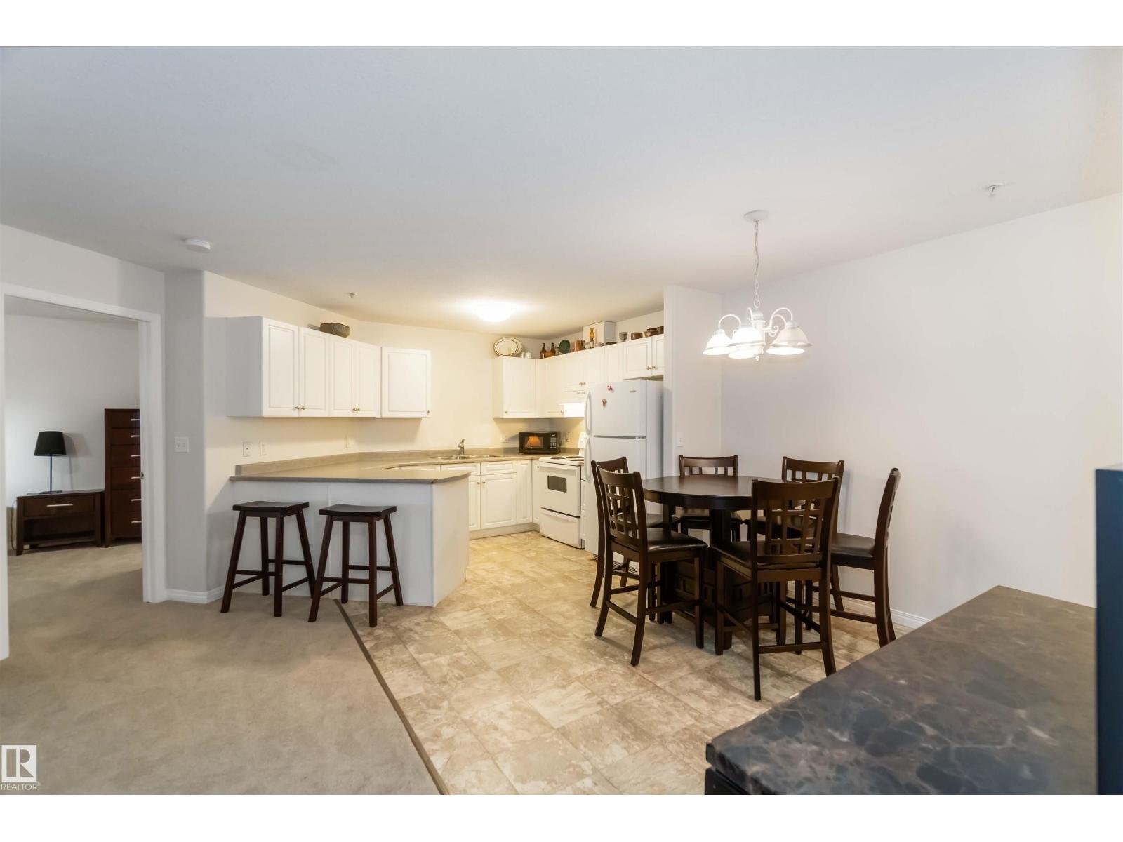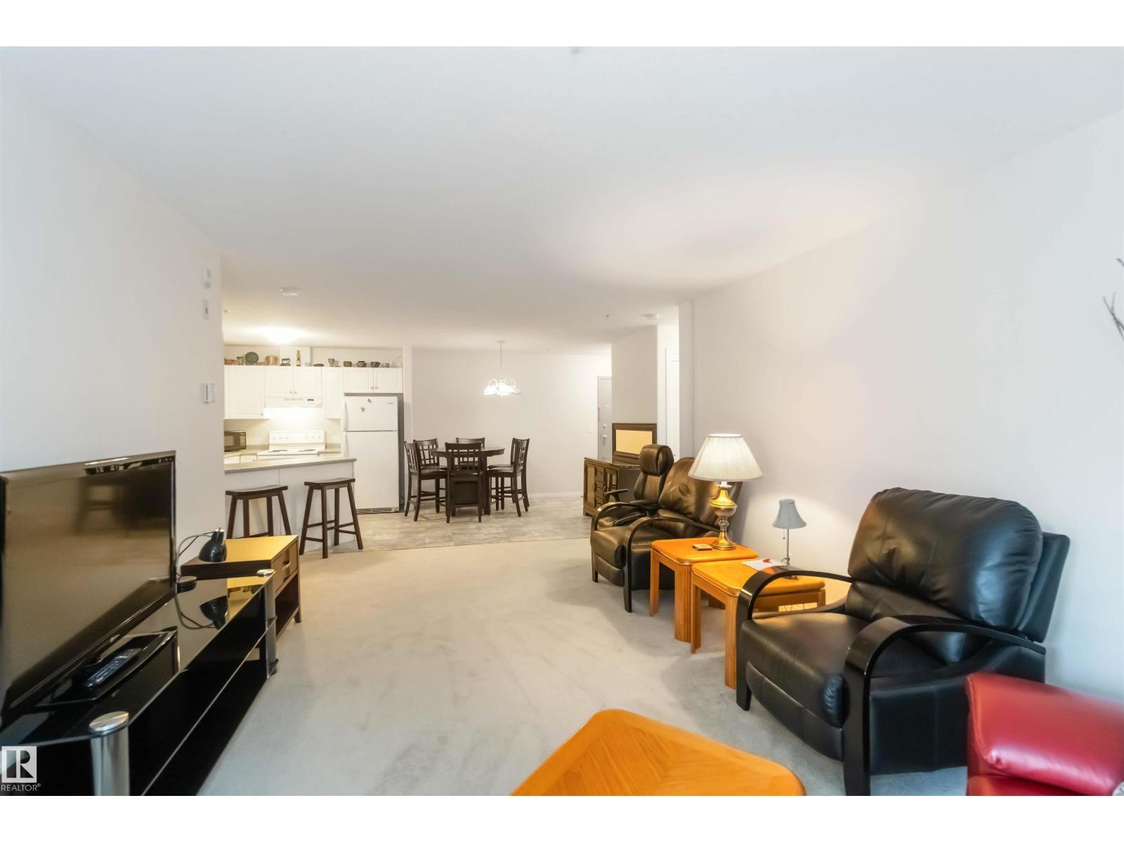 This incredibly well-kept 2-bedroom, 2 bath condo is located in one of the most sought-after locations in Fort Saskatchewan, situated on the banks of the river valley and backing onto the extensive trail system. Walking distance to Fort Heritage Precinct, shopping, including co-op and Legacy Park. This main floor unit is easily accessible from the front entrance and has NO STAIRS. Inside, you'll find a practical floor plan featuring two large bedrooms, including the primary with a walk-in closet and 4 pc. ensuite. Off the open and bright living room, you'll find the sliding doors, leading to the ground-level PATIO with exposed aggregate concrete and a low-maintenance aluminum railing with a gate. The spacious kitchen features plenty of cabinet and counter space, including an eating peninsula. This unit includes IN-SUITE laundry and an assigned parking stall. There is plenty of visitor and on-street parking at the building. You cannot beat the value, convenience and picturesque location of this property (id:6769)
