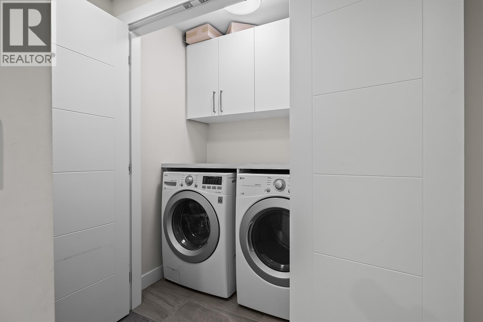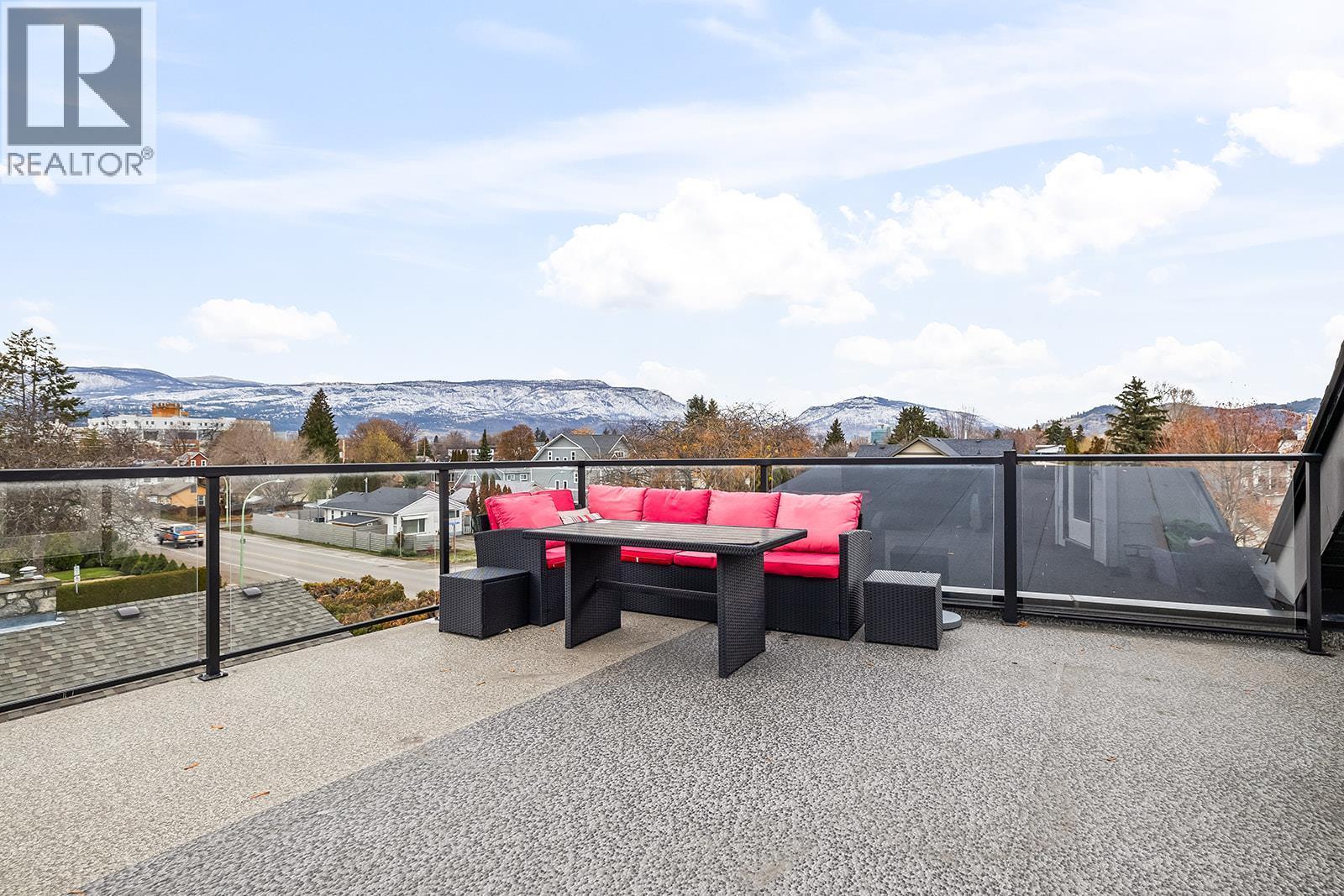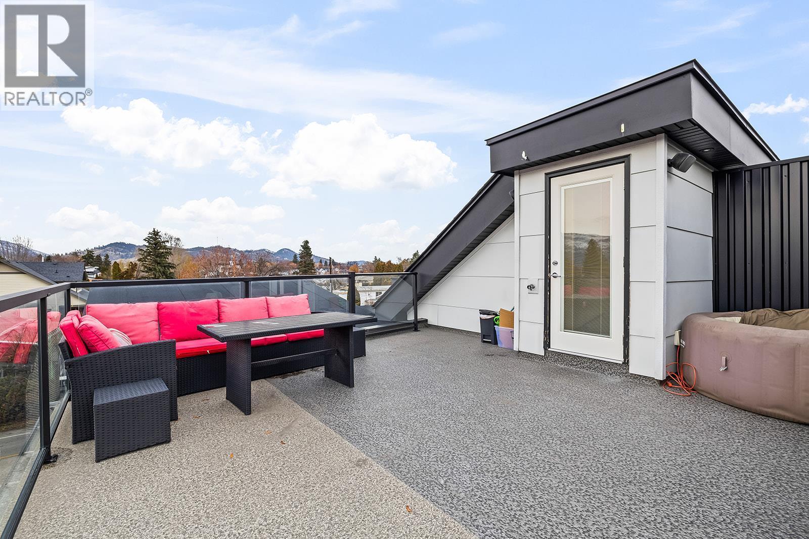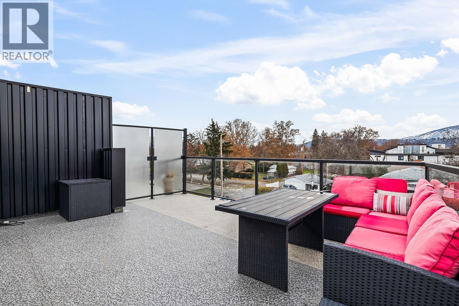 Stunning contemporary style townhome located in desirable South Kelowna - just a short walk to the beach, hospital, and South Pandosy shopping. 4-plex design with low strata fees & high-end finishings. Fantastic outdoor space featuring private roof top deck which is engineered for a hot-tub and plumbed for gas barbeque, plus there is a main floor side yard deck. 2 storey design unit with 2 beds, 2 baths and laundry on the 2nd floor. Open main floor with oak hardwood floors, built-in dining room bar with wine fridge, island kitchen with high quality stainless steel appliances including 5 burner gas range, plus half bath. Lower level consists of a large rec room which could be converted into a den plus a flex room. This level also features a full bathroom. Quality upgrades include quartz counter-tops, engineered hardwood floors, 3 zone home audio system, tank-less hot water heating frame-less glass shower, epoxy garage floor with glass/aluminum garage door. No rental or pet restrictions & low strata fees! Fantastic location, gorgeous designs and high-end finishings! (id:6769)