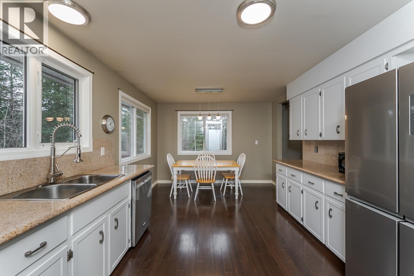 Beautifully updated family home on over 5 private, treed park like acres just 15 minutes from downtown. Recent upgrades include a brand-new kitchen with a natural gas stove, a 2025 hot water tank, and a 2023 roof. The impressive 25x40 shop features a sub-panel and 220V power. 200-amp service at the home. Enjoy the large deck with a natural gas BBQ hookup. The downstairs office can easily be converted into a fourth bedroom, and the 2-piece bathroom offers the option to add a shower. School bus pickup is right at the driveway, and two separate access routes provide convenient flexibility whether you’re heading into town or traveling south. (id:6769)