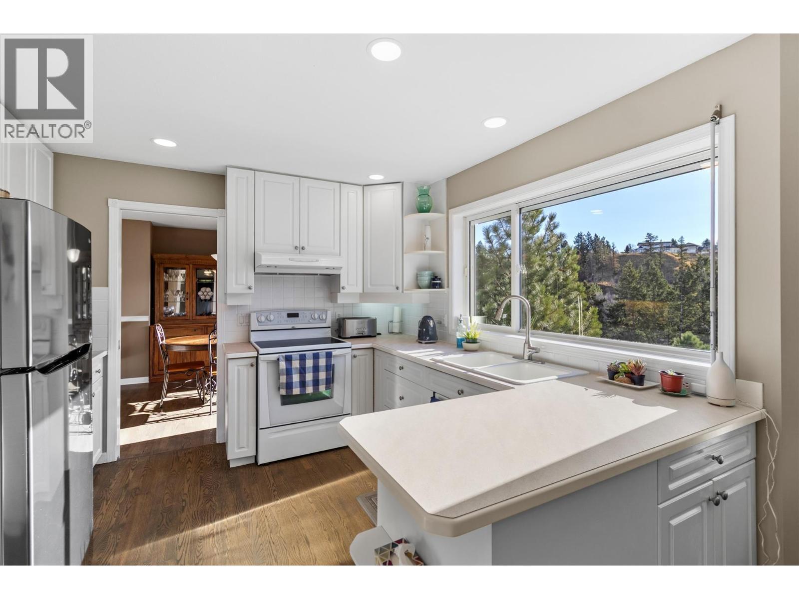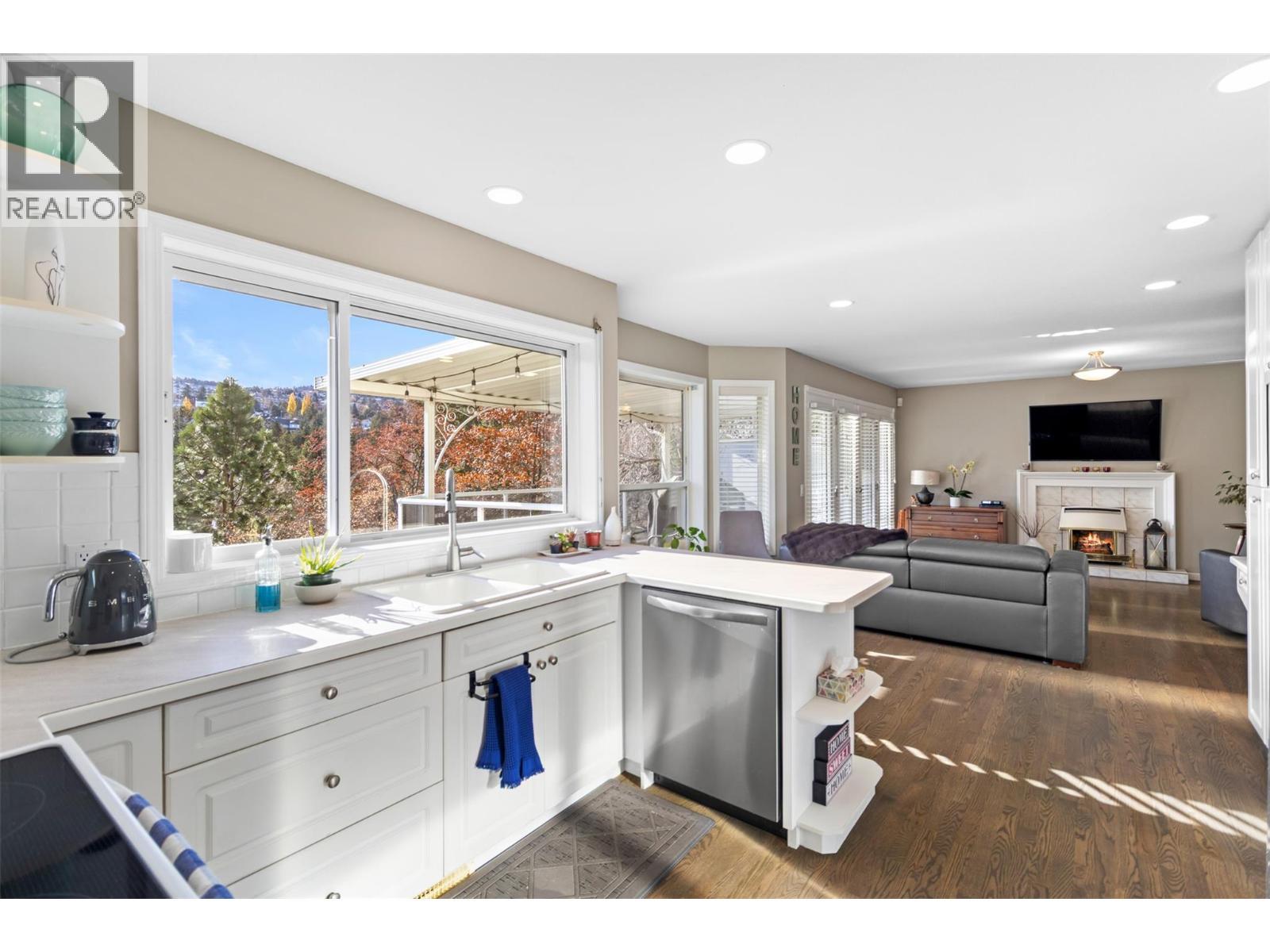 Discover refined living in this beautifully crafted, four-level split home with a bright walk-out daylight basement. Perfectly positioned in sought-after Eagle Heights on a quiet cul-de-sac, this custom residence backs onto a serene forested greenbelt, offering exceptional privacy and a picturesque natural setting. With approximately 3,200 sqft of well-designed living space, this home offers 4 bedrooms and 4 bathrooms. The thoughtfully modelled kitchen opens to a cozy eating area and an inviting family room complete with a gas fireplace and sliding doors to a covered deck—ideal for year-round enjoyment. The impressive living room boasts vaulted ceilings and a gas fireplace, overlooking the elegant formal dining room. A convenient den and laundry room complete the main level. The lower level provides a spacious family/rec room perfect for movie nights or entertaining. Comfort and convenience abound with central air conditioning, built-in vacuum, underground sprinklers, and a relaxing jetted tub. Modern paint tones complement a tasteful blend of hardwood, tile, and carpet flooring throughout. On-demand hot water, Roof 2021. This is an exceptional opportunity to own a beautifully appointed home in a prime location, surrounded by nature yet close to amenities. Don’t miss it! (id:6769)