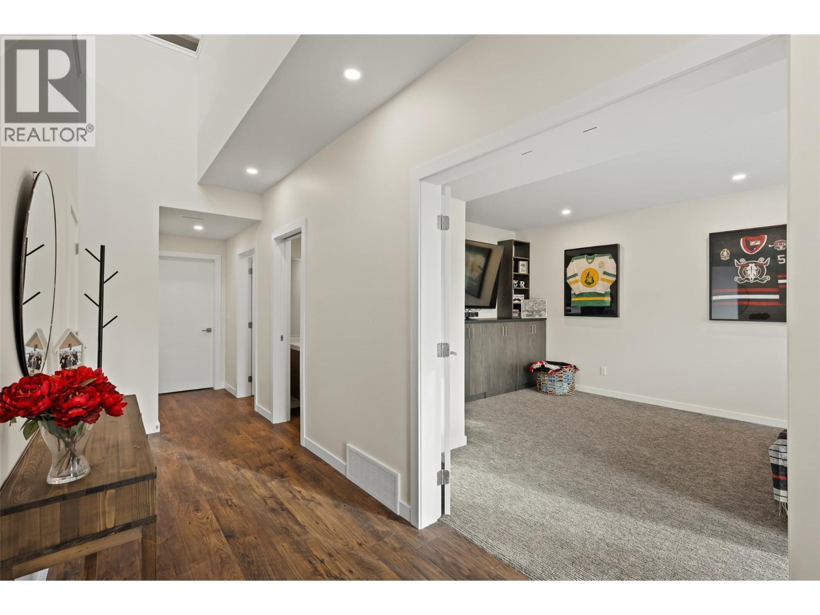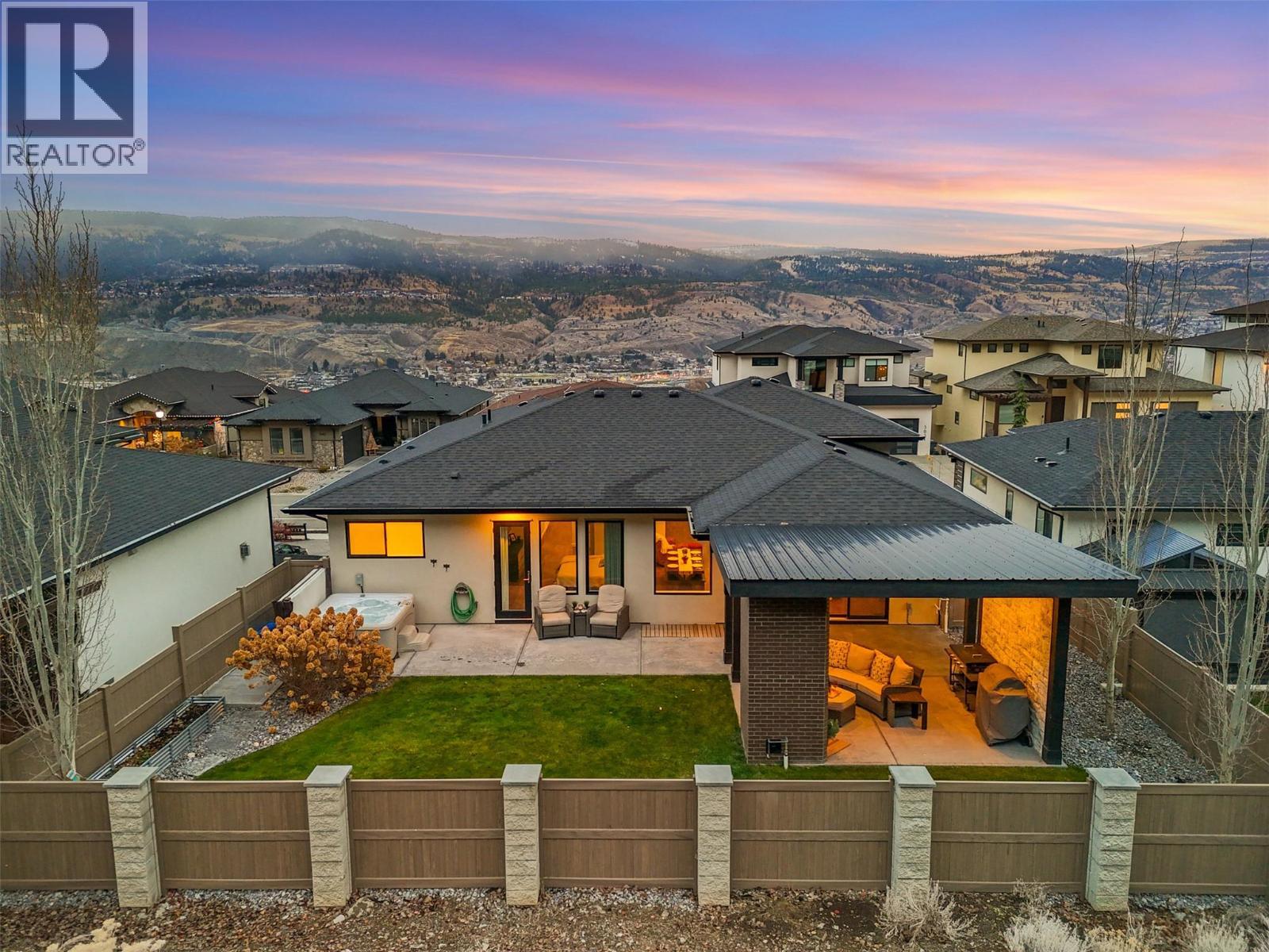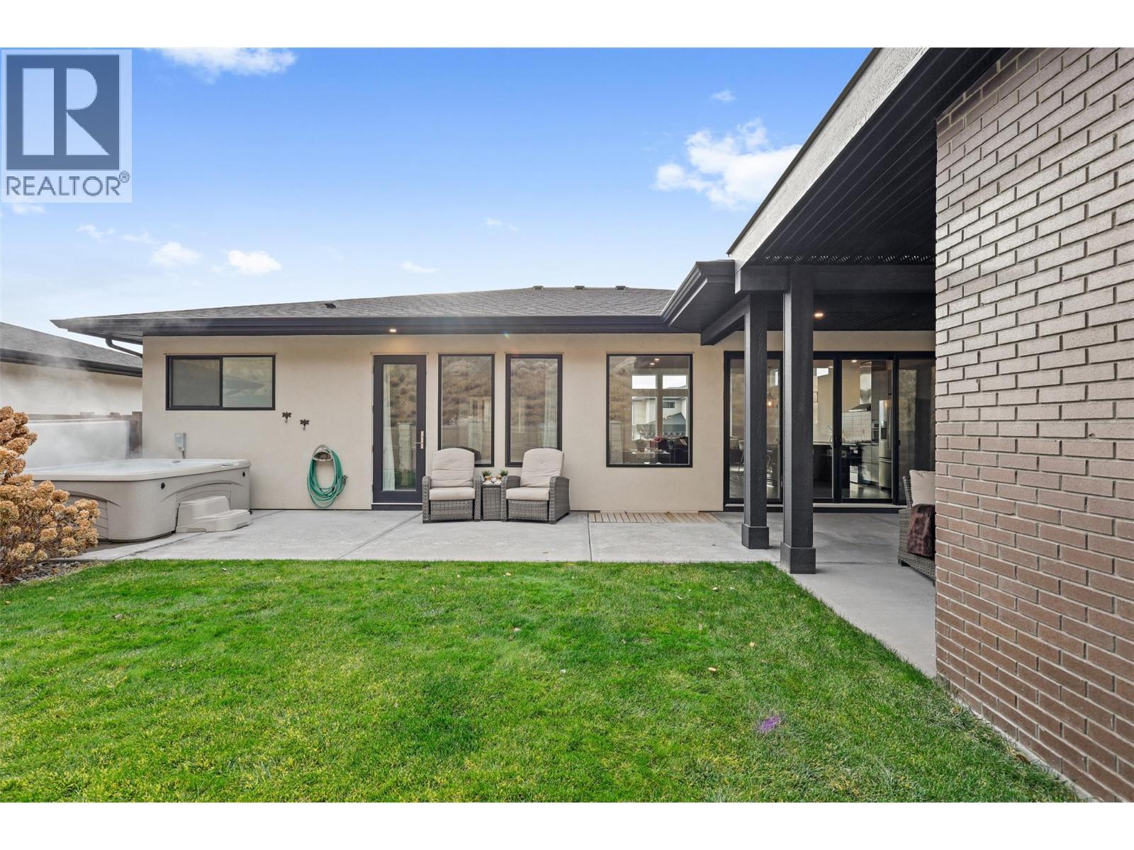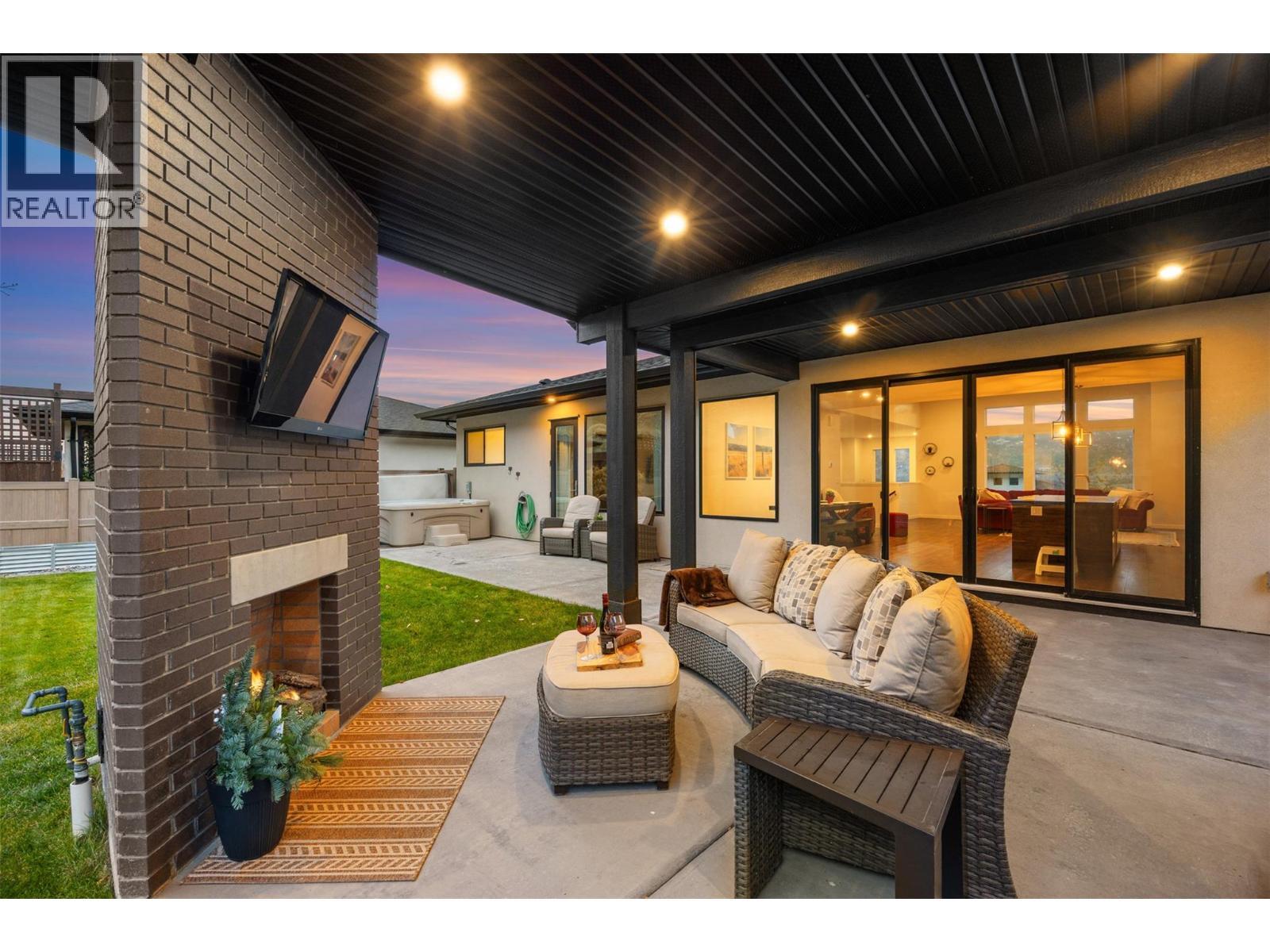 This modern 2019-built home is located in the highly regarded Sun Rivers community, known for its scenic setting and convenient access to amenities. The home offers a functional layout with quality finishes and a bright, open-concept main floor that connects the living room, dining area, and kitchen. The kitchen features a large island, sleek cabinetry, and stainless steel appliances, with direct access to the backyard patio. The primary bedroom is privately situated on the main level and includes a custom accent wall, walk-in closet, and a well-finished ensuite. Two additional bedrooms, a full bathroom, and a dedicated office complete the main floor. The lower level includes a spacious rec room, laundry room, powder room, and access to both the garage and an unfinished gym/storage area. The backyard and covered patio area are designed for everyday use, featuring a built-in fireplace, comfortable seating area, a hot tub, and space for outdoor dining and entertaining. Backing onto the natural hillside, the yard provides privacy and a quiet, relaxing atmosphere. Living in Sun Rivers offers walking paths, a strong sense of community, and quick access to the Bighorn Golf Course, restaurant, and clubhouse amenities. This home is ideal for buyers seeking modern construction, a practical layout, and inviting outdoor space in one of Kamloops’ most desirable communities. (id:6769)