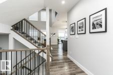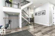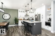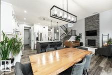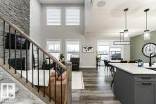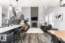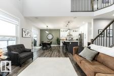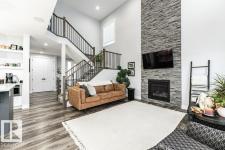 Nestled in a quiet cul-de-sac, this stunning home backs onto serene greenspace and sits just steps from the River Valley, dog park, and Andy’s Playground. The impressive open-to-below living room features a beautiful fireplace that anchors the main floor, complemented by gas stove, stone countertops and a large raised island in the spacious kitchen. Upstairs, the elegant primary suite flows seamlessly into a luxurious ensuite, through the walk-in closet, and directly into the convenient laundry room, looping back to the hallway. Two additional bedrooms and a bonus room—with a door, making it an easy fourth bedroom—offer flexible living options. Outside, the yard is fully landscaped and fenced, perfect for relaxing or entertaining. Additional highlights include air conditioning and a heated, oversized garage ideal for extra storage or hobby space. This home combines comfort, style, and an unbeatable location. (id:6769)