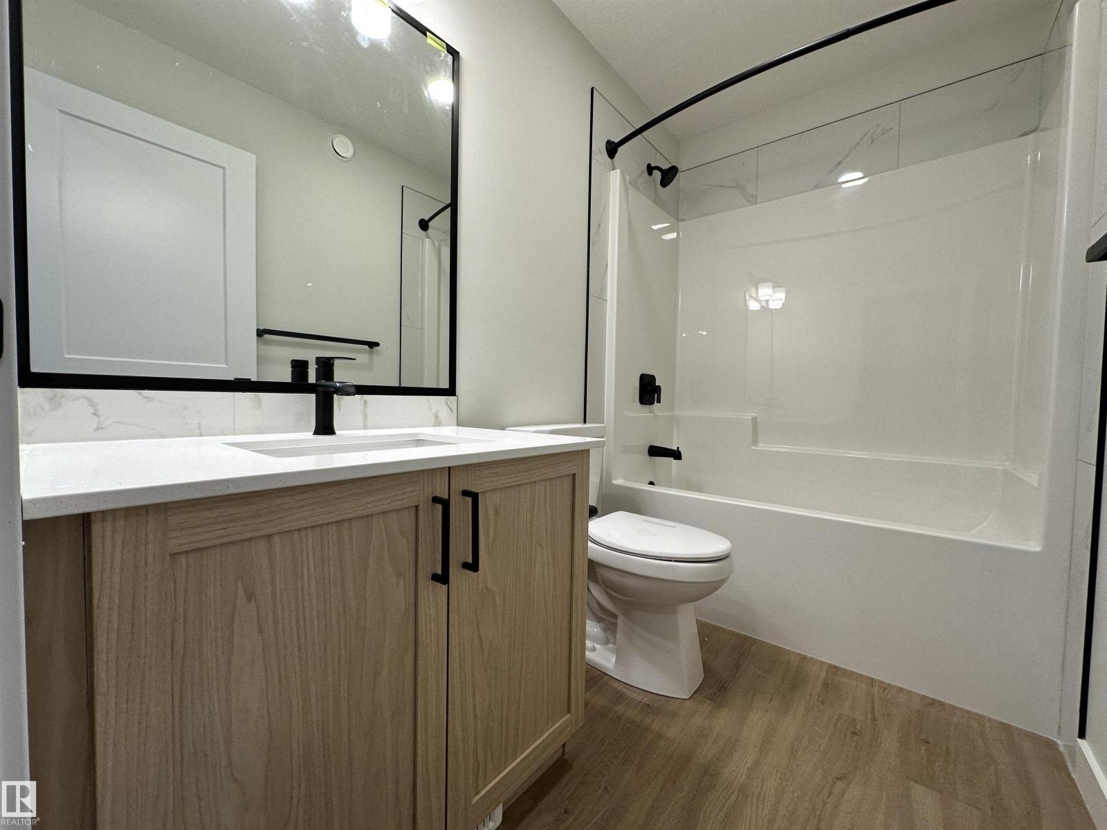 This brand-new Alquinn home offers a thoughtfully designed open-concept main floor that seamlessly connects the living, dining, and kitchen areas—ideal for modern living and entertaining. The gourmet kitchen is finished with a central island and breakfast bar, corner pantry, and quality finishes throughout. Upstairs, comfort and functionality continue with a spacious bonus room, upper-floor laundry, two additional bedrooms, and a full bathroom. The primary suite serves as a private retreat, featuring a walk-in closet and a spa-inspired 5-piece ensuite. Smart design elements include large garage, separate side entrance, and a practical mudroom to support everyday living. Quality craftsmanship and elegant details are evident throughout this well-appointed home. UPGRADES INCLUDE: bonus room, upper-floor laundry, garage w drain, separate entrance, mudroom, upgraded kitchen finishes, and more. (id:6769)