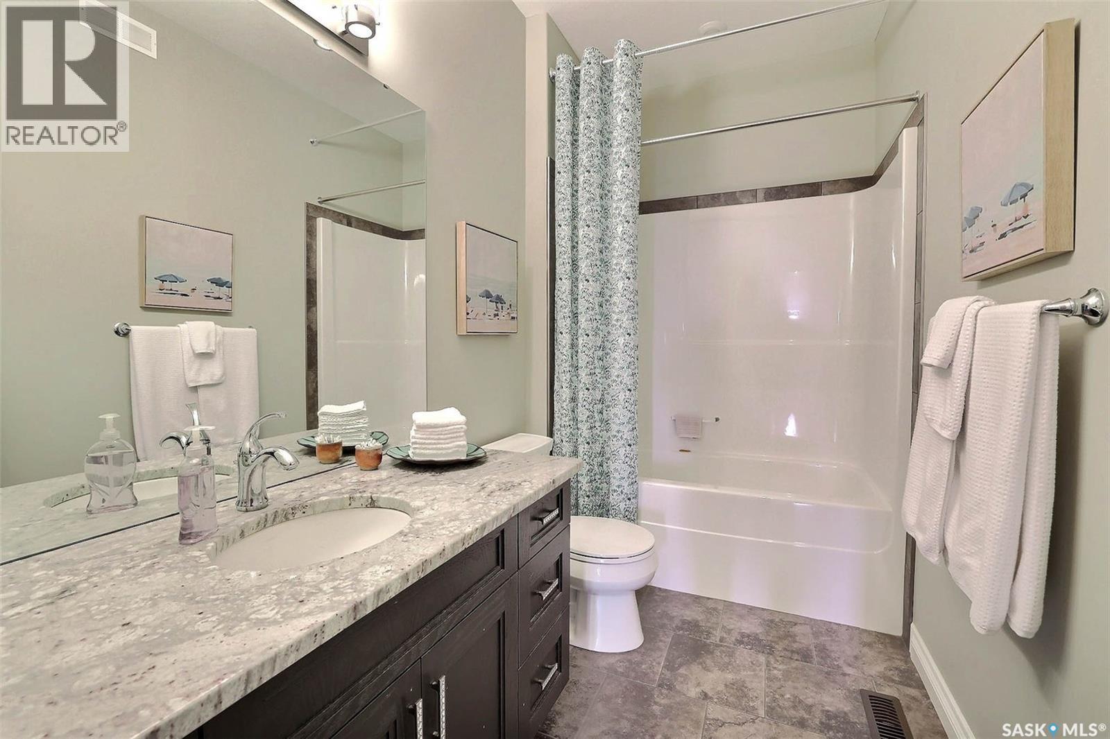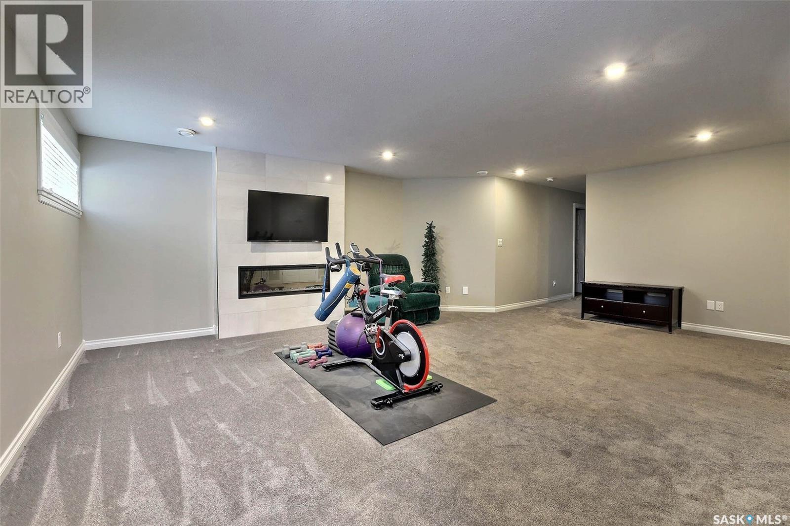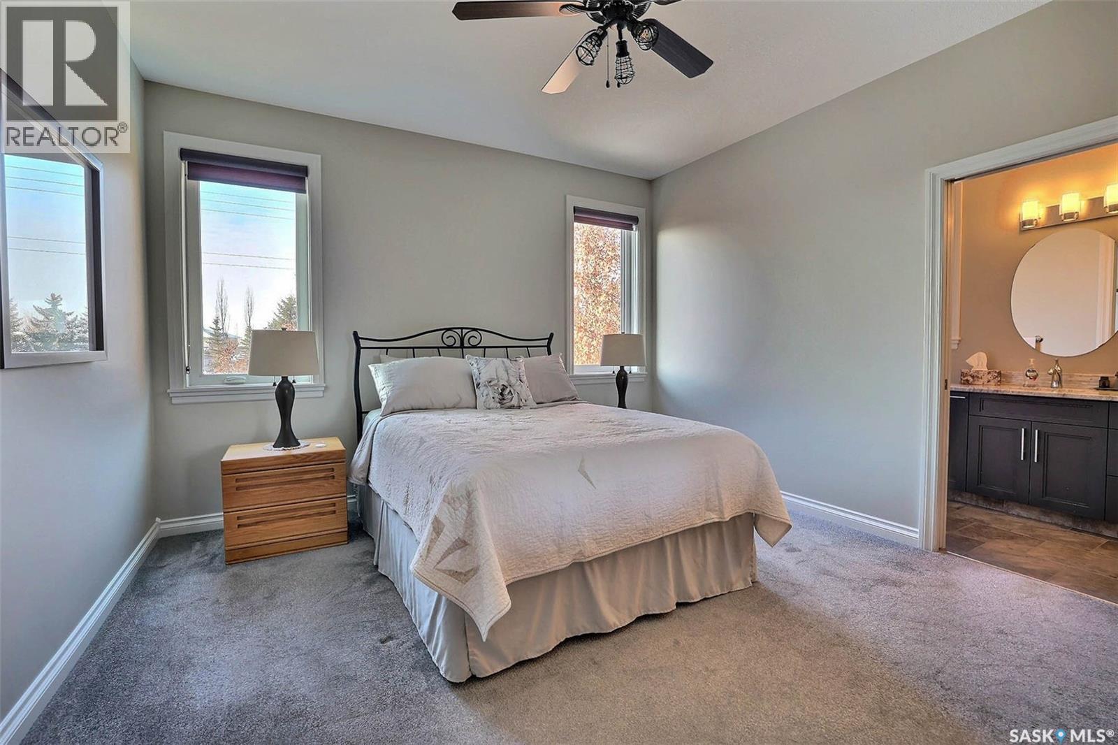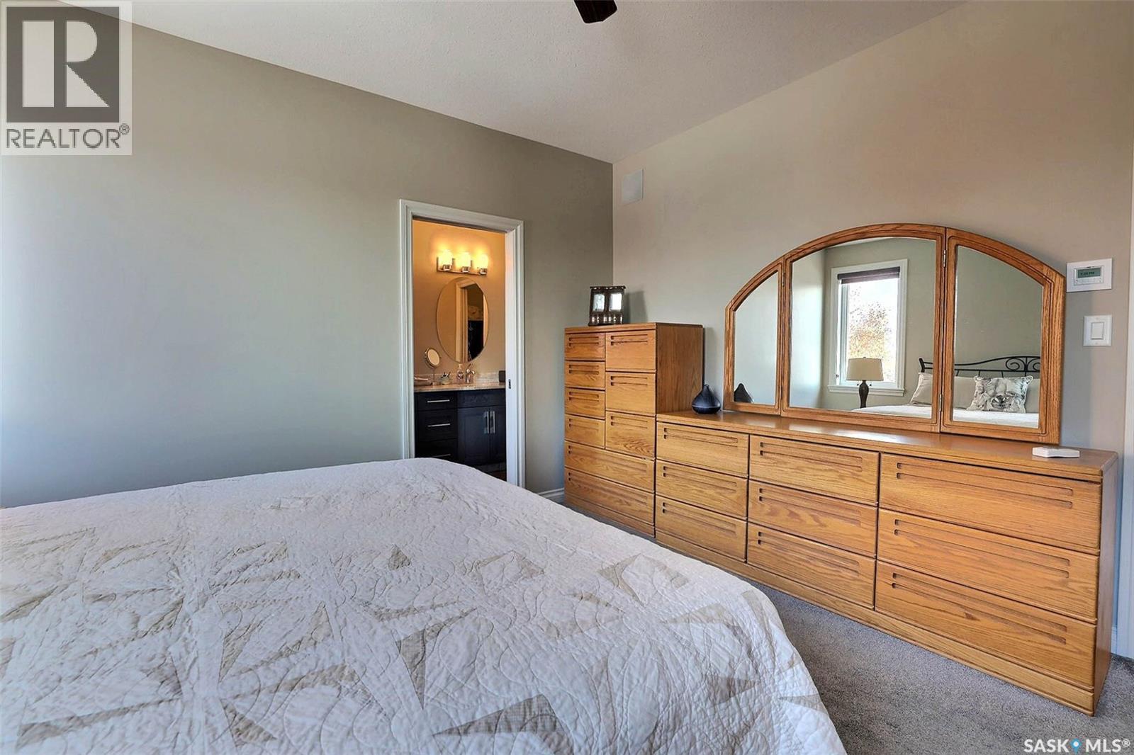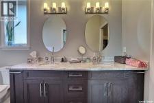 Absolutely stunning former Emerald Park Homes Showhome. Meticulously kept this beautiful fully developed bungalow is better than new. Spacious, open layout has large front entry leading to generously sized living area boasting fireplace feature wall and custom built-ins, chef's dream gourmet kitchen with massive eat up island, custom granite countertops, high quality custom cabinetry to the ceiling are interiorly backlit, pantry and glass tile backsplash. Family sized dining area and abundance of south and west facing oversized windows flood the main floor with natural light along with gorgeous like new high quality hardwood floors throughout living areas. Large primary suite with 3pc ensuite featuring oversized shower, double vanity and walk in closet with custom shelving. 2nd bedroom generously sized. Main floor laundry with additional builder grade cabinets plus folding counterspace. Large, versatile mudroom off the front entry with lockers plus 2 extra closets for more storage. Direct entry to massive mechanics dream 31x28 triple attached garage. Heated, wired 220 and finished with extra height doors. Builder dev bsmt accessed by beautiful open rail custom staircase featuring 2 large corner front windows for extra brightness. Massive RR with fireplace feature wall, with large storage closets. 2 oversized large bedrooms with big windows very handy media room/den office and another 4pc bath plus and bonus 2nd laundry in utility room. Gorgeous, professionally landscaped and well treed private rear yard has a large maintenance free deck leading to lower custom stone patio with firepit feature. Additional pad for future hottub (wiring ready) large shed, lush lawn and tiered garden planter boxes. Underground sprinklers both front and back with drip lines for every tree and shrub on timers and handy dog run. So many upgrades and special features including all appliances, gemstone lighting on entire home, Home audio surround sound throughout. Call today! (id:6769)