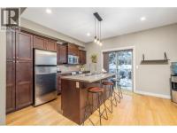 This thoughtfully designed 3-bedroom, 3-bathroom townhome in the popular The Rock complex blends comfort, location, and value. 9-foot ceilings and stunning engineered hardwood floors flow seamlessly through the living, dining, and kitchen areas. The kitchen features stainless steel appliances, ample storage and an island with a breakfast bar – perfect for morning coffee chats or casual family meals. Large windows flood the space with natural light, creating an airy and welcoming atmosphere that feels like home. The primary suite offers a private balcony, while the laundry on the second floor adds a touch of convenience to family living. Two additional bright bedrooms provide plenty of room for family or guests, and the convenient second-floor laundry area rounds out this top level. The private deck and ground-level patio allow access to the grassy common area, perfect for kids and pets. Unbeatable location just minutes from downtown, Okanagan Lake, local parks, and essential amenities. (id:6769)