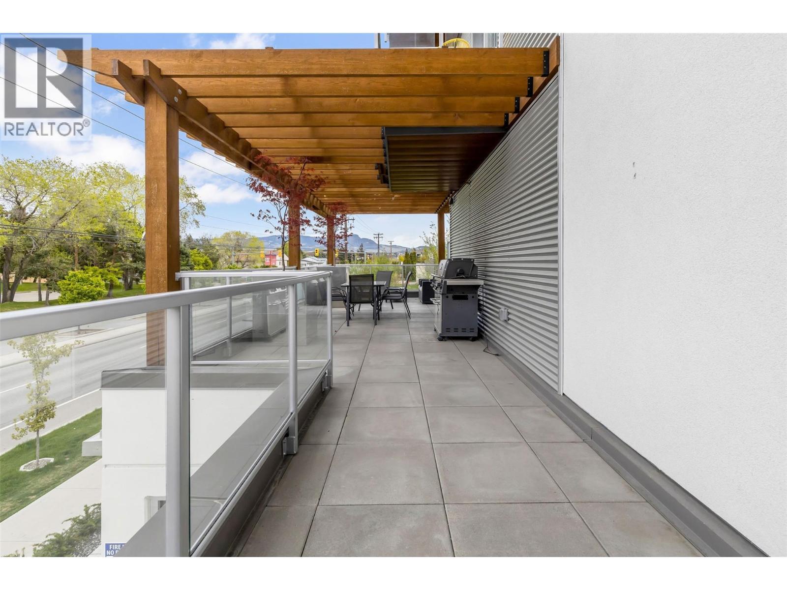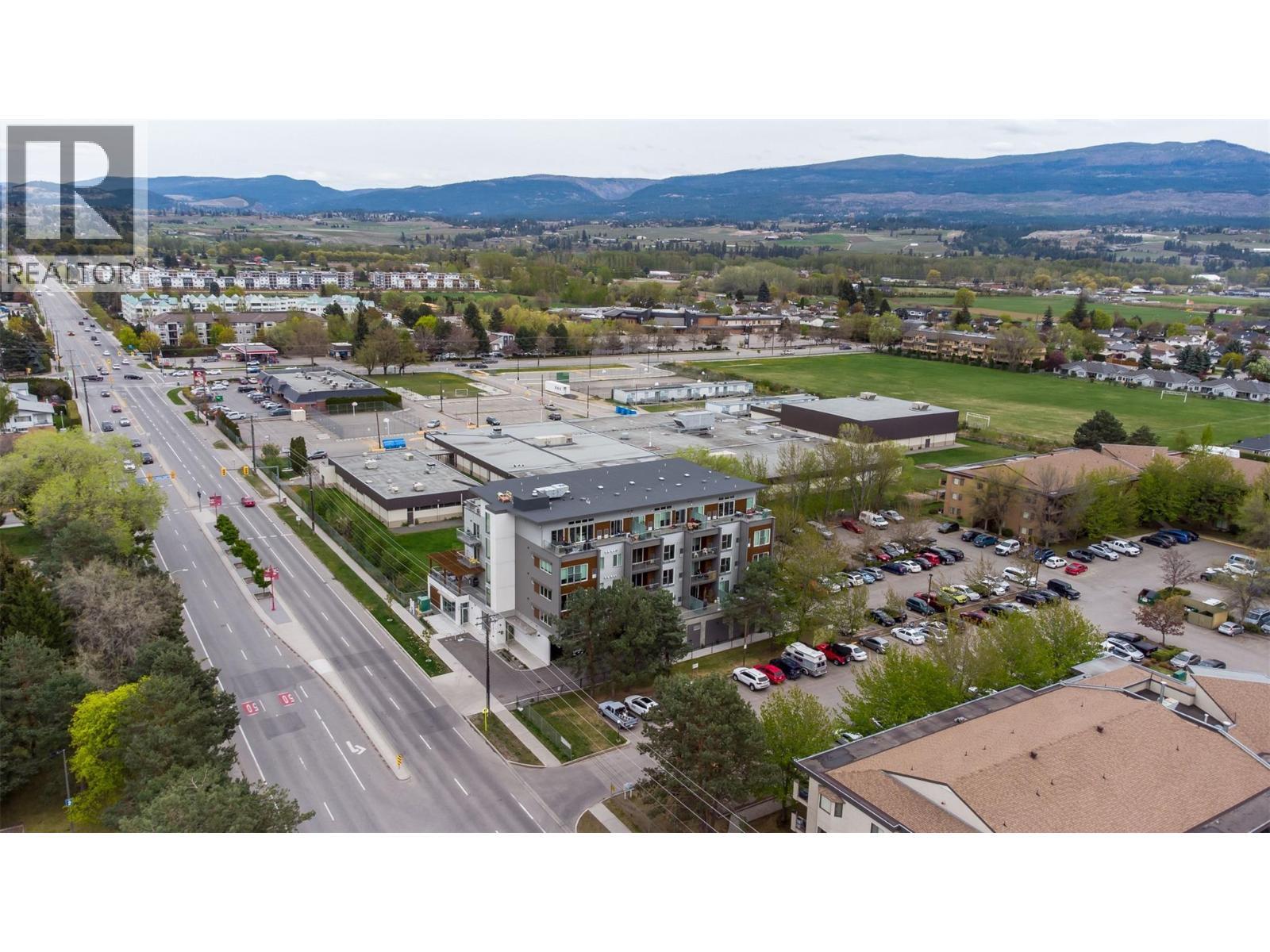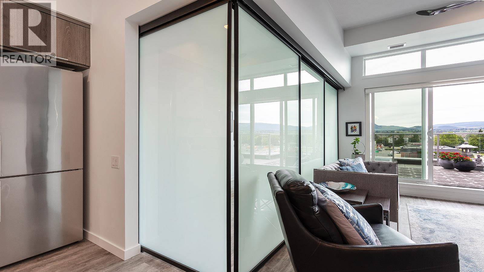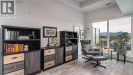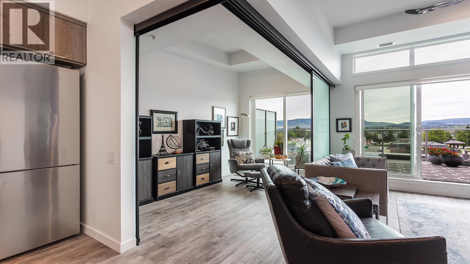 Welcome to SOLE on KLO — a bright, contemporary retreat perfectly positioned in the heart of the Lower Mission. This 1 bedroom + den, 1 bathroom residence offers effortless modern living with a rare nearly 300 sq. ft. outdoor terrace capturing expansive east-facing mountain views and gentle morning light. Inside, an open-concept layout is enhanced by sleek finishes, including quartz countertops, stainless steel appliances, modern cabinetry, and durable vinyl plank flooring. The spacious den provides valuable flexibility, easily functioning as a second sleeping area with room for a queen Murphy bed, ideal for guests or hybrid living needs. The bedroom is paired with a well-appointed bath featuring clean, modern lines and a glass-enclosed shower. Large windows and sliding doors draw natural light throughout the home while seamlessly connecting the interior living space to the oversized terrace, perfect for outdoor dining, relaxing, and taking in the panoramic landscape. Additional features include in-suite laundry and a generously sized parking stall. Located directly across from Okanagan College and moments from the boutiques, cafes, and waterfront pathways of Pandosy Village, this residence offers exceptional walkability and a vibrant urban lifestyle. (id:6769)