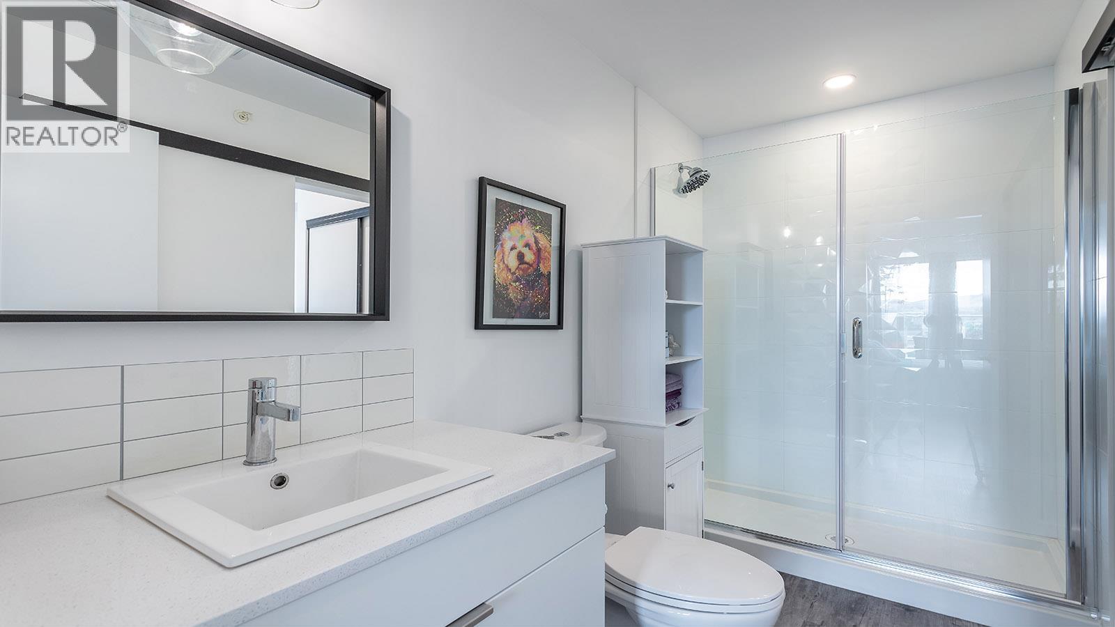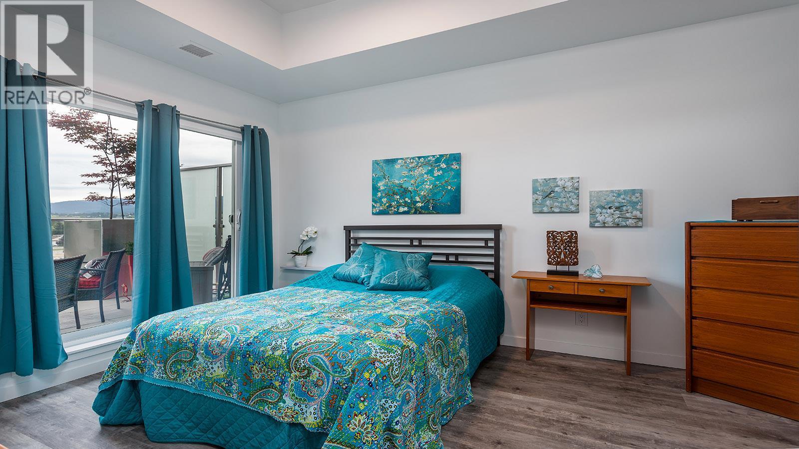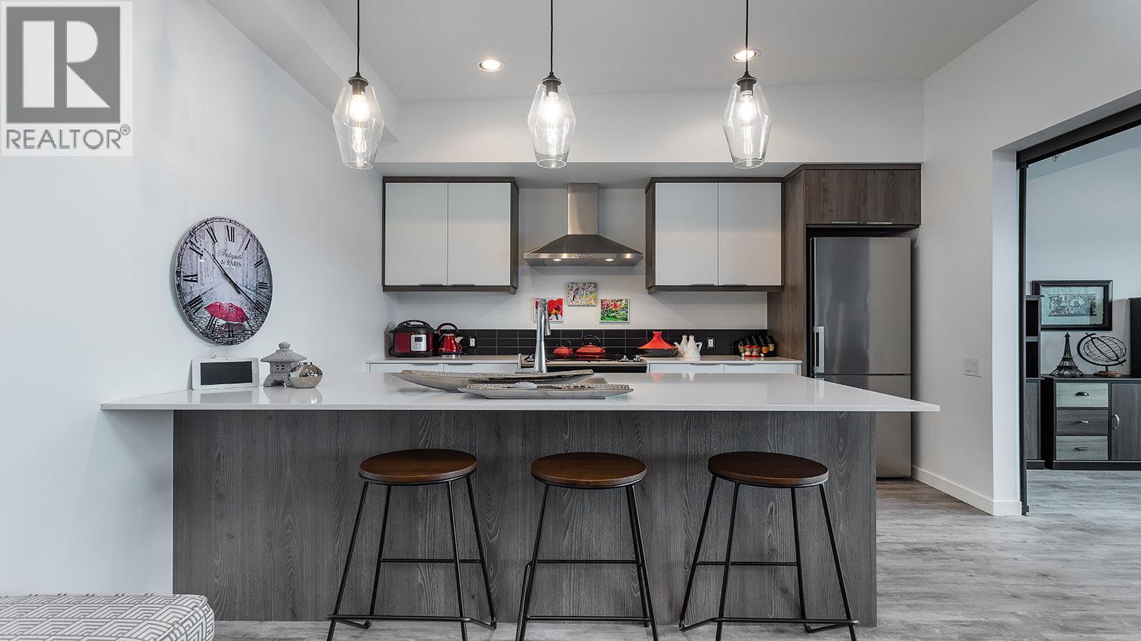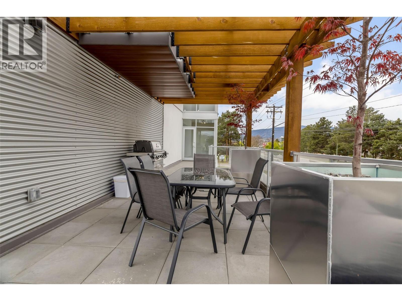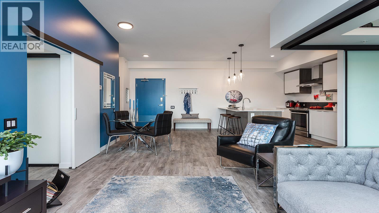 Welcome to SOLE on KLO — a bright, contemporary retreat perfectly positioned in the heart of the Lower Mission. This 1 bedroom + den, 1 bathroom residence offers effortless modern living with a rare nearly 300 sq. ft. outdoor terrace capturing expansive east-facing mountain views and gentle morning light. Inside, an open-concept layout is enhanced by sleek finishes, including quartz countertops, stainless steel appliances, modern cabinetry, and durable vinyl plank flooring. The spacious den provides valuable flexibility, easily functioning as a second sleeping area with room for a queen Murphy bed, ideal for guests or hybrid living needs. The bedroom is paired with a well-appointed bath featuring clean, modern lines and a glass-enclosed shower. Large windows and sliding doors draw natural light throughout the home while seamlessly connecting the interior living space to the oversized terrace, perfect for outdoor dining, relaxing, and taking in the panoramic landscape. Additional features include in-suite laundry and a generously sized parking stall. Located directly across from Okanagan College and moments from the boutiques, cafes, and waterfront pathways of Pandosy Village, this residence offers exceptional walkability and a vibrant urban lifestyle. (id:6769)