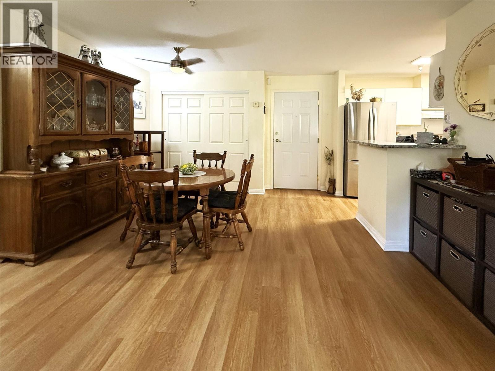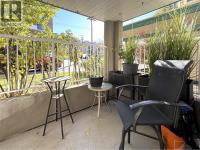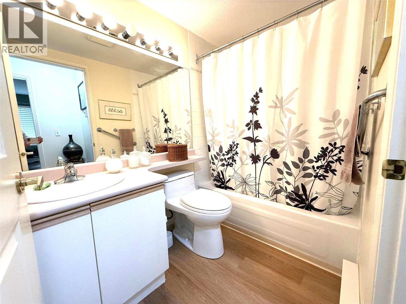 Bright & Comfortable 55+ Living at Manor House. Great opportunity to own in the highly desired, centrally located Manor House. This 55+ community offers comfort, convenience, and a welcoming atmosphere. This updated, 2-bedroom, 2-bath unit is move-in ready with end of November possession. Enjoy the benefits of a main floor location, perfect for easy access and relaxing on your covered private deck surrounded by trees. Inside, you’ll find easy-care laminate flooring, an updated bathroom with a large walk-in shower., plus a spacious open-plan living and dining area. The bright kitchen comes with all appliances & new counters with wider bar for entertaining. Added conveniences include a wall A/C unit, in-suite laundry with stacking washer & dryer, and extra storage. Manor House also offers a community recreation room for social gatherings with neighbours. Parking available by strata waitlist. (id:6769)