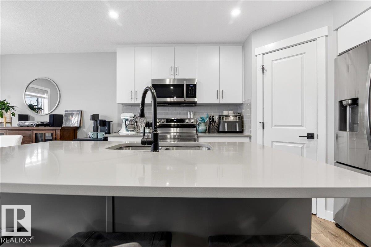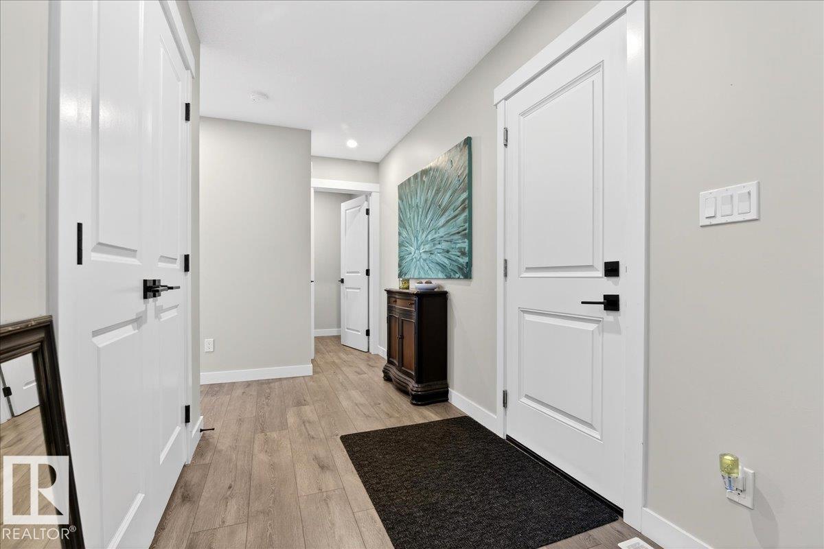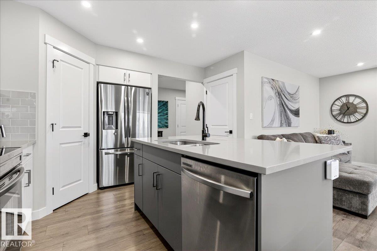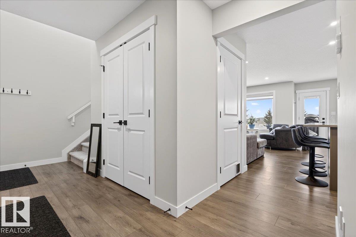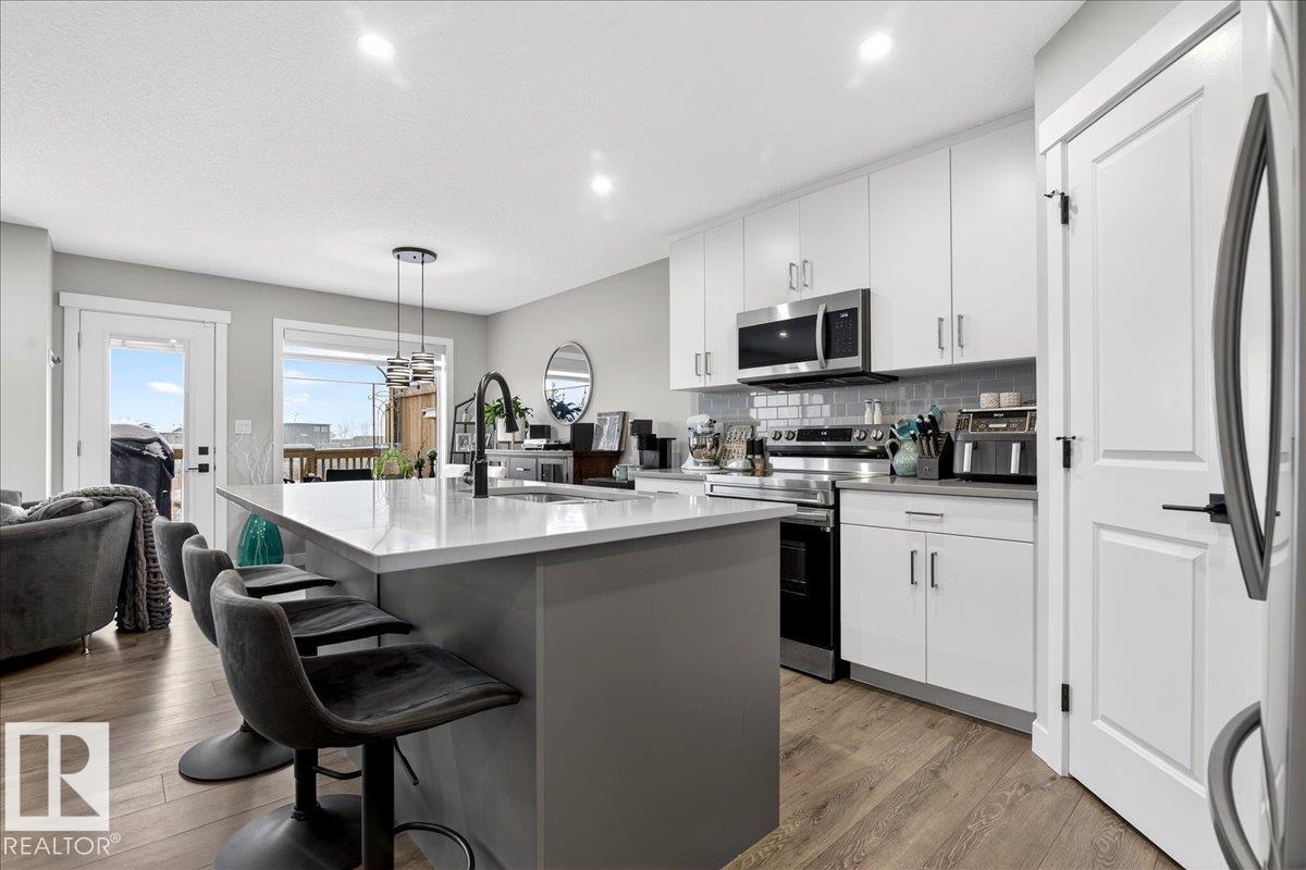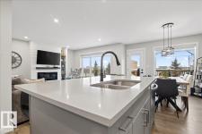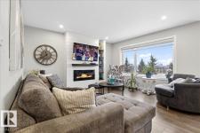 Welcome to this like-new half duplex offering beautiful, tasteful finishing and a peaceful setting backing onto nature with direct access to scenic walking trails. Designed for both comfort and function. The main floor offers an open, inviting layout with a fabulous kitchen and central island, great for entertaining. Natural light embraces the livingroom with the wall of windows. This home features 3 spacious bedrooms, including a primary retreat with a large ensuite showcasing double sinks, an oversized shower, and a walk-in closet. Enjoy the convenience of an upper-level laundry room located near the bedrooms. Central air for those hot summer nights, all window coverings included, fully fenced yard, privacy screen on the deck with a gazebo . Completing the package is a double attached garage that is fully insulated and drywalled. A rare opportunity to enjoy modern living backing nature—this home is move-in ready and shows like new. (id:6769)