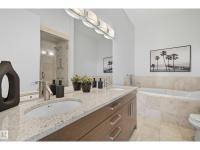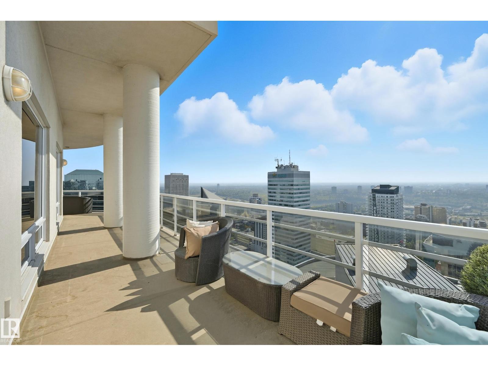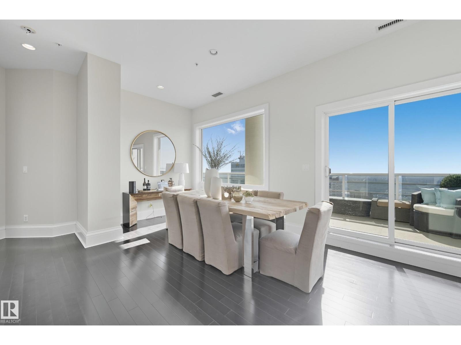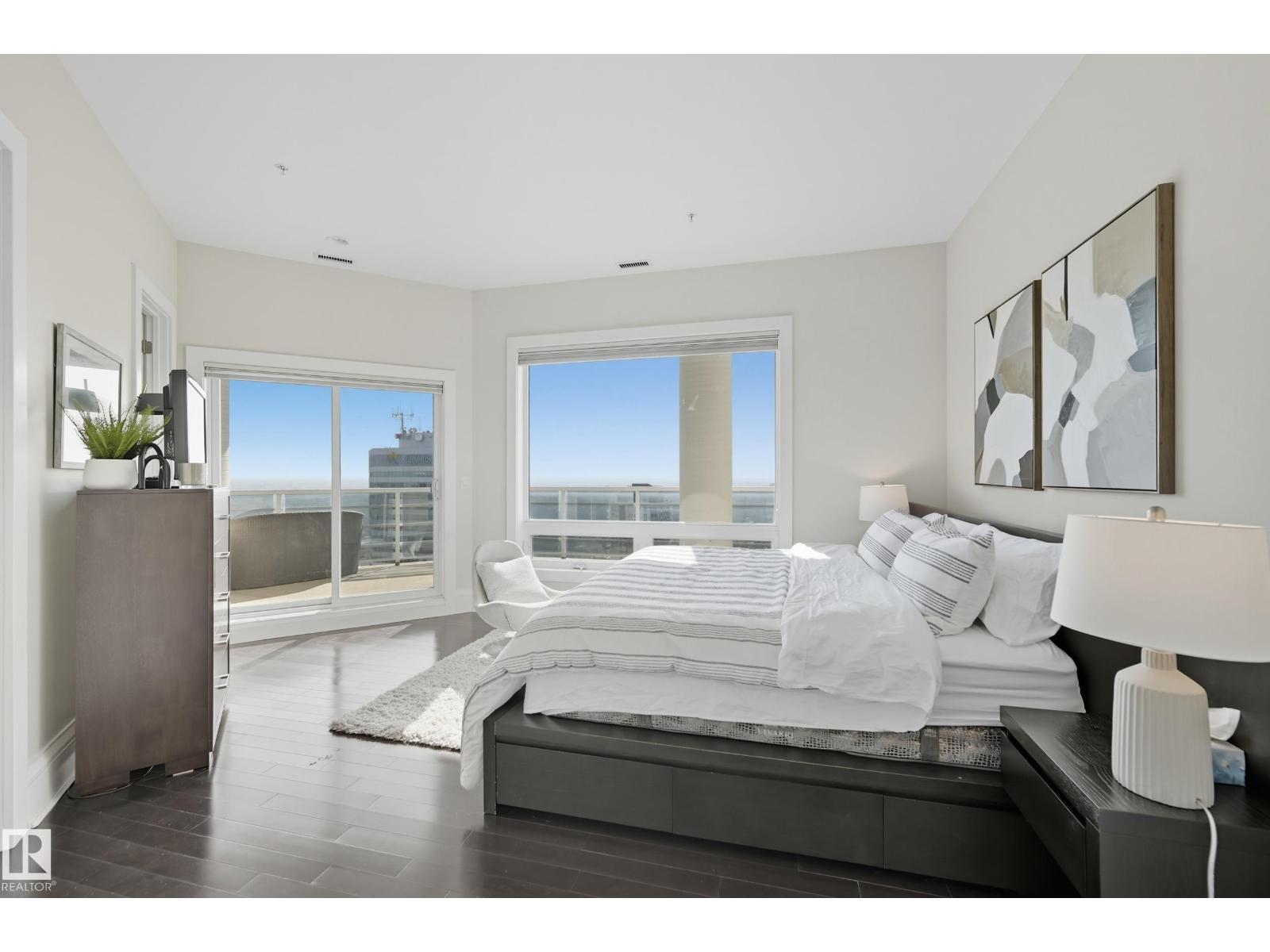 PENTHOUSE ALERT!! Experience luxury living in this Icon II PENTHOUSE in the heart of Downtown Edmonton. Soaring ceilings and wall-to-wall windows flood the space with natural light while showcasing epic city and Ice District views. The stunning kitchen features granite counters, hardwood floors, and an open flow into the spacious living and dining area. Two private primary suites, each with its own ensuite, create the ultimate retreat. Enjoy outdoor living with a wraparound balcony accessible from the bedroom plus a second balcony off the second suite. A sleek 2-piece bath adds convenience for guests. Perfectly located near Edmonton’s best dining, entertainment, and Rogers Place, you’re steps away from the vibrant core. With 2 titled underground stalls, a secure building, and unmatched skyline views, this penthouse is downtown living at its finest. (id:6769)