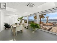 Welcome to your own lakeside sanctuary, where luxury meets tranquility in this one-of-a-kind retreat. Originally built as a 1979 Pan-Abode beach home, this property has been reimagined into a stunning modern oasis with every detail thoughtfully curated. From the edge-grain cedar finishes to the fully integrated smart home features, this home is designed to elevate your everyday living. The sleek, contemporary kitchen and spa-inspired bathrooms reflect a design that effortlessly brings the outdoors in. A standout feature is the expansive sunroom, flooded with natural light thanks to skylights and oversized windows, complete with hidden speakers and direct access to a BBQ and social patio area. Step outside and you’ll find over 90 unique seating areas, each offering a different perspective of the landscaping and lake. The outdoor fire table with LED lighting and Sonos sound creates an inviting ambiance, while a plunge pool and waterfall feature enhance the serene vibe. Wellness is front and centre here. A private 750 sf gym is fully equipped with its own bathroom and steam shower, and the lower-level features an infrared sauna and cold bath spa bringing the feel of a luxury resort right into your home. For those drawn to the lake, paddle out from your private beach or enjoy the new dock, complete with a 4 ton boat lift and Sea-Doo lift. This isn’t just a home, it’s a personal escape, a functional work of art, and a rare opportunity to own a slice of Okanagan paradise. (id:6769)