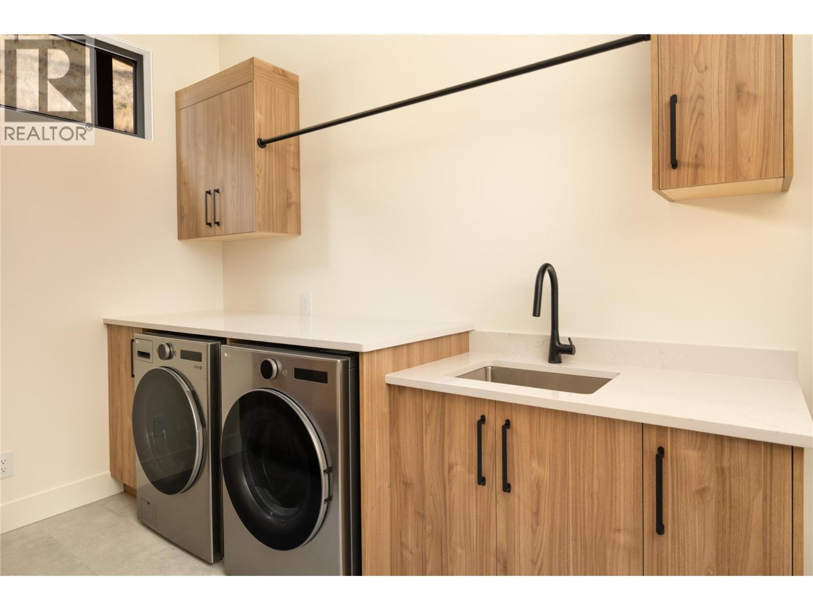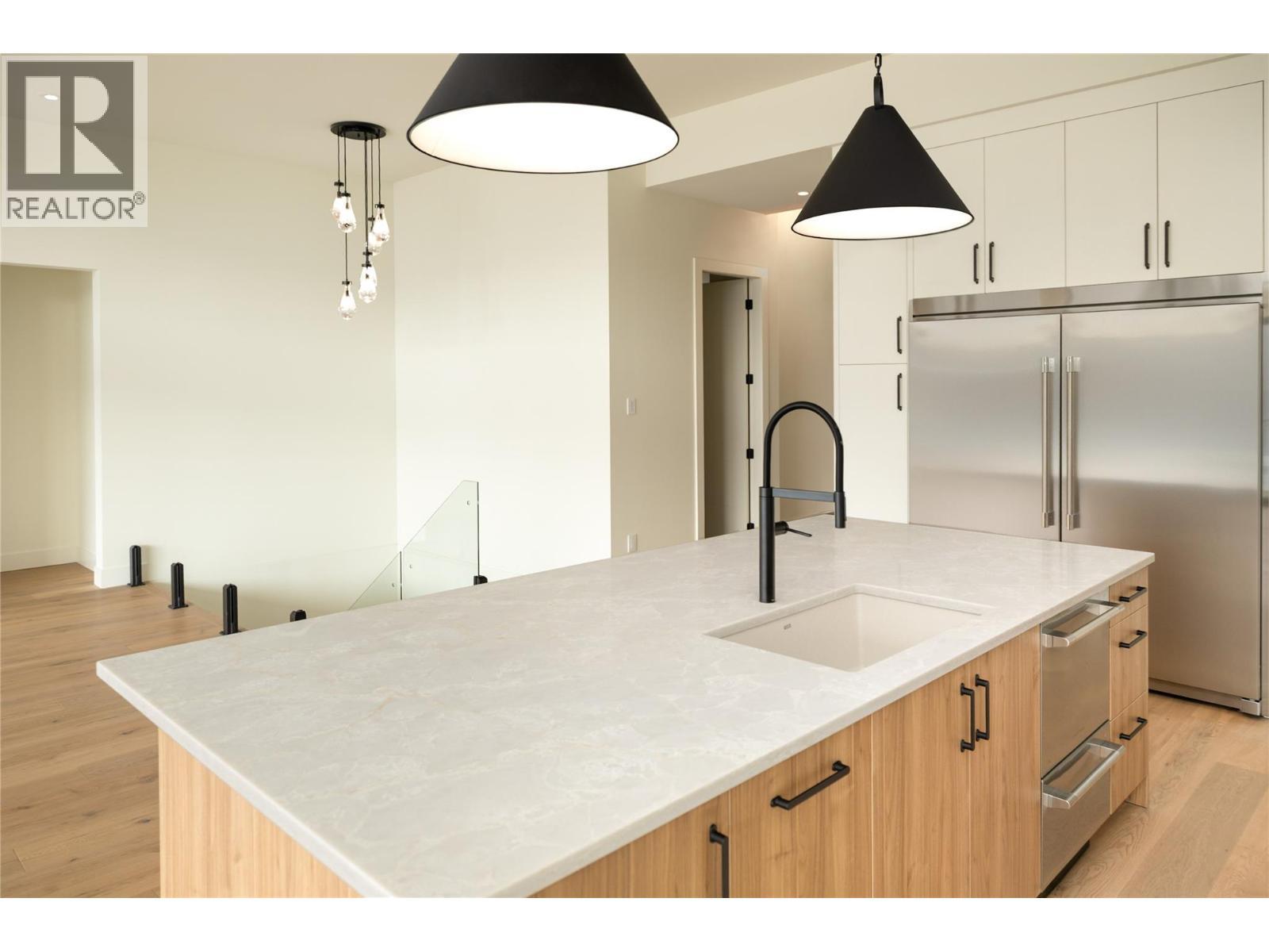 Stunning lake views from this newly completed home on the most private street in North Clifton Estates. This 4110 square foot luxury home features a salt water pool with an auto cover, yard space, a 2.5 car garage, plus driveway space for 2 cars. Enjoy the quiet location beside the mountain with endless hiking trails, and yet still be only an 8 minute drive to Kelowna's lively downtown core. Featuring 4 bedrooms, 3.5 bathrooms and an office, this home is open concept with an elegant and organic modern vibe. There are 2 4 panel multi slide doors in the upper and lower levels, creating a beautiful indoor/outdoor feel. Features include a climate controlled wine room, 2 fireplaces with custom finishes, a gorgeous lighting package, soaring ceilings and hardwood floors on the main level. Extra luxuries include built in speakers, a security system, epoxy floors in the garage and a 2 zoned heating and cooling system. The lower level rec room has tones of space, plus there is another open space for either a theater room, gym or playroom. Professional landscaping includes a fenced yard, with room for garden boxes or extra space for the dogs and kids, and low maintenance, irrigated plantings with syn lawn- which means no mowing:) (id:6769)