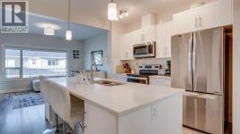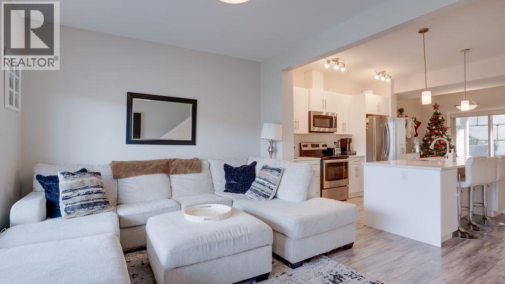 Immaculate 2 bed 2.5 bath END UNIT in The Terraces. This home features a bright open floor plan with gorgeous California Shutters.... The kitchen boasts tall ceilings, extra cabinets, stainless steel appliances and a large island with quartz countertops that easily fits four stools . The dining area opens up to your private backyard where you will find a large covered deck with plenty of room for entertaining, a ceiling fan to keep you cool and a lawn area that is great for kids and pets. With the open concept floor plan, the kitchen flows into the living room with 9' ceilings and a large picture window that fills the home with natural light. Easy access from the living room to the front deck where you can enjoy coffee with a view. Upstairs features two master suites, each with a full ensuite, custom walk in closets, beautiful pendant lighting and ceiling fans. Doing laundry will be a pleasure in the second floor laundry room with loads of storage, a folding counter and even room for an ironing board. Two car tandem garage is 32' long giving you space to park your car as well as store your paddle boards, E-bikes, golf clubs and everything you need to enjoy the Okanagan Lifestyle. Conveniently located near transit, and a short drive to restaurants, schools, coffee shops, shopping , golf, the beach and more. Call today to book a showing! (Pets aloud with restrictions). (id:6769)