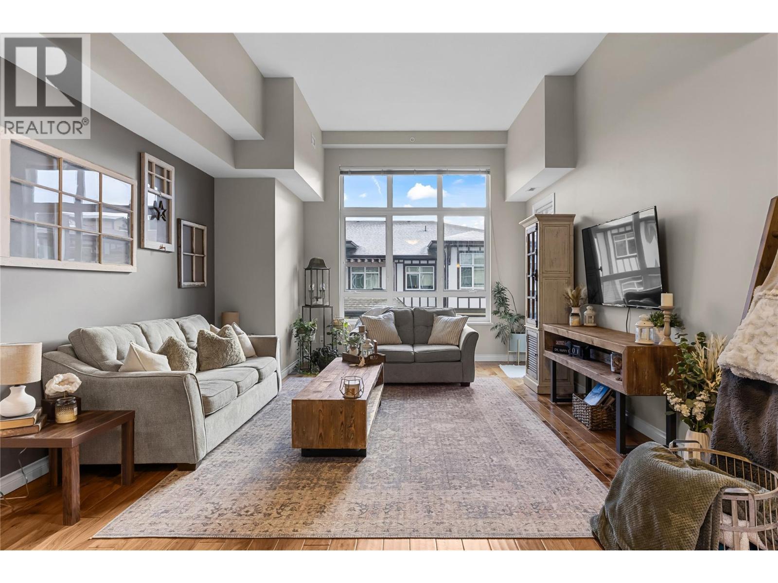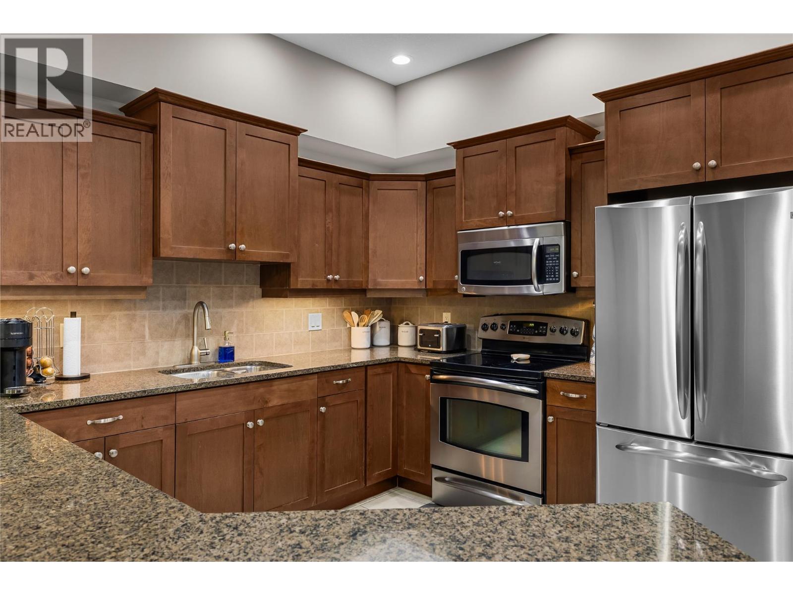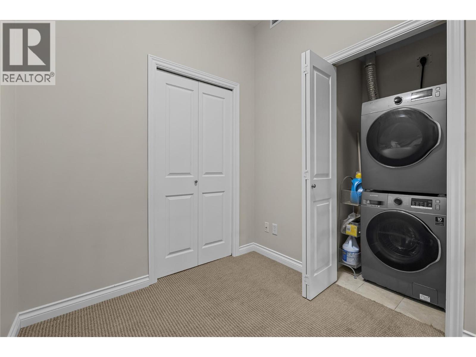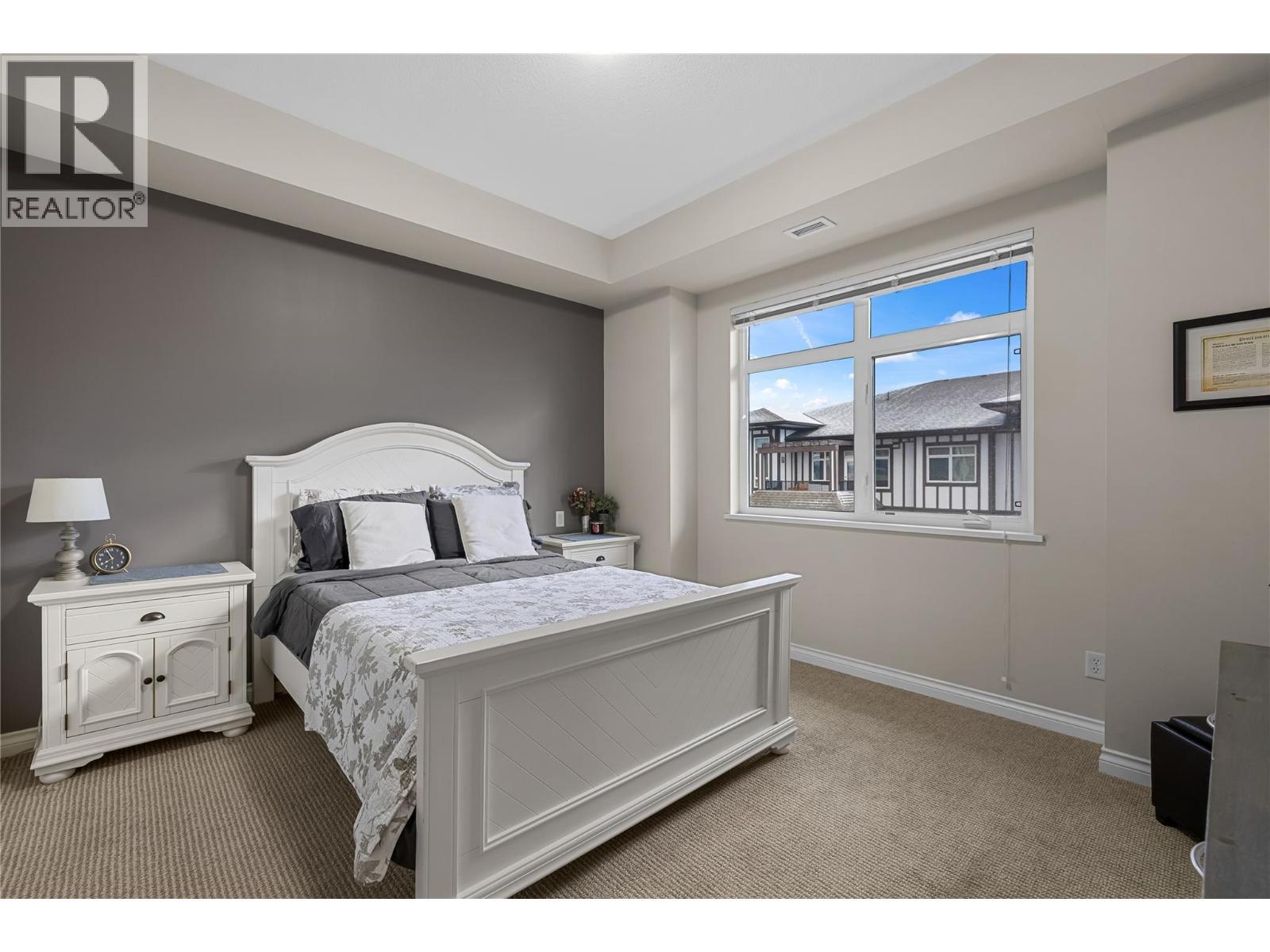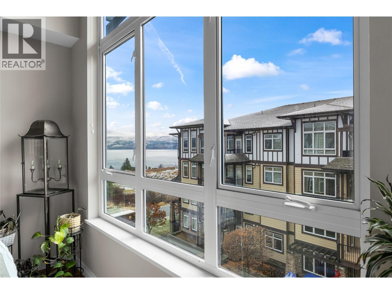 Welcome to this LAKE VIEW PENTHOUSE with 2 PARKING STALLS at Miravista, where comfort meets resort-style living in a desirable community. This home offers a spacious layout ideal for living and entertaining. The open-concept living and dining area is filled with natural light from vaulted ceilings and windows, creating a welcoming atmosphere. The kitchen features solid wood cabinetry, granite countertops with a sit-up bar, and flows seamlessly into the main living area. Enjoy summer BBQs and beautiful lake views from the SE-facing deck. The well-proportioned bedrooms include a spacious primary with room for a king bed, walk-in closet, and ensuite. An additional bedroom and den offer flexibility for guests or a home office. Fresh paint and a new stacking washer/dryer make this home move-in ready! Miravista enhances your lifestyle with amenities like an outdoor pool, hot tub, games room, and lounge. Features include 2 side-by-side secure underground parking stalls, a storage locker, and strata fees covering hot water, heat, and air conditioning. Ideally located close to Save-on-Foods, restaurants, wineries, transit, and amenities like the Johnson Bentley Memorial Aquatic Centre, City Hall, and trails. This well-managed community is an exceptional opportunity for homeowners and investors. Monthly rentals are allowed, with one pet (dog/cat up to 18"" at the shoulder). (id:6769)