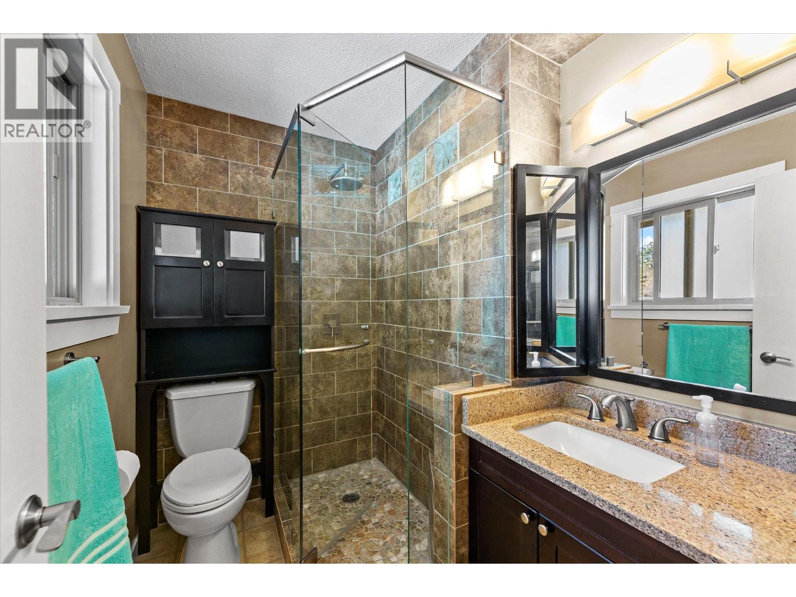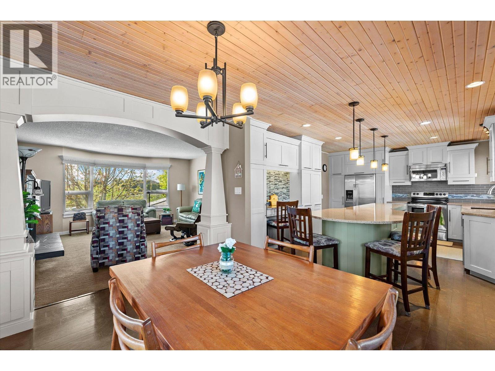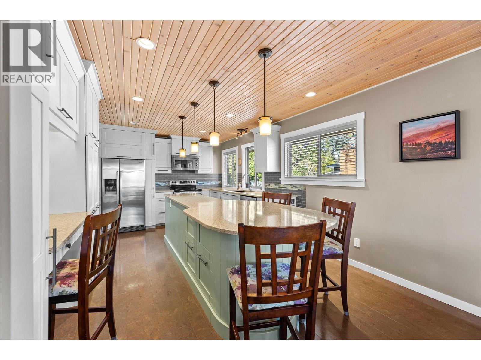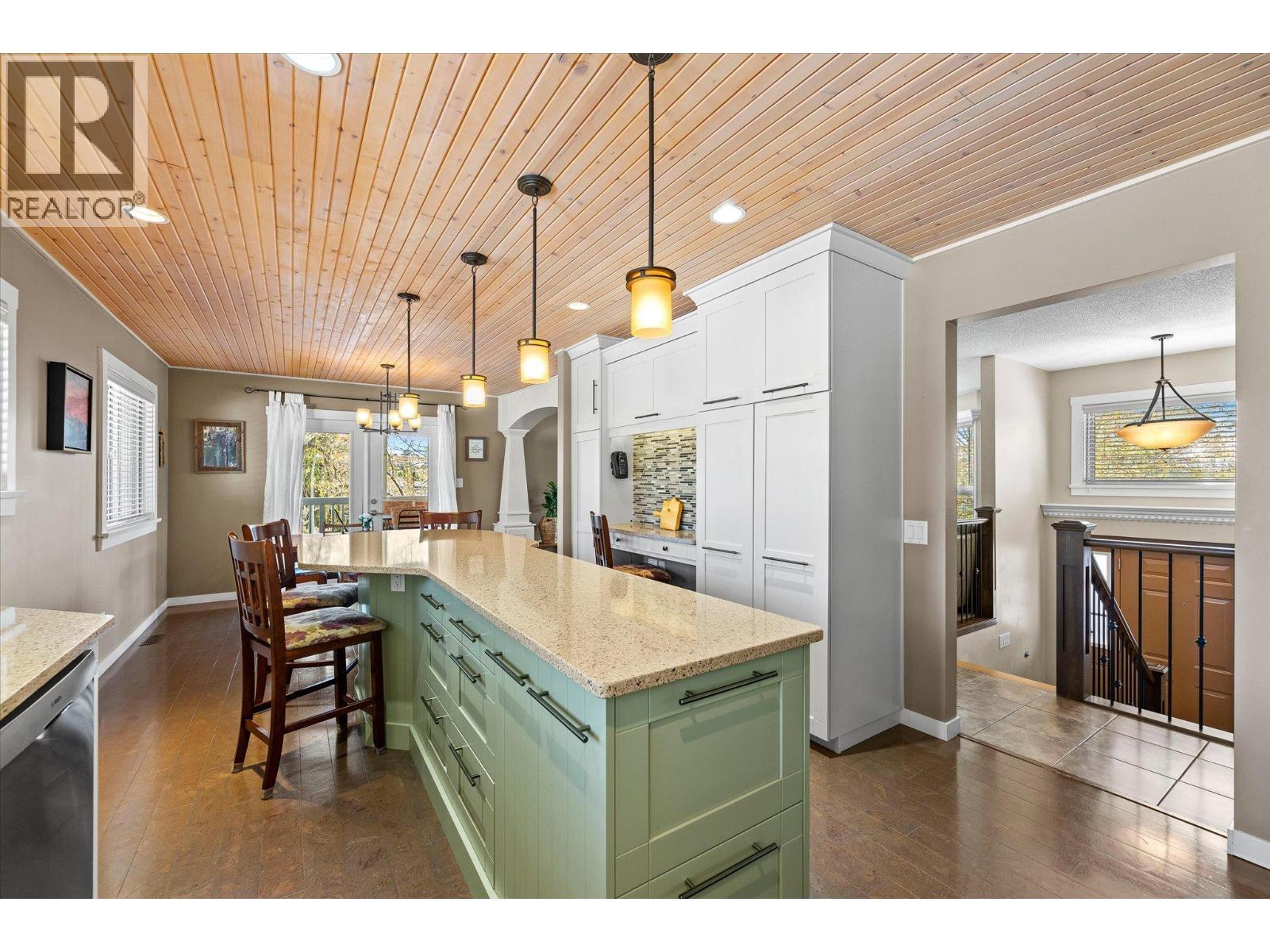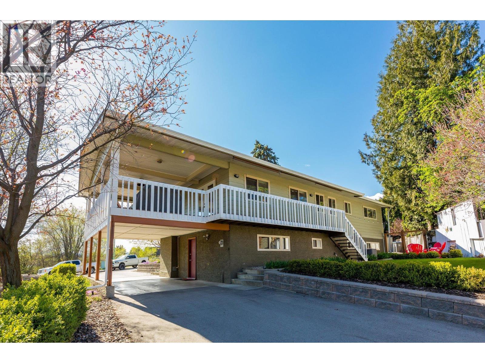 lenmore Family home loaded with value. Located with great access to schools, parks, Rail Trail, downtown access to the water front boardwalk and more. This 5 bedroom, 3 bath home includes a private 2 bedroom in-law suite/ summer kitchen complete with full kitchen, 3 piece bath and shared laundry. The main level has 3 spacious bedrooms, a 4 piece main bath and 3 piece en-suite with tile and glass shower. Entertain friends and family around the quartz counter top island in the remodeled kitchen with access to the Dining area, Living room with Gas Fireplace and double French doors to the covered patio. The lower level has a generous sized family room with wood burning fireplace, entry to the 2 bed suite, laundry room, and storage space. The low maintenance yard is completed with underground irrigation to flower and garden beds and your own private putting green to practice your ""short game"". There is also a great outdoor patio area which makes a perfect oasis space to read a book or entertain with friends. Lots of parking on the half moon driveway with a covered carport. This home has been maintained and cared for over the years. Glenmore listing at its best. (id:6769)