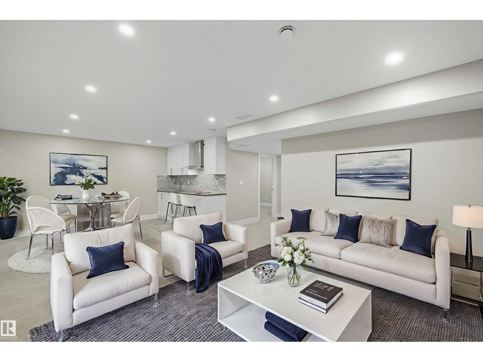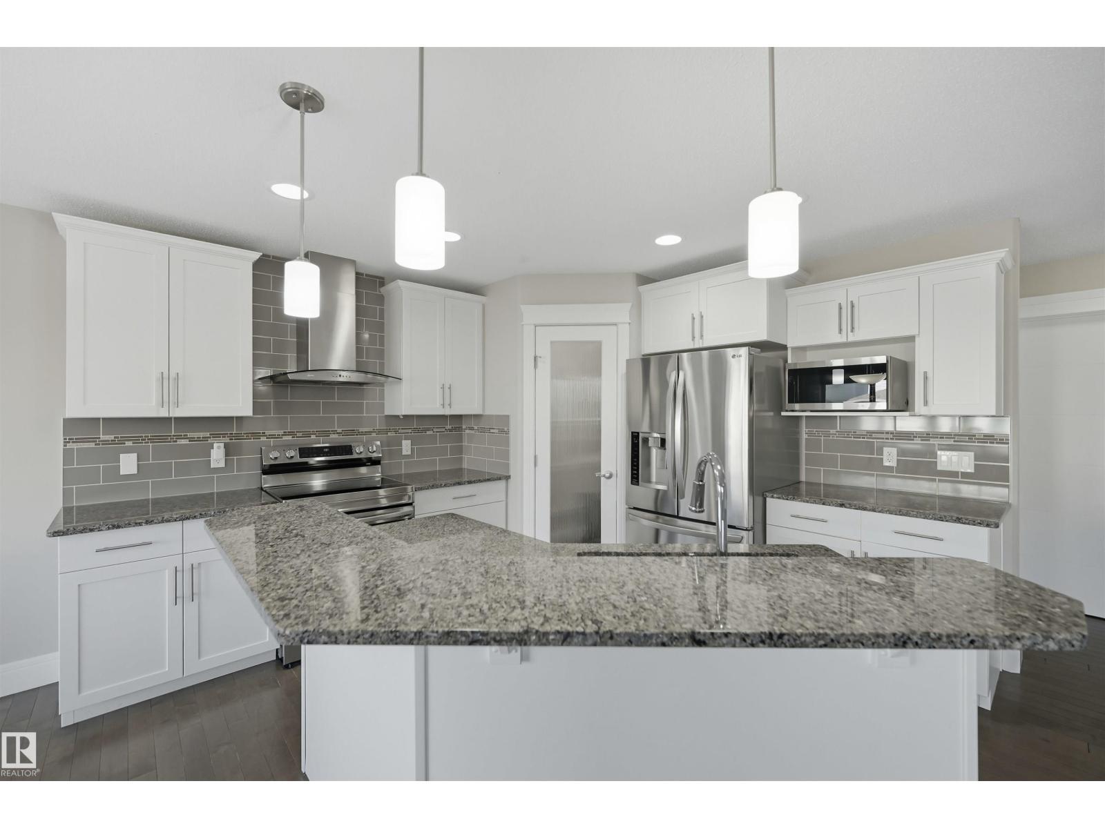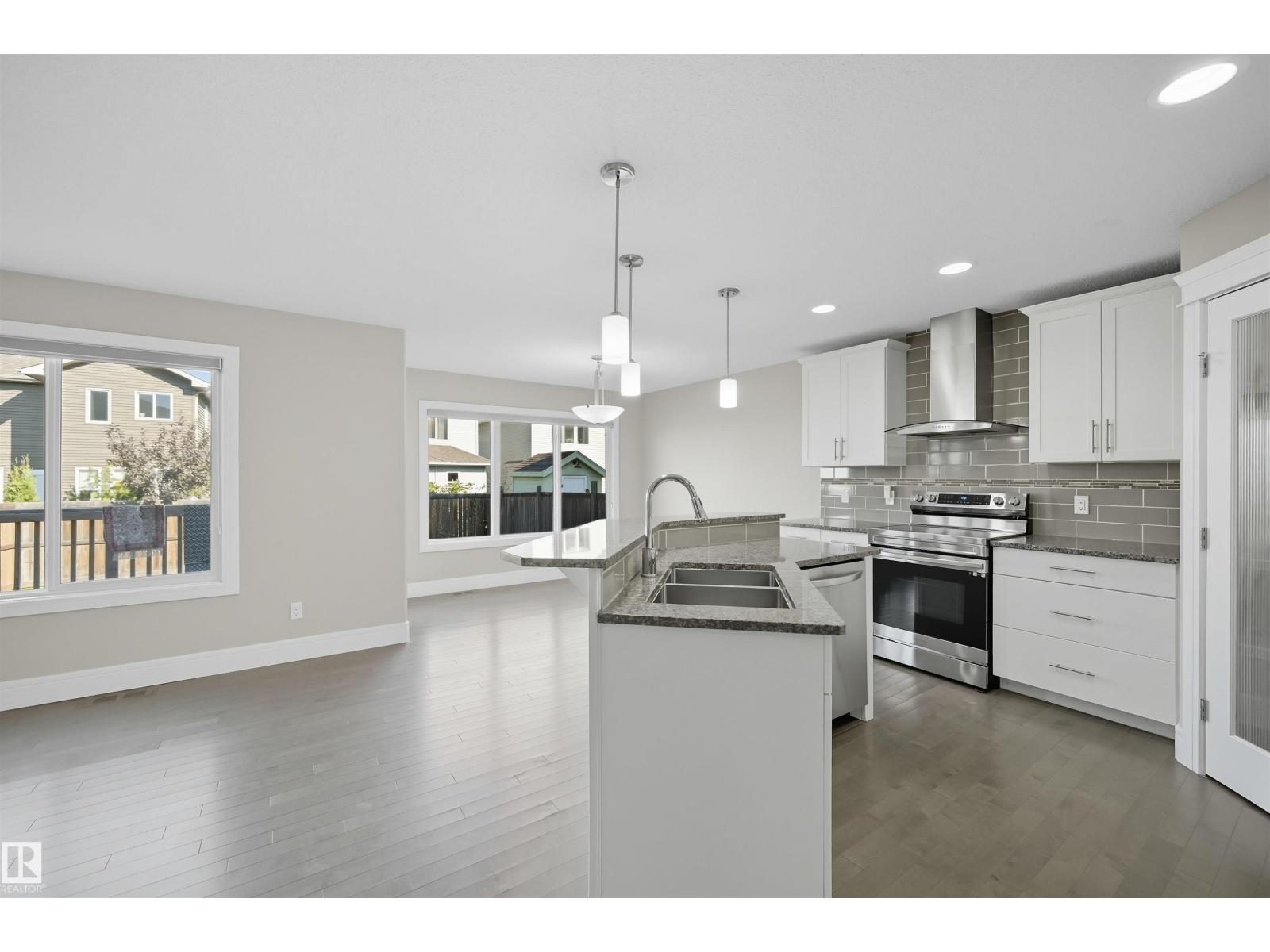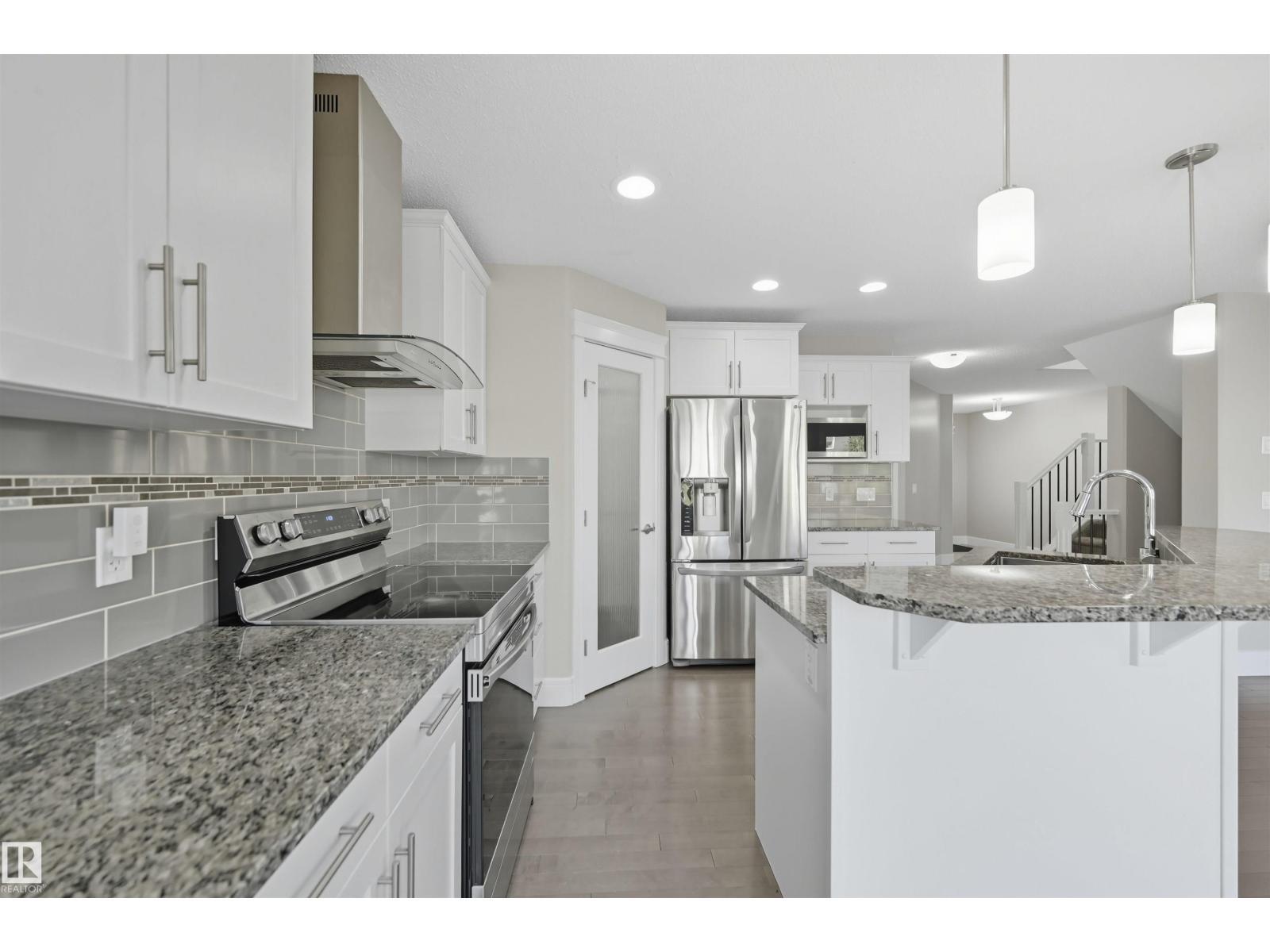 Thoughtfully designed with a flexible layout, ideal for single-family living or multi-generational lifestyles. Offering approx 2800sf of total living space on 3 levels. 3 living areas, 2 kitchens, 3 dining areas, 4 bedrooms & 4 bathrooms. Sunny South fronting, open layout features a cool toned neutral modern palette. Living room highlights a linear gas fireplace & views of private yard. Kitchen features white shaker profile cabinets, black granite, prep island & corner pantry. Spacious nook with direct access to deck. Upper level bonus room for family movie nights. Primary bedroom will house a king sized set & is complete with dual walk-in closets & 4pc ensuite. 2 additional bedrooms & 4pc bathroom for a growing family. Lower level offers an oversize recreation room which will accommodate most furniture arrangements. 2nd kitchen & 2nd dining area for inlaws, entertaining or extended guest stays. 4th bedroom & full bathroom complete this level. Steps to multiple parks/ponds & within catchment of 4 schools. (id:6769)