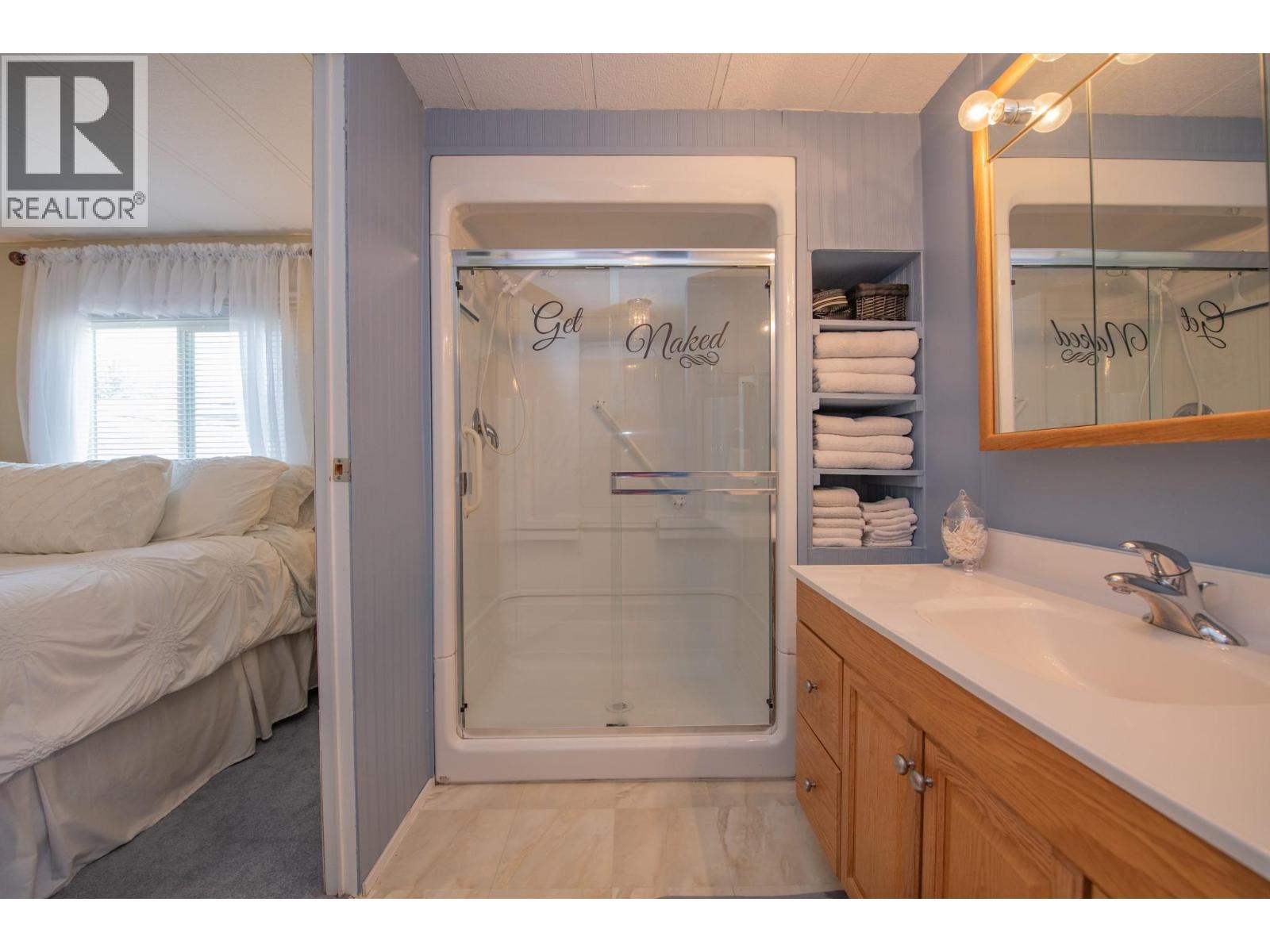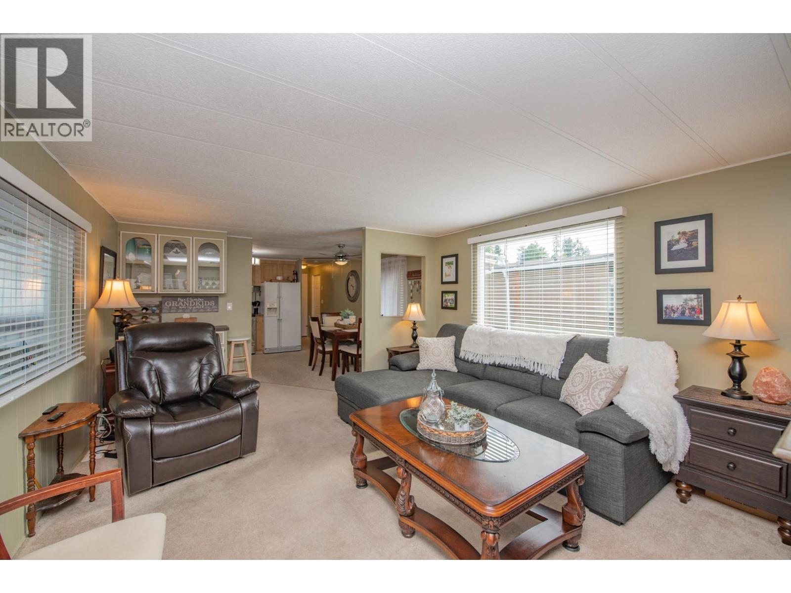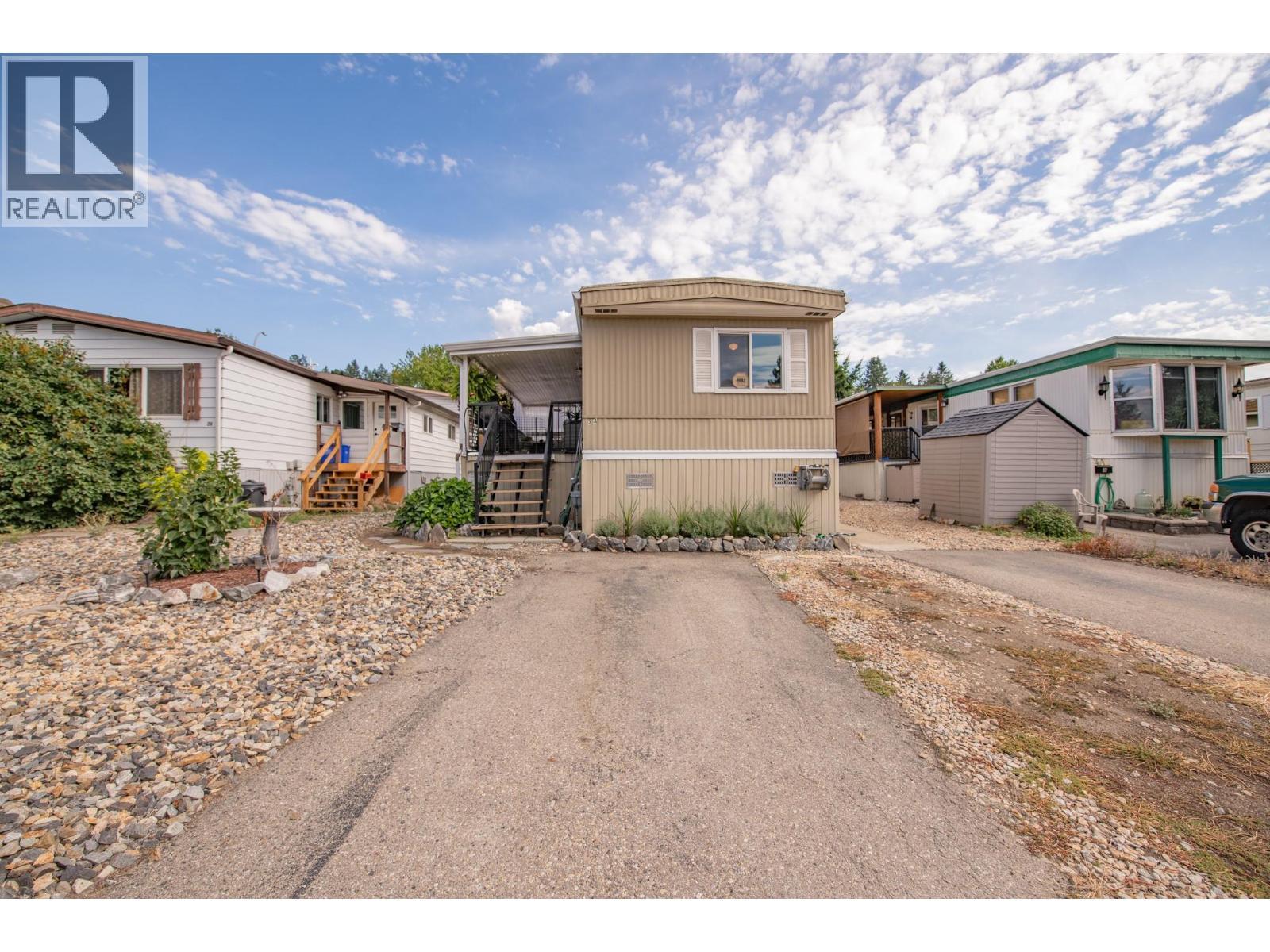 Location, lifestyle, and pride of ownership come together in this beautifully maintained 2 bedroom, 2 full bathroom home in Lakeway Mobile Home Park’s desirable 55+ section. Enjoy the convenience of a smart floor plan with a bedroom and full bath at each end of the home, creating privacy and flexibility. The bright, spacious living room opens into the kitchen, offering an abundance of cabinetry and counter space for everyday living. The main bathroom has been updated, while important upgrades include a furnace (2014) and hot water tank (2016). Air conditioning ensures year round comfort. Enjoy outdoor living on the impressive 24’ x 8’ covered sundeck, ideal for entertaining or unwinding after a day at the lake. The addition offers a large mudroom and workshop area, providing extra functional living space. The insulated 8’ x 10’ storage shed includes power, outlets, and a workbench, ideal for hobbies or extra storage. A raised garden bed adds charm and functionality. Just a short walk to Kalamalka Beach, the Rail Trail, coffee shops, restaurants, and golf courses. Parking for two vehicles. Pets allowed with park approval (height restriction). A fantastic opportunity to enjoy Kal Lake living in a peaceful, well managed community. (id:6769)