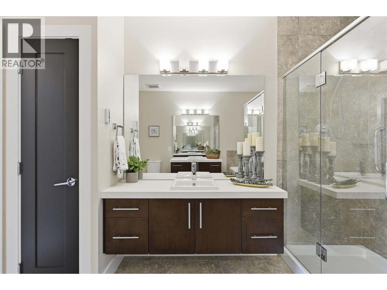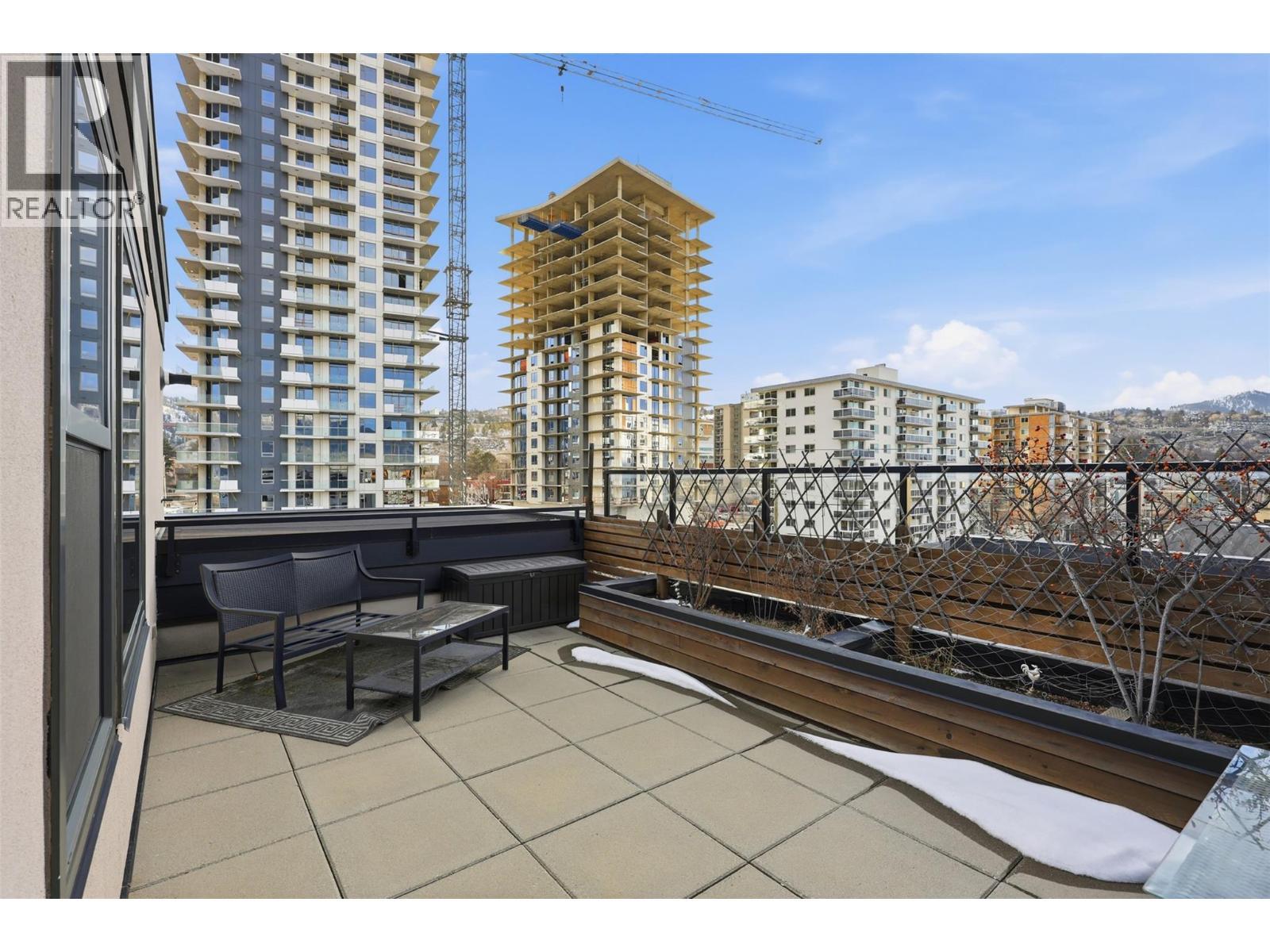 Experience elevated downtown living in this rarely available penthouse suite offering over 1,343 sqft of prime indoor living space in one of Kamloops’ most sought-after buildings, The Mosaic - where opportunities like this seldom come to market. This exceptional 2-bedroom plus den residence is thoughtfully designed with custom-built closets throughout, and a den featuring a built-in desk and shelving, ideal for a refined home office and has additional walk-in storage complete with custom built-in shelving. Both bathrooms are enhanced with heated floors, adding everyday comfort and a spa-like touch. Expansive windows showcase stunning city views, flooding the space with natural light and enhancing the open, sophisticated feel. Step outside to your private rooftop patio, a true extension of your living space, complete with a gas fireplace and garden boxes, perfect for entertaining, relaxing, or enjoying peaceful evenings above the city. Adding to the appeal are two dedicated underground parking stalls, a secure storage locker, and access to a convenient on-site dog wash station. Located in the heart of downtown, you’re just steps from shopping, dining, and the hospital, offering unmatched convenience and walkability. Penthouse suites in this building are rarely offered, so act quickly to secure this exceptional urban lifestyle. All measurements approx.; verify if important. (id:6769)