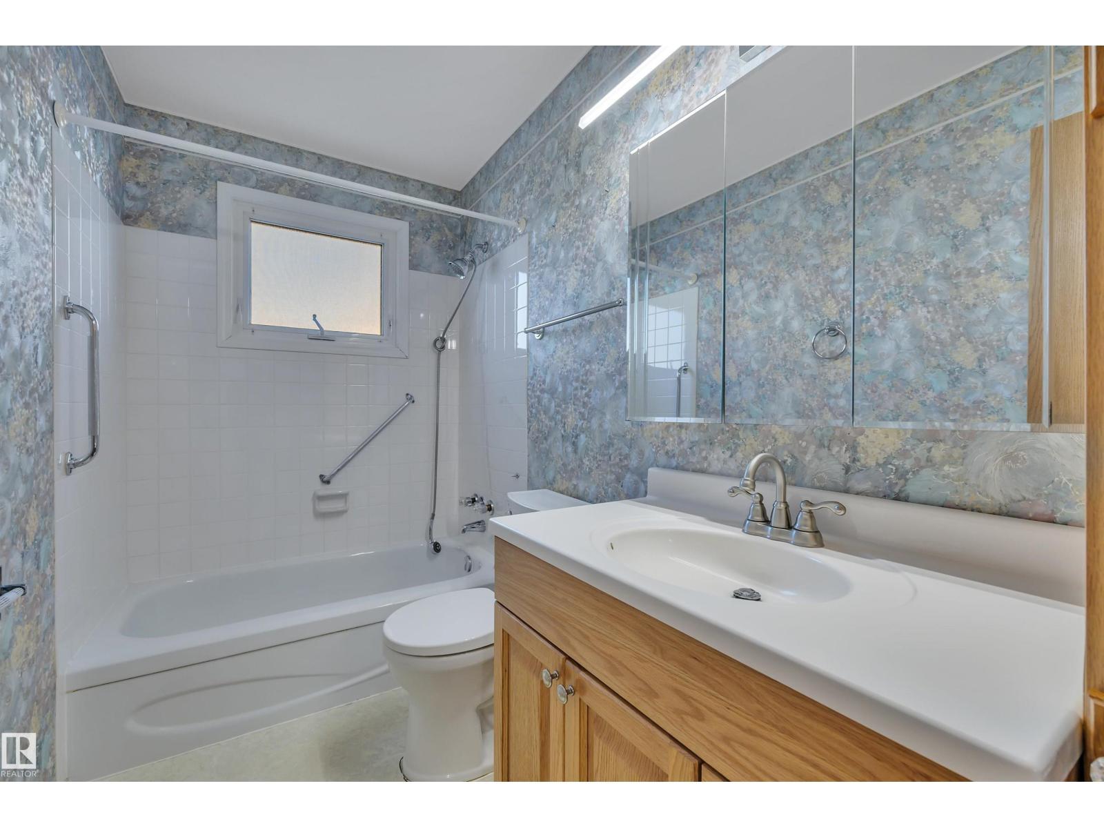 BIG BEAUTIFUL BUNGALOW. All you need to do is invest in cosmetic upgrades. ORIGINAL OWNER. This former 1400+ showhome boasts a HIGH EFFICIENT FURNACE (2022), HOT WATER TANK (2019 ), NEWER TRIPLE PANE WINDOWS within the last five years. THREE BEDROOMS UP with a potential for three more in the basement IF you add egress windows. THREE FULL BATHS including a 3-piece ensuite. Nearly 2700 SQUARE FEET OF TOTAL LIVING SPACE! SINGLE ATTACHED GARAGE with driveways on both sides of the house. Potential for a mother-in-law suite in the basement. The shingles are newer (no date available but likely within the last ten years). LOT SIZE IS 64' X 110' and the backyard is supersized. THE KITCHEN WAS RENOVATED IN THE MID 1990s. The house is literally just around the corner from EVERY kind of shopping/grocery outlets and restaurants. A lovely family community. ADDED BONUS: A VERY SHORT DRIVE TO THE ANTHONY HENDAY freeway. EASY ACCESS to Edmonton. (id:6769)