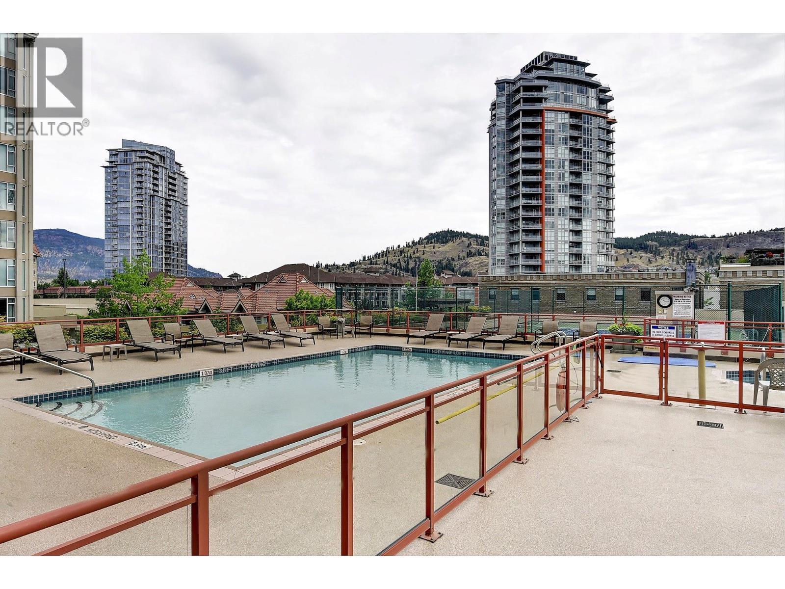 The Dolphins, is where lakeside luxury meets downtown living. This beautifully appointed 2-bedroom, 2-bath residence offers sweeping views of Downtown Kelowna, Okanagan Lake, the lagoon, and the iconic dolphin fountain—providing a tranquil soundtrack you can enjoy. Inside, the bright and modern renovated kitchen is a true showpiece, featuring an expansive seamless 12 ft quartz counter top with plenty of prep space, premium appliances, and a design that’s perfect for both entertaining and everyday living. The open-concept layout flows effortlessly through the dining and living areas and out to a private patio, where you can take in spectacular sunsets, lake views, and Kelowna’s vibrant waterfront scene—including festivals, concerts, and fireworks. The spacious primary bedroom is a serene retreat with patio doors to the balcony, stunning views, and a renovated ensuite boasting a large walk-in shower. The second bedroom and main bathroom, also updated are positioned on the opposite side of the condo, offering privacy for guests or family. Upgrades include new paint, blinds, lighting, quartz countertops, appliances, wiring, plumbing, and more Enjoy exceptional convenience with amenities located on the same level, including a fitness centre, meeting room, outdoor pool, hot tub, and relaxing patio spaces. This condo represents outstanding value, with possible boat moorage and an unbeatable location—just steps to restaurants, breweries, a winery, shopping, and the beach. (id:6769)