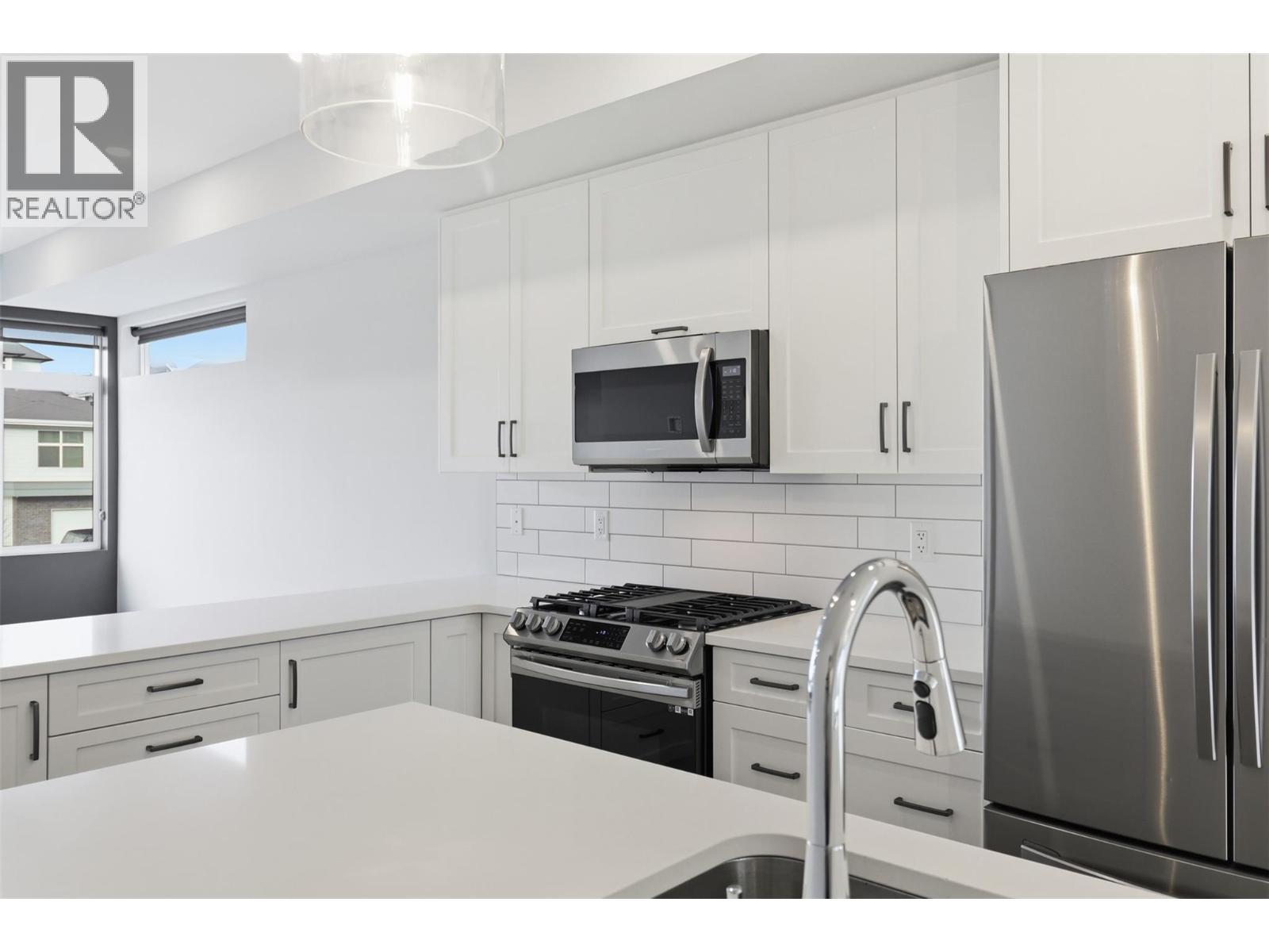 This stunning Townhome is an end-unit with all the developer upgrades and is in immaculate like-new condition. Boasting 3 bedrooms + den/office, 4 bathrooms and is located at The Ridge in Juniper West - one of the best neighborhoods in Kamloops. Built in 2022, offering 9' ceilings throughout the entire 1,824 sq ft of fully finished living space + 140 sq ft of covered patio space and featuring the perfect blend of modern luxury and low-maintenance! The lower level consists of a large foyer, a 2pc bathroom, a bedroom, and a mudroom with access to the oversized garage (16'x21'x 9'). The main level features a bright and open-concept design with a 2pc powder room, a large living room, a spacious kitchen with quartz countertops and gas range, and a dining area with access directly to the covered patio. The upper level boasts 2 full bathrooms and 2 bedrooms + an office/den which could be used as a nursery or smaller bedroom. The primary bedroom is complete with a spa-like 5pc ensuite and a large walk-in closet. Other features include quartz countertops throughout the entire home, heated bathroom floor, heated garage, EV charger, Central A/C, gas BBQ line, custom window coverings, and more! Low strata fee of $276 includes water, sewer, garbage, recycle, insurance, and management. The location is exceptional being within walking distance to nearby parks, walking/hiking/biking trails, a convenience store, a 9 min drive to downtown Kamloops & 14 min to TRU! Quick possession possible! (id:6769)