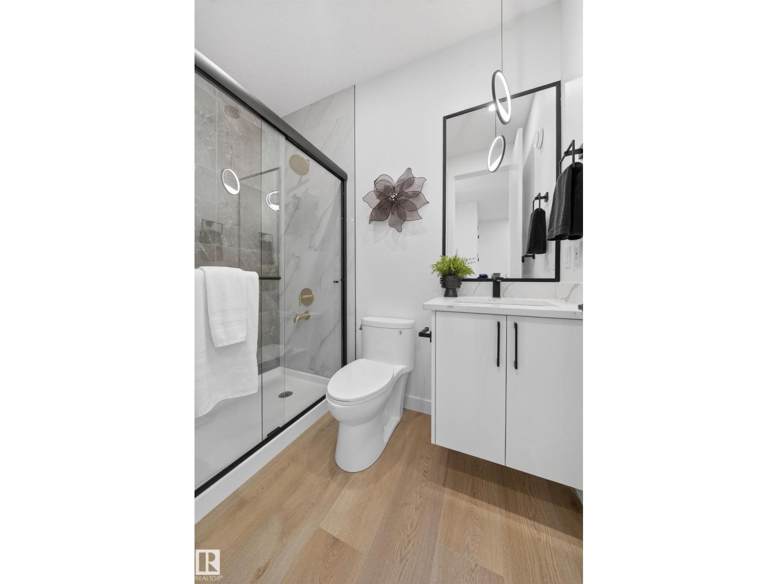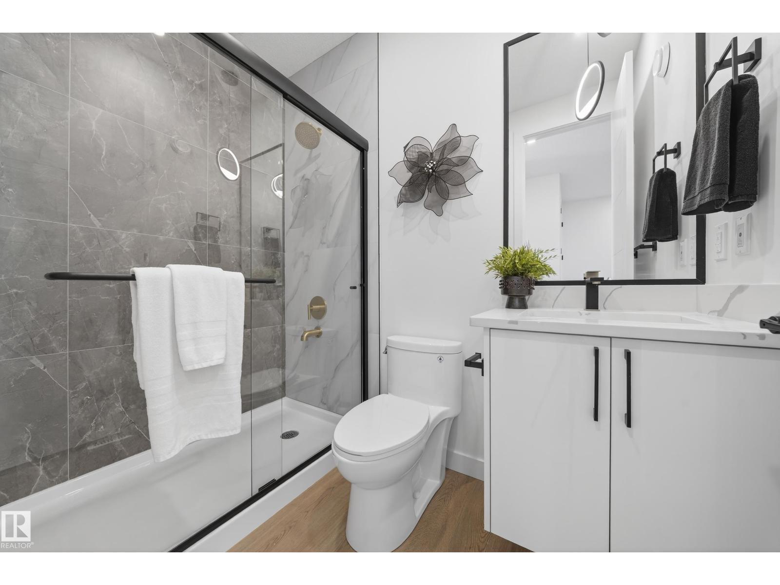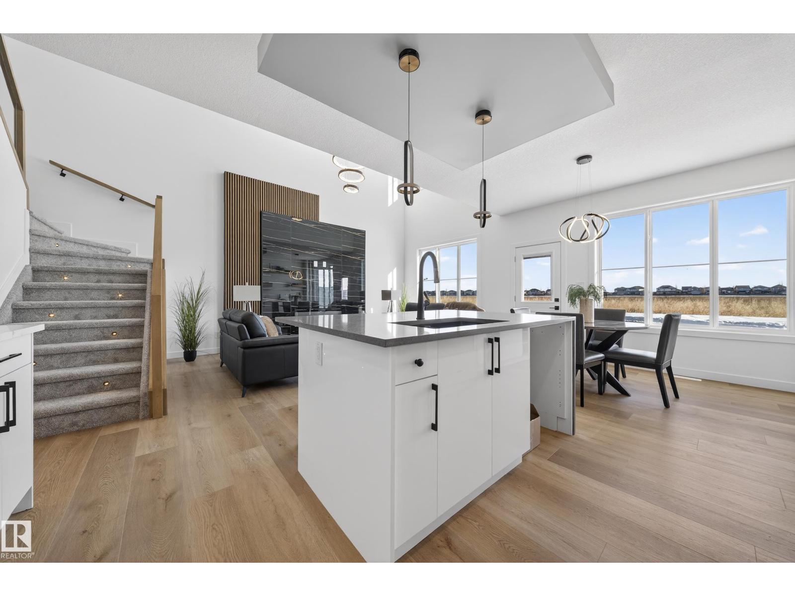 MOVE IN READY!! Welcome to this Brand New Single Family home located in the growing community of Crystal Creek, Leduc. This beautifully upgraded home offers 4 bedrooms and 3 full bathrooms, including a convenient MAIN FLOOR BEDROOM & BATH, perfect for guests or extended family. The main level features an impressive extended kitchen with 3 cm quartz countertops, ample MDF shelving & a full SPICE KITCHEN for added convenience. Enjoy the bright and open OPEN-TO-ABOVE living room, upgraded lighting package, spacious mudroom, and modern glass railing. Upstairs offers a comfortable bonus room, two additional bedrooms, a spacious primary suite, and upper-level laundry. Additional features include a SEPARATE SIDE ENTRANCE to the unfinished basement, 200 AMP service, EV rough-ins, MDF shelving throughout, a DOUBLE ATTACHED GARAGE, and close proximity to shopping, parks, and major amenities. (id:6769)