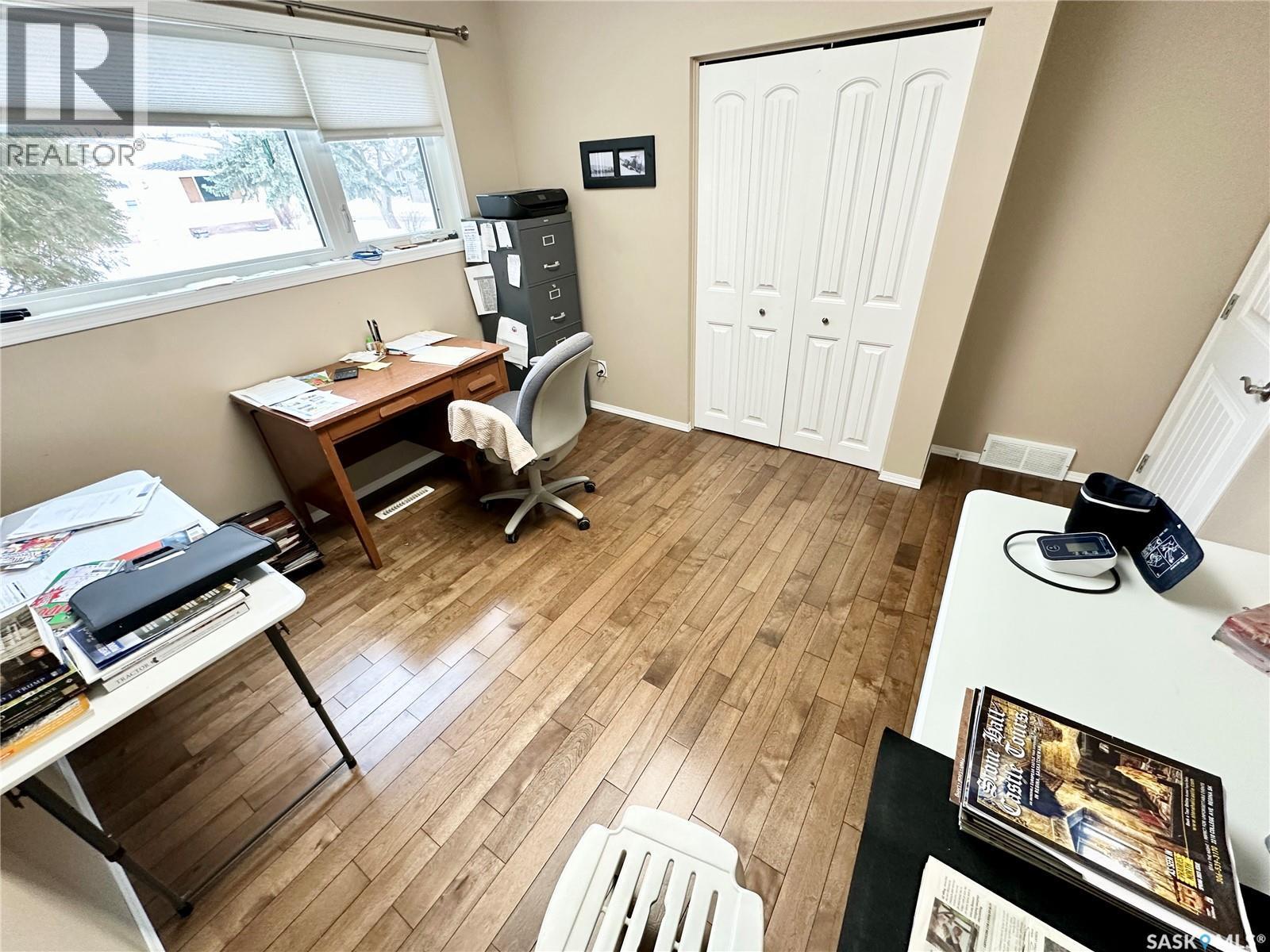 Welcome to 3 Scott Crescent, a beautifully maintained mid-century modern bungalow located on a quiet crescent in one of Weyburn's most desirable neighbourhoods, surrounded by mature trees and close to the high school, track and walking trails. The main floor features a bright and inviting living room highlighted by vaulted ceilings and a gas fireplace, creating a warm and stylish gathering space. Interior updates include hardwood flooring and a functional kitchen complete with stainless steel appliances. Convenient main-floor closet laundry adds to the home’s practicality. This home offers four bedrooms total, with two on the main floor and two in the fully developed basement. The primary bedroom includes a 3-piece ensuite with a glass shower as well as a walk-in closet. Additional highlights include PVC windows, a durable metal roof, and a high-efficiency furnace for long-term comfort and peace of mind. A mudroom accessible from the kitchen provides access to the 12' x 24' attached garage, while the backyard includes a 24' x 24' fully finished detached garage which is ideal for vehicles, hobbies, or additional storage. There is also an RV parking space on the west side of the detached garage for extra parking. Enjoy outdoor living on the large rear deck, perfect for relaxing or entertaining. Move-in ready and thoughtfully updated, this property offers the perfect blend of character, comfort, and functionality in a sought-after location. Call to book a showing today. (id:6769)
