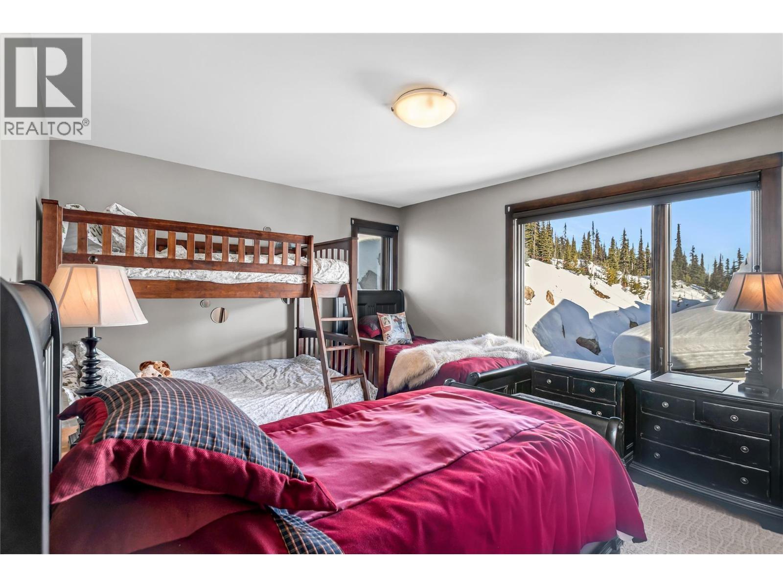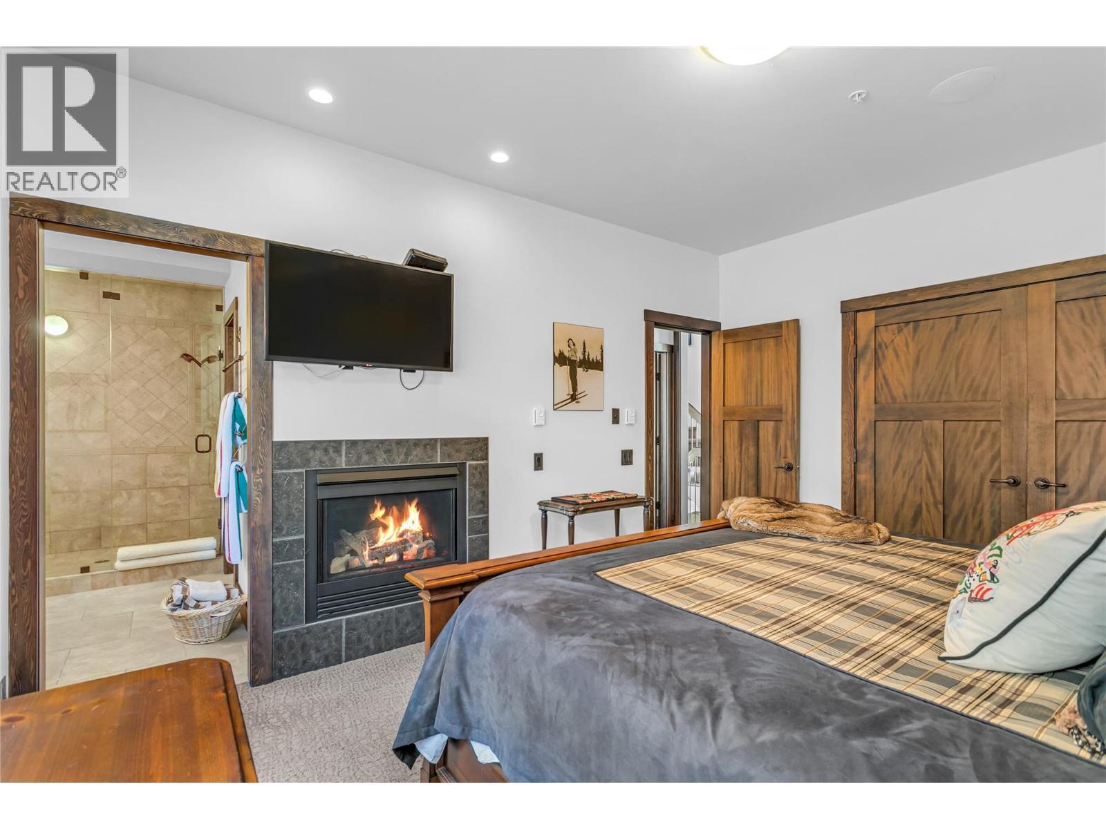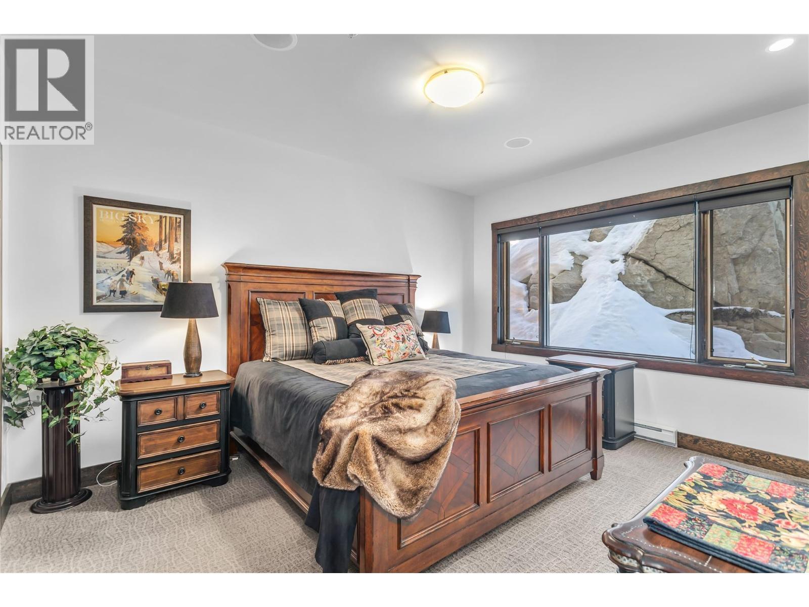 Located in Grizzly Ridge at Big White Ski Resort, this true classic ski chalet delivers timeless alpine character paired with thoughtful, high-end upgrades throughout. Originally built as the show home, the residence showcases superior craftsmanship, refined design, and premium finishes rarely found on the mountain. The home has never been rented with 1 owner and presents in exceptional condition. The main living level features two large bedrooms, each with its own ensuite and one with a gas fireplace for cozy nights, while the upper level offers two additional spacious bedrooms complemented by a full bathroom. In total, the home includes 3.5 bathrooms, all with heated floors and a large steam shower in the main primary, providing comfort and functionality for families and guests. The former garage has been converted into a family room and ski/mud room with in floor radiant heat, adding approximately 375 sq ft of valuable living space (not included in finished measurements and easily converted back to a garage if desired). The main living area is anchored by vaulted ceilings, a chef’s kitchen and a WETT-certified wood-burning fireplace, creating an inviting chalet atmosphere. Additional highlights include views of the Monashee Mountain range through the floor to ceiling windows, a wine cellar, a loft, and a generous private patio with hot tub. Low strata fees complete this standout Grizzly Ridge offering. Furnishings are negotiable. (id:6769)