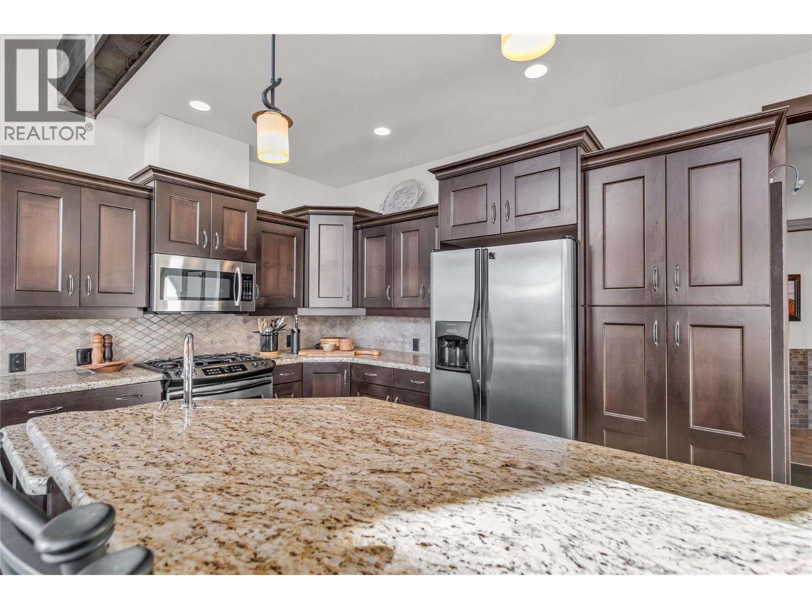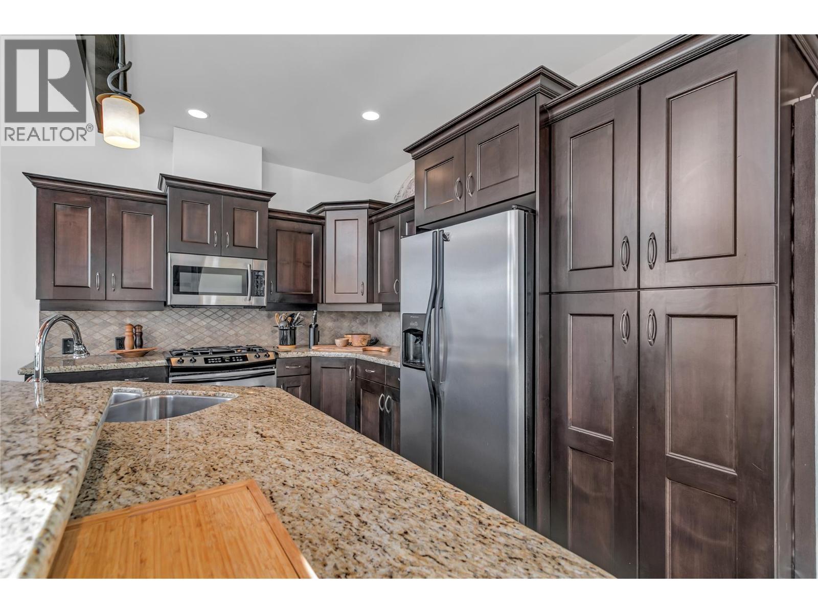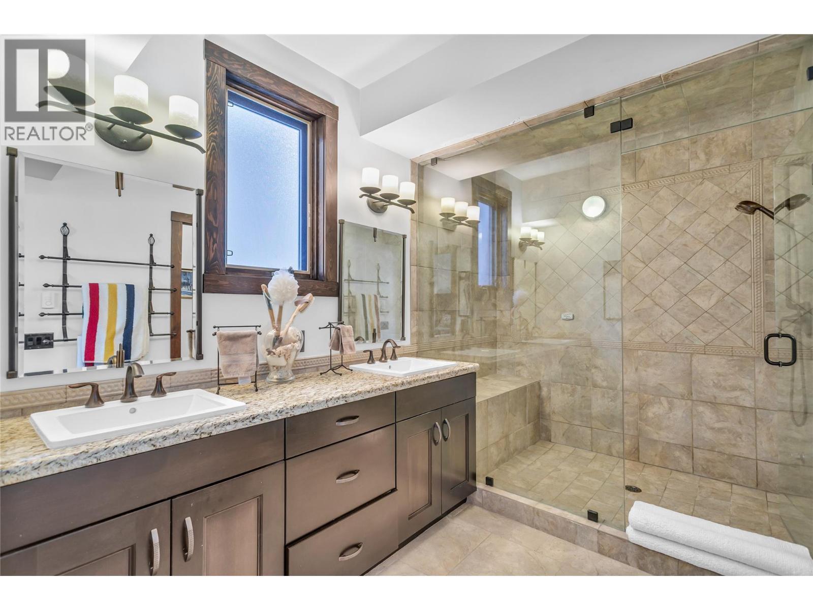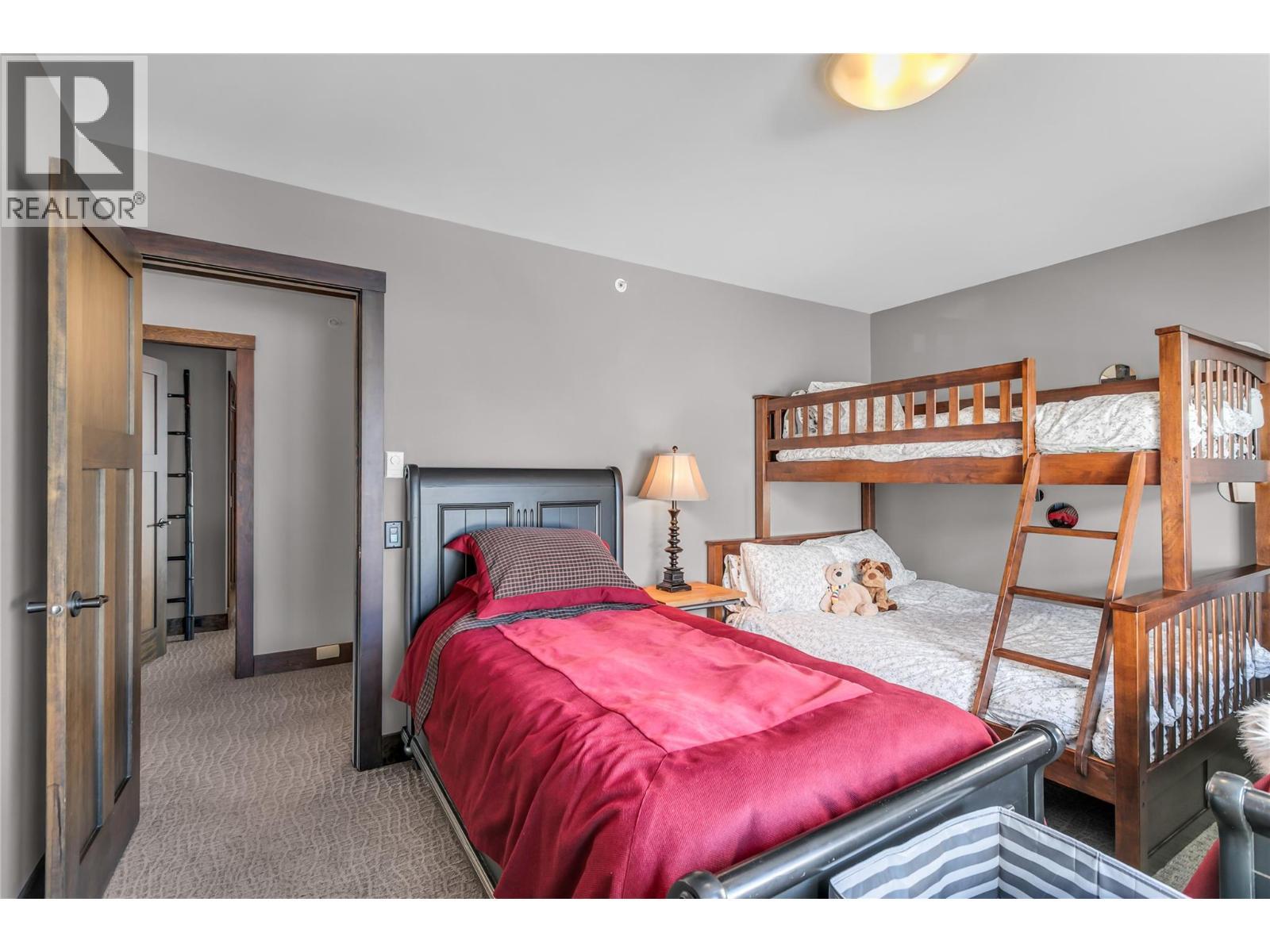 Located in Grizzly Ridge at Big White Ski Resort, this true classic ski chalet delivers timeless alpine character paired with thoughtful, high-end upgrades throughout. Originally built as the show home, the residence showcases superior craftsmanship, refined design, and premium finishes rarely found on the mountain. The home has never been rented with 1 owner and presents in exceptional condition. The main living level features two large bedrooms, each with its own ensuite and one with a gas fireplace for cozy nights, while the upper level offers two additional spacious bedrooms complemented by a full bathroom. In total, the home includes 3.5 bathrooms, all with heated floors and a large steam shower in the main primary, providing comfort and functionality for families and guests. The former garage has been converted into a family room and ski/mud room with in floor radiant heat, adding approximately 375 sq ft of valuable living space (not included in finished measurements and easily converted back to a garage if desired). The main living area is anchored by vaulted ceilings, a chef’s kitchen and a WETT-certified wood-burning fireplace, creating an inviting chalet atmosphere. Additional highlights include views of the Monashee Mountain range through the floor to ceiling windows, a wine cellar, a loft, and a generous private patio with hot tub. Low strata fees complete this standout Grizzly Ridge offering. Furnishings are negotiable. (id:6769)
