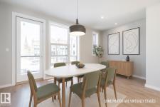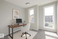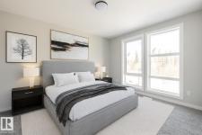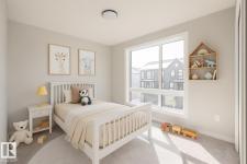 Experience maintenance-free living in the desirable Southwest community of Rutherford. This spacious 3-storey townhouse offers over 1500 sq ft of bright, modern living with floor-to-ceiling windows and stylish vinyl plank flooring. The open-concept main floor features a sleek white kitchen with quartz counters, a pantry, and plenty of space to entertain. Enjoy the comfort of “yours and mine” ensuite sinks, upper-level laundry, A/C, LED lighting, and abundant storage. The large primary bedroom is filled with natural light, complemented by two additional generously sized rooms—ideal for kids, guests, or a home office. With a single attached garage, tandem driveway parking, and close proximity to schools, parks, and everyday amenities, this home blends contemporary ease with community convenience. SOME PHOTOS ARE VIRTUALLY STAGED. (id:6769)