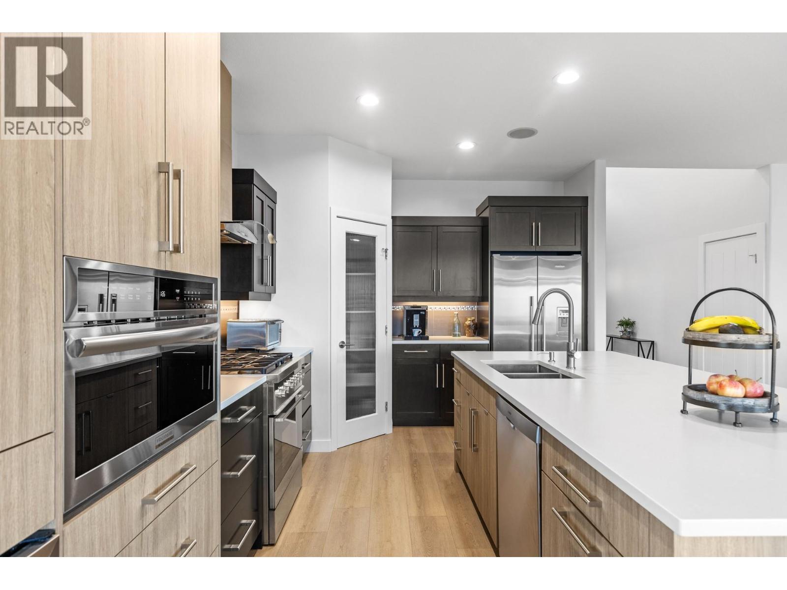 Welcome to a truly rare offering in Wycliffe — a stand-alone, detached home perched high on Dilworth Mountain, offering exceptional privacy, quiet surroundings, and sweeping city and lake views. Ideally located at the end of the complex, this home enjoys a more single-family feel while still offering the convenience of low-maintenance strata living. Since the last sale, the current owners have completed a comprehensive renovation, resulting in a home that feels almost new from top to bottom and is completely move-in ready. The beautifully updated kitchen features matte-finish honed Silestone countertops, a Fisher & Paykel 5-burner gas range, Fisher & Paykel fridge, Bosch dishwasher, a wine fridge also, a new built-in microwave — perfectly suited for both everyday living and entertaining. Major mechanical upgrades have also been completed, including a new furnace, heat pump, and hot water tank, offering peace of mind and modern efficiency for years to come. With 4 bedrooms and 3 bathrooms, generous living spaces, multiple outdoor areas, and a double car garage, this home offers both functionality and comfort in an exceptional setting. Located just minutes to downtown Kelowna, golf, trails, beaches, and amenities, it provides a rare combination of privacy, quality, and lifestyle. Monthly strata $503.42 includes garbage, sewer, water, gardening and snow removal included. This is a unique opportunity to own one of the most desirable homes within the Wycliffe community. (id:6769)