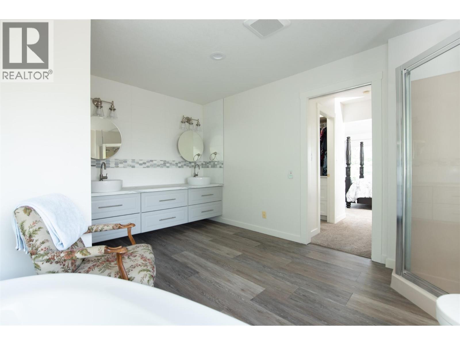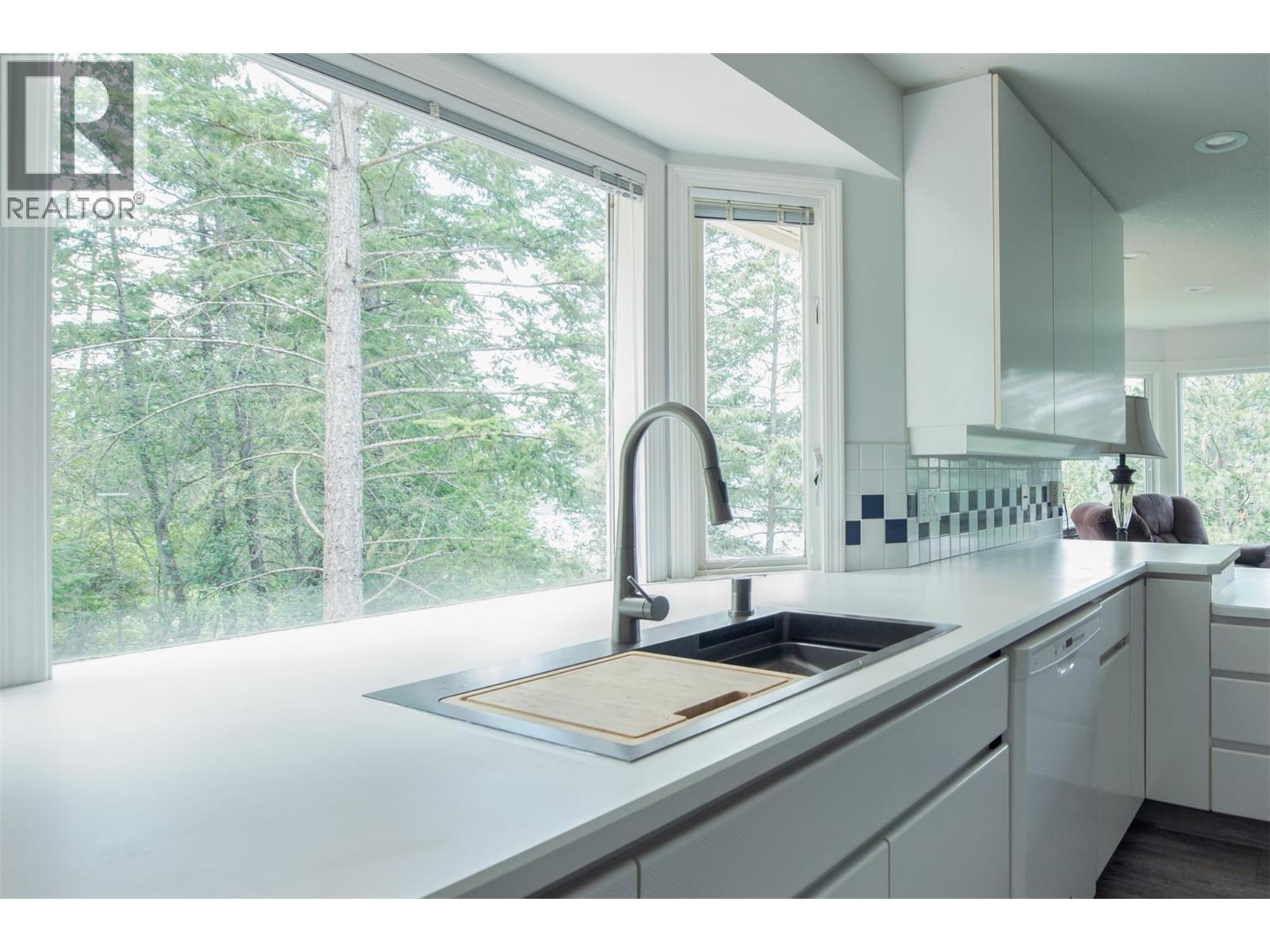 Discover your dream retreat on a private and quiet .63-acre lake view lot. New roof (2023), 10 new windows on main floor, flooring, and self-contained two-bedroom walkout suite! (Over $100,000 spent on renos in the last three years). This home offers lake views and natural light through vaulted ceilings and skylights. Custom kitchen with walk-in pantry and breakfast nook. Great room features Jotul gas fireplace, new hearth, dining area, and living room. Master suite with deck access, walk-in closet, and ensuite bathroom with Neptune tub and double sinks. Second bedroom ideal as den or guest room with Murphy bed. Daylight suite offers modern amenities and lake views. Features include: Jotul gas fireplace, Sound-deadening insulation - New heat pump - Updated appliances - Refinished deck and stairs - Insulated garage doors - Fire-smart clearing -Heated/cooled triple garage with workshop, RV & boat parking. Fenced yard with room for additional shop, plus private beach and boat launch access! (id:6769)