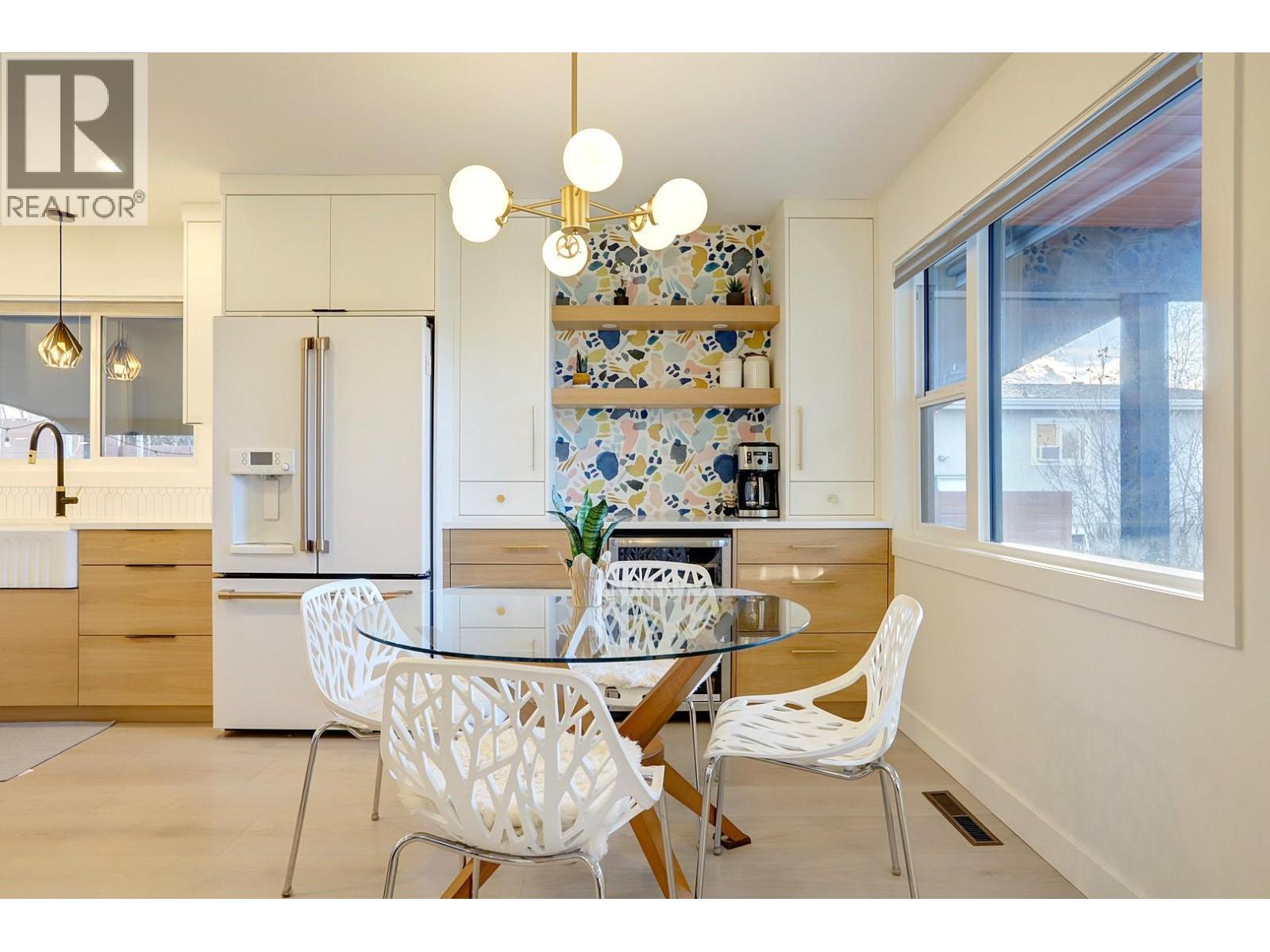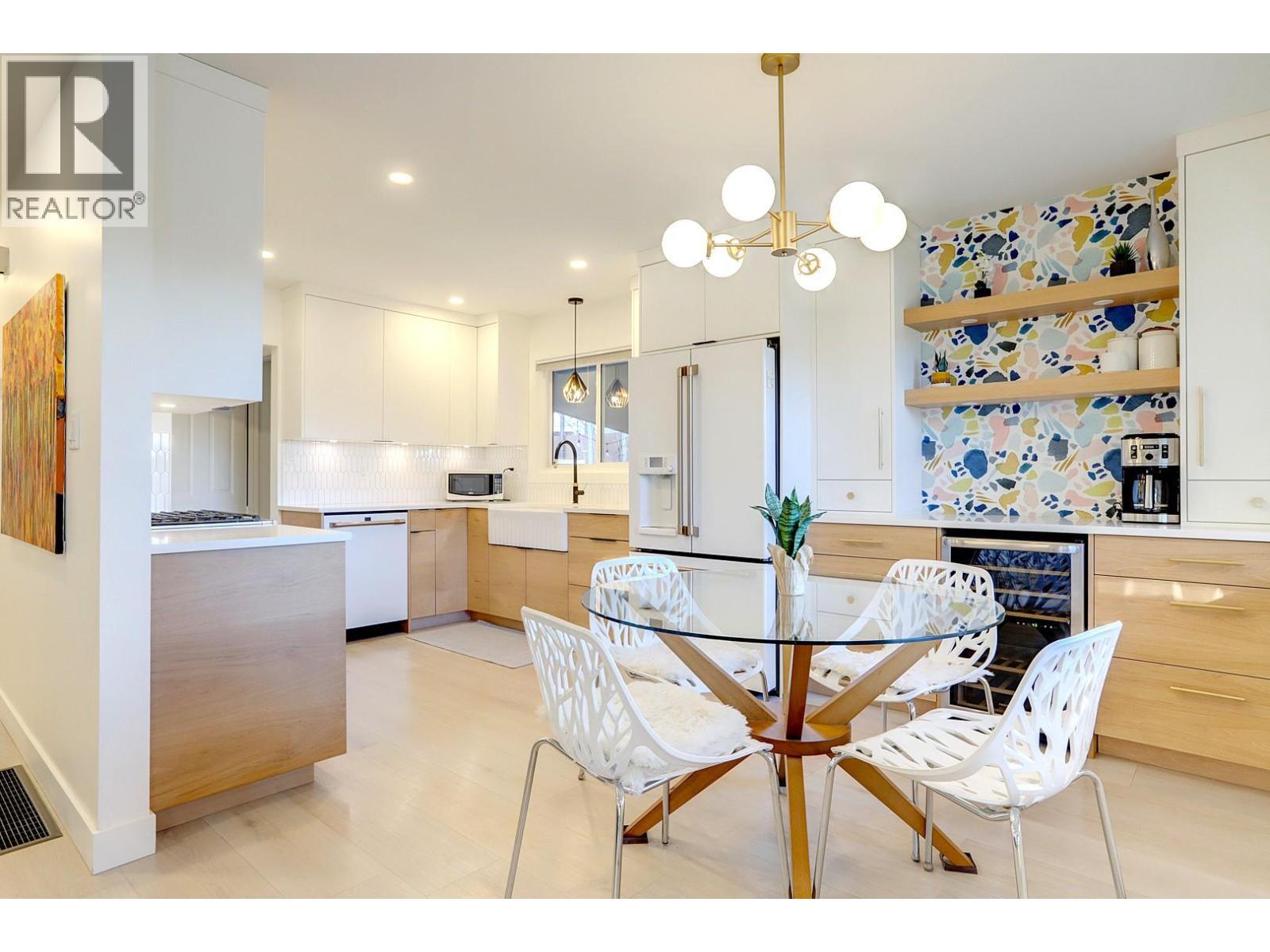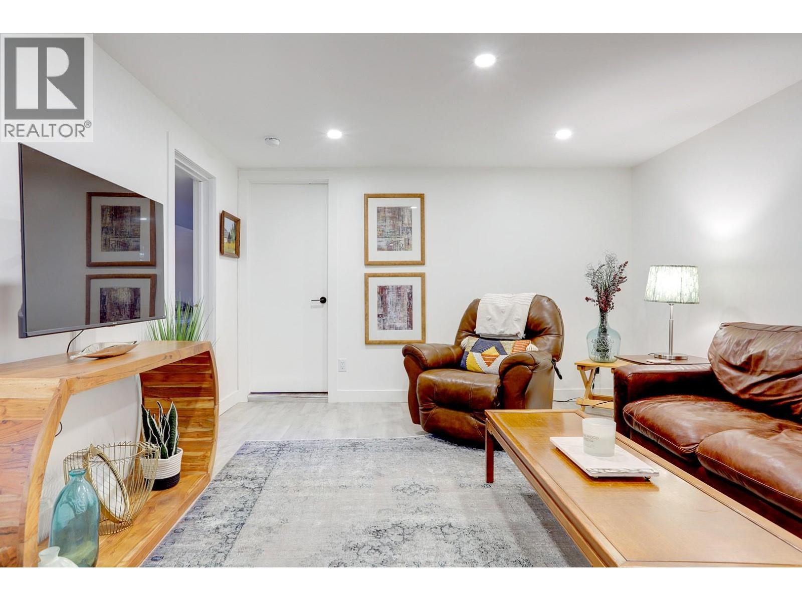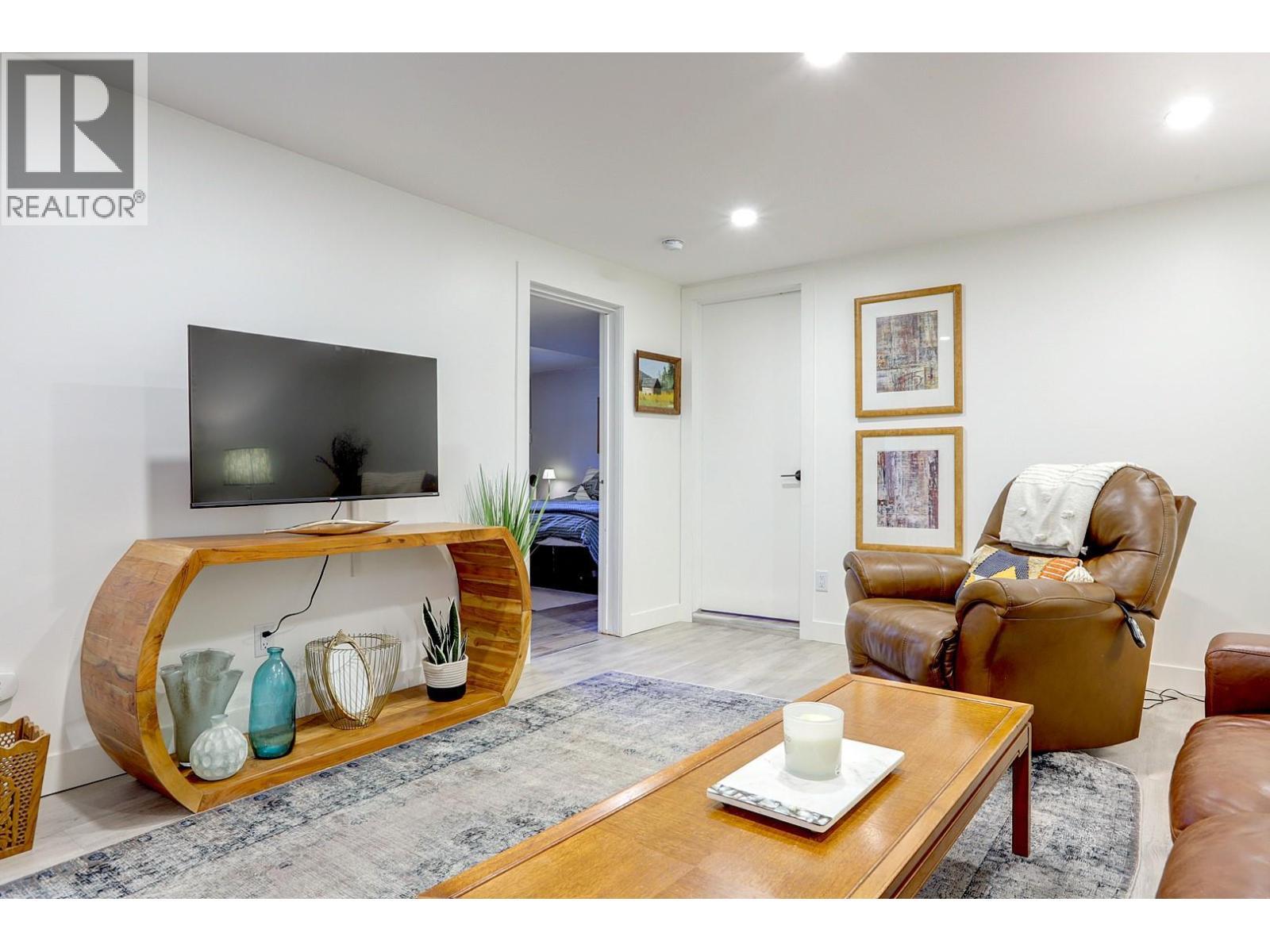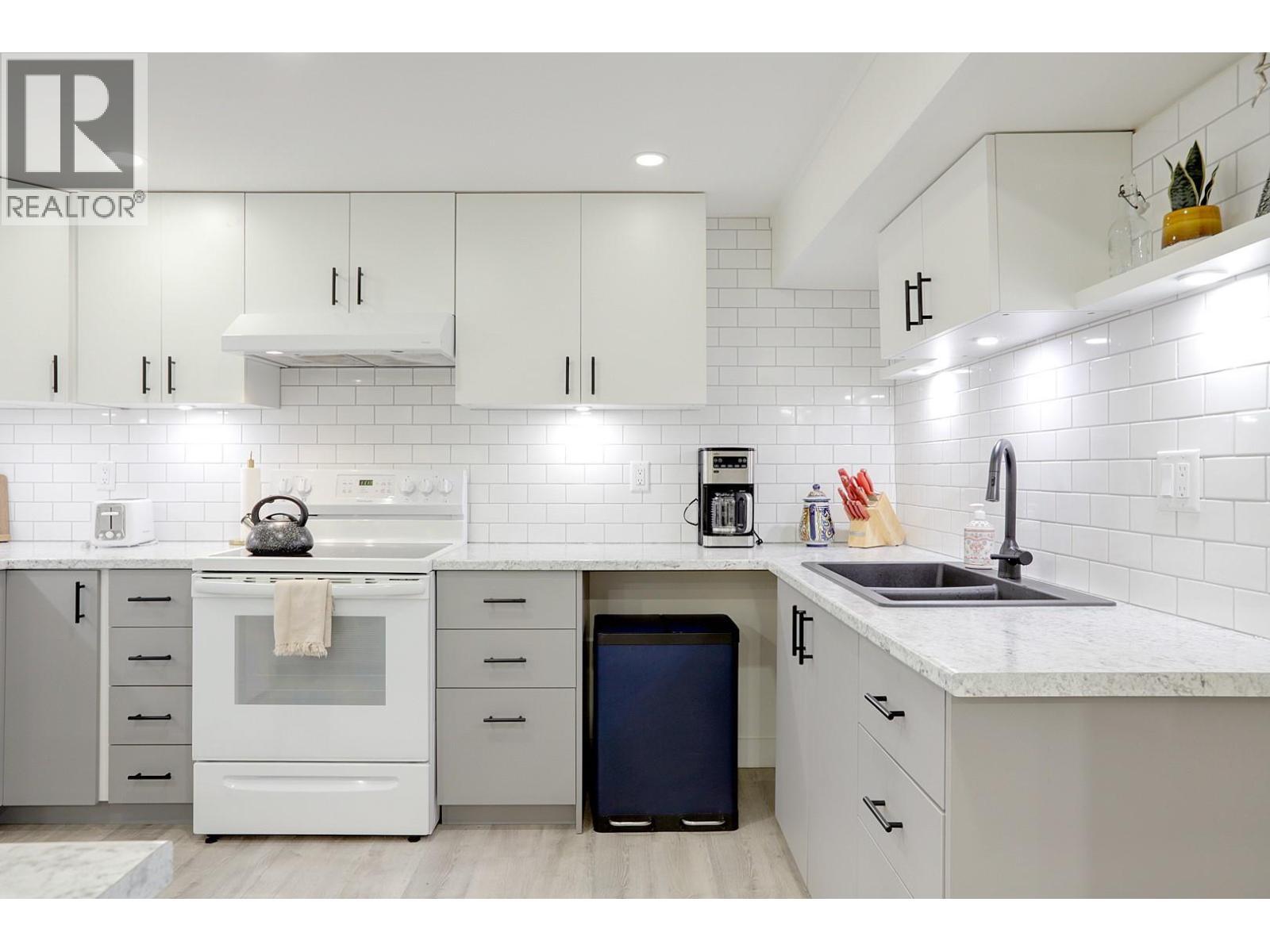 Quietly set on a cul-de-sac in desirable Lower East Hill/Harwood, this beautifully updated home offers privacy, flexibility, & an unbeatable location close to downtown. Elevated above the street, the home enjoys excellent separation from the road, enhanced privacy, & abundant natural light throughout. The main floor is bright, welcoming, & thoughtfully renovated with a clean, modern aesthetic. The stunning kitchen features high-end GE Series appliances, custom cabinetry, open shelving, and a functional layout that flows seamlessly into the dining and living areas perfect for everyday living and entertaining. Contemporary lighting, wide-plank flooring, & tasteful design choices create a warm yet refined atmosphere. Downstairs, a separate unauthorized suite with its own kitchen and two spacious bedrooms provides excellent flexibility for intergenerational living or potential rental income. With four bedrooms & two bathrooms in total, the home is truly move-in ready. The layout allows the entire home to be easily occupied as a single residence, offering flexible living options for buyers who prefer one cohesive, spacious family home. Outside, the private backyard is peaceful & easy-care, with irrigated landscaping & a simple, low-maintenance design. Ample parking adds everyday convenience. A rare opportunity to secure a stylish, versatile home in one of Vernon’s most sought-after neighbourhoods. Measurements taken from iGuide & should be verified if important to a buyer. (id:6769)