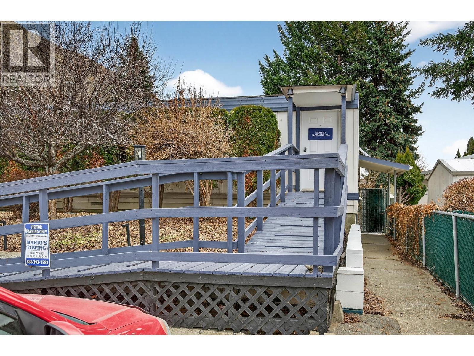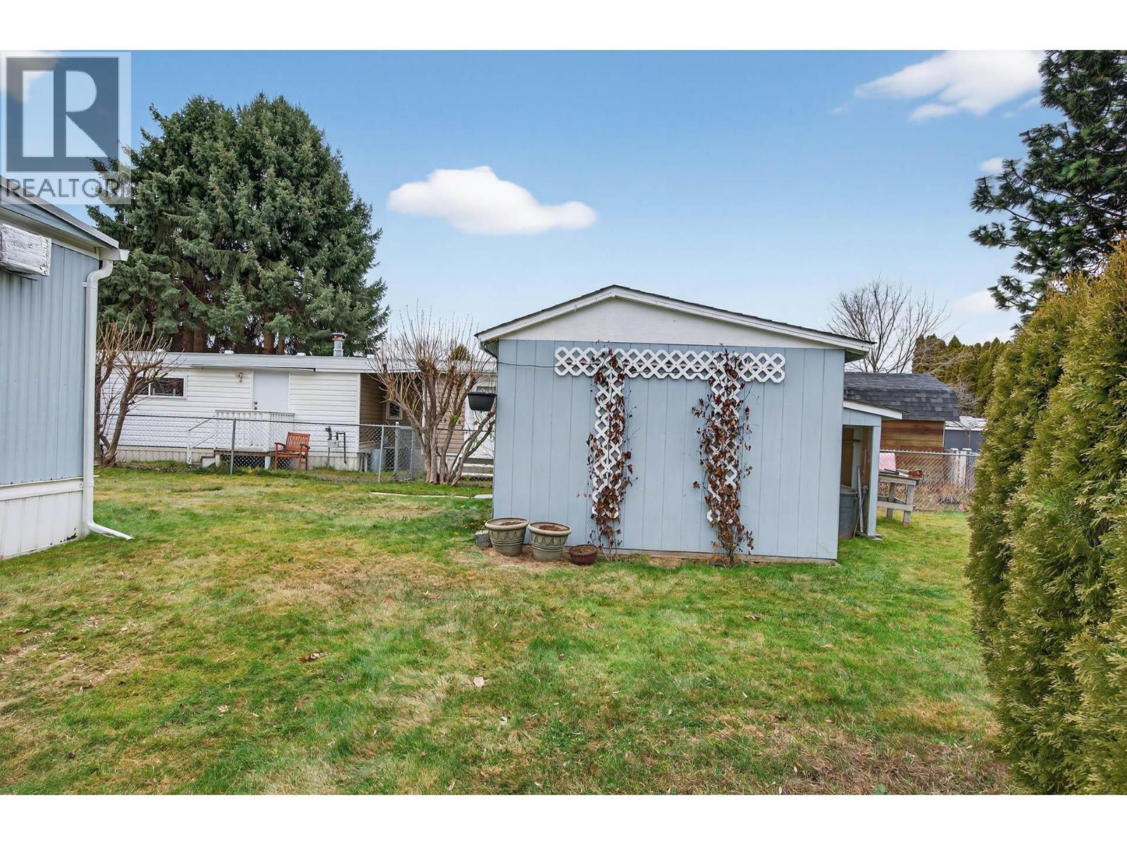 Well maintained 2 bedroom, 1 bathroom manufactured home in the family section of Brock Estates Mobile Home Park. Bright living room with gas fireplace, 2 good sized bedrooms, updated 3 piece bathroom and a large storage room or den. Outside has a nice covered deck with access to a fenced yard with approximately 16x12 shed and underground sprinklers. There are many updates done throughout the years including windows/doors, torch-on roof, laminate flooring, hotwater tank and furnace. Move-in ready with 3 appliances and 2 wall-unit air conditioners included. Great location within the park (family section) and quick possession is possible. (id:6769)