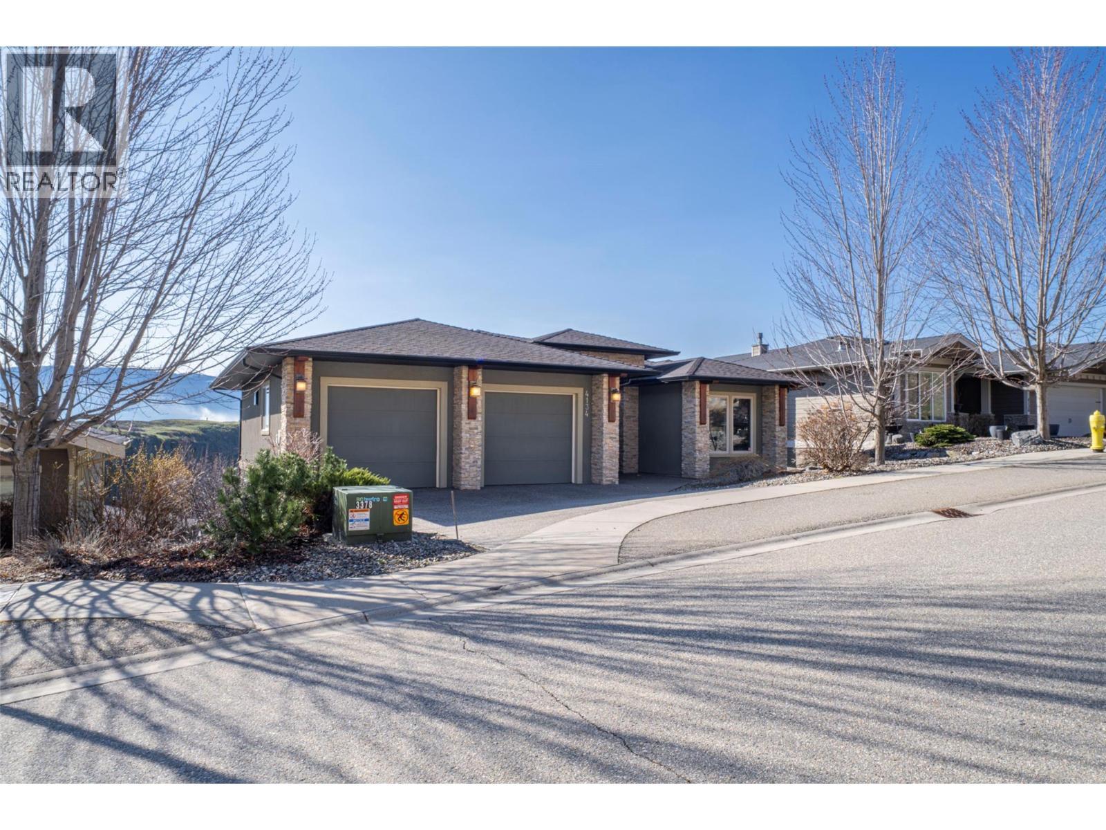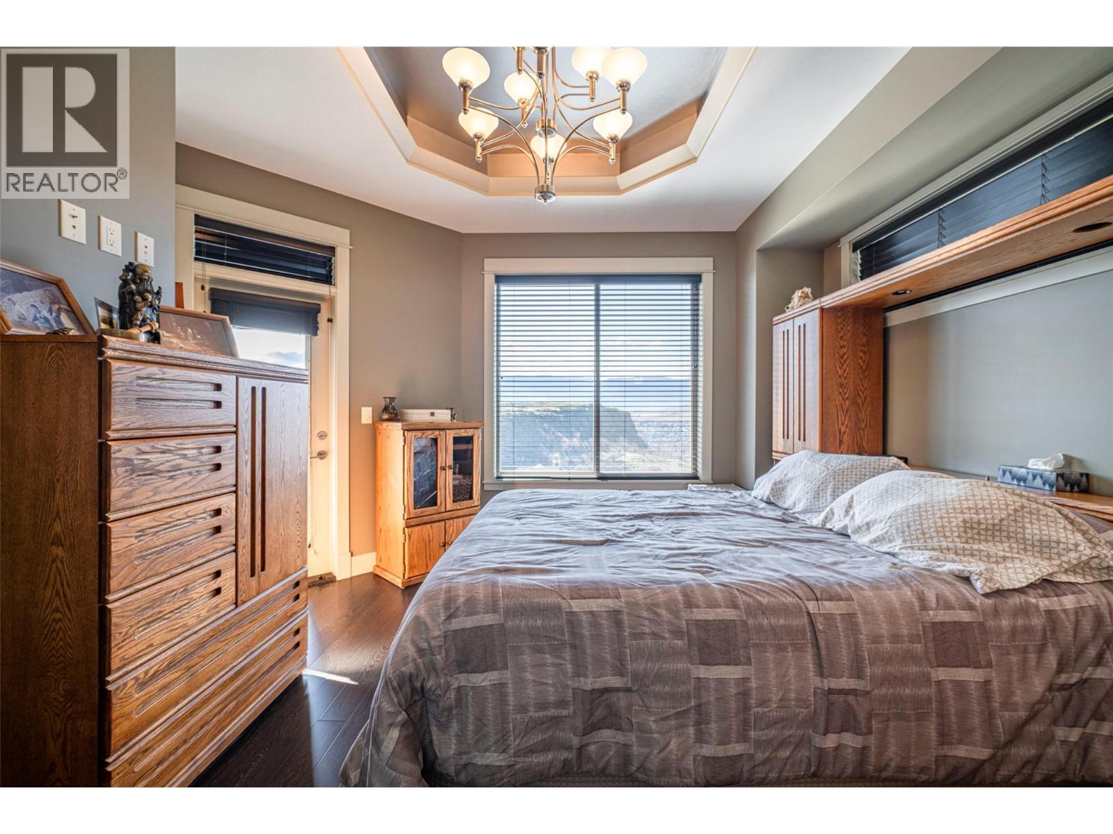 Welcome to desirable Turtle Mountain! Enjoy breathtaking, unobstructed valley and lake views from this custom built 4 bedroom, 3 bathroom home with a fully self contained in law suite, perfectly situated on a low maintenance lot. The main floor showcases a spacious kitchen featuring a gas range, Corian countertops, a 9 ft eating bar, and striking zebra wood veneer cabinetry. Adjacent to the kitchen is a bright eating nook with direct access to a covered patio and stamped concrete deck ideal for entertaining or relaxing while taking in the views. The living room impresses with a tray ceiling, hardwood floors, and a dramatic floor to ceiling stone gas fireplace. The primary bedroom offers private access to the covered deck, a full 5 piece ensuite, and a walk-in closet. A second bedroom or den, full bathroom, and convenient laundry complete the main level. Downstairs, you’ll find a spacious 2 bedroom, 1 bath in law suite with a separate entrance and private patio perfect for extended family or added flexibility. Additional features include an oversized 22' x 26' double garage, central A/C, gas furnace, new gas hot water tank, water softener, and charming timber frame accents. Located close to shopping, city services, and miles of walking and biking trails, this home is ideal for young families, multi generational living, or urban professionals seeking comfort, style, and views. (id:6769)