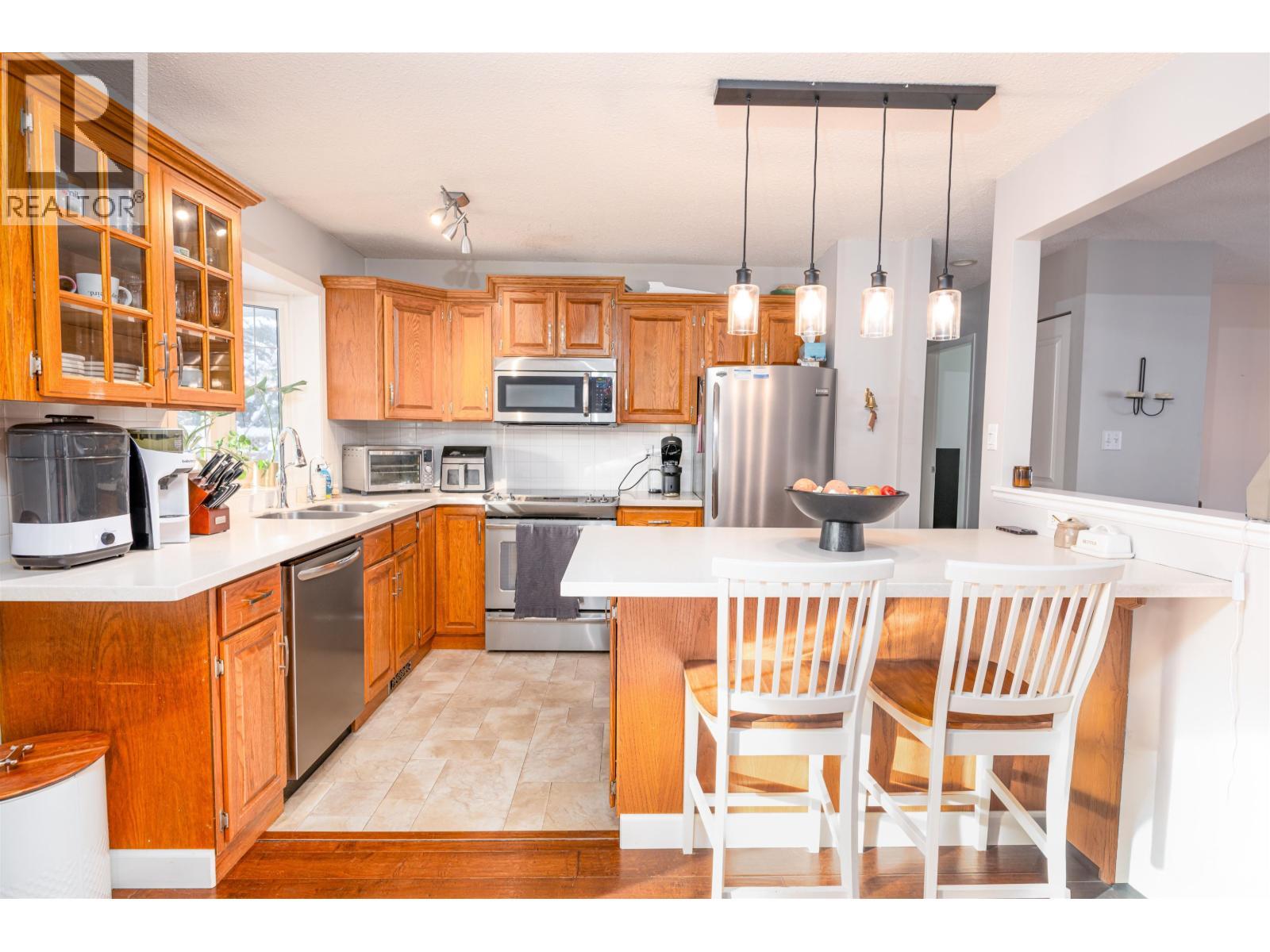 Welcome to this beautifully maintained family home offering quality upgrades and thoughtful details throughout. Featuring 3 bedrooms and 2 bathrooms, plus a self-contained 1-bedroom suite with its own outside sitting area and shed, this home provides flexibility for extended family or additional income. Hardwood flooring, an updated kitchen and bathrooms, and a spacious primary bedroom with French doors opening to the deck create a comfortable and inviting living space.The dining area flows seamlessly to a 40' x 14' partially covered composite deck with glass panels, perfect for family gatherings and outdoor entertaining. Enjoy the fully fenced and landscaped yard with lava rock and mature privacy trees—ideal for kids and pets. Finally, a 25' x 24' radiant-heated garage with backyard access, and RV parking. (id:6769)
