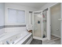 Fully finished home in a fantastic neighbourhood backing the multiway path. This home shows 10/10! The spacious entryway leads to a huge kitchen w/ tons of (quartz) counterspace, ample cabinetry, a large island, & an oversized walk-in pantry. Generous dining nook w/ sliding glass patio doors leading to the large backyard & spacious deck. The main floor also features two-way fireplace & a spacious living room. PLUS 2 pc bath w/ quartz countertop, & main floor laundry. Upstairs offers 3 large bedrooms, w/ primary suite showcasing a large walk-in closet and spa-like ensuite w/ jetted tub, separate shower, & a water closet. The finished basement includes a full bath, huge rec room, and another bedroom that just needs flooring. This home offers plenty of storage space. Updates include new paint (last 3 years), new flooring, new counters and backsplash on the main floor, new furnace and heat pump (Nov 2024), new baseboards throughout, and much more. Top it all off with a heated large double attached garage. (id:6769)