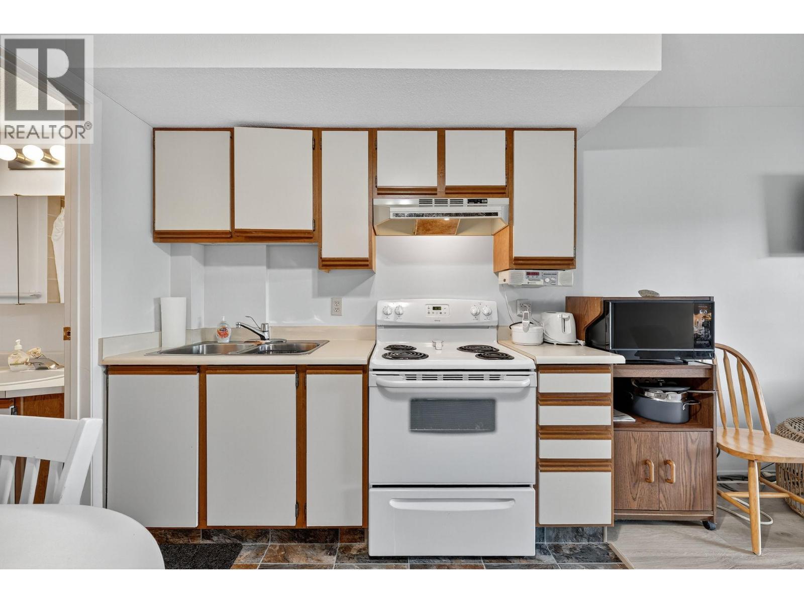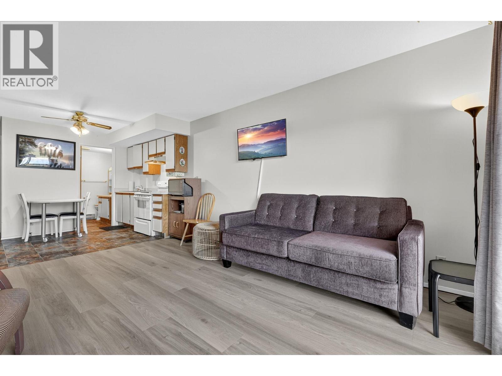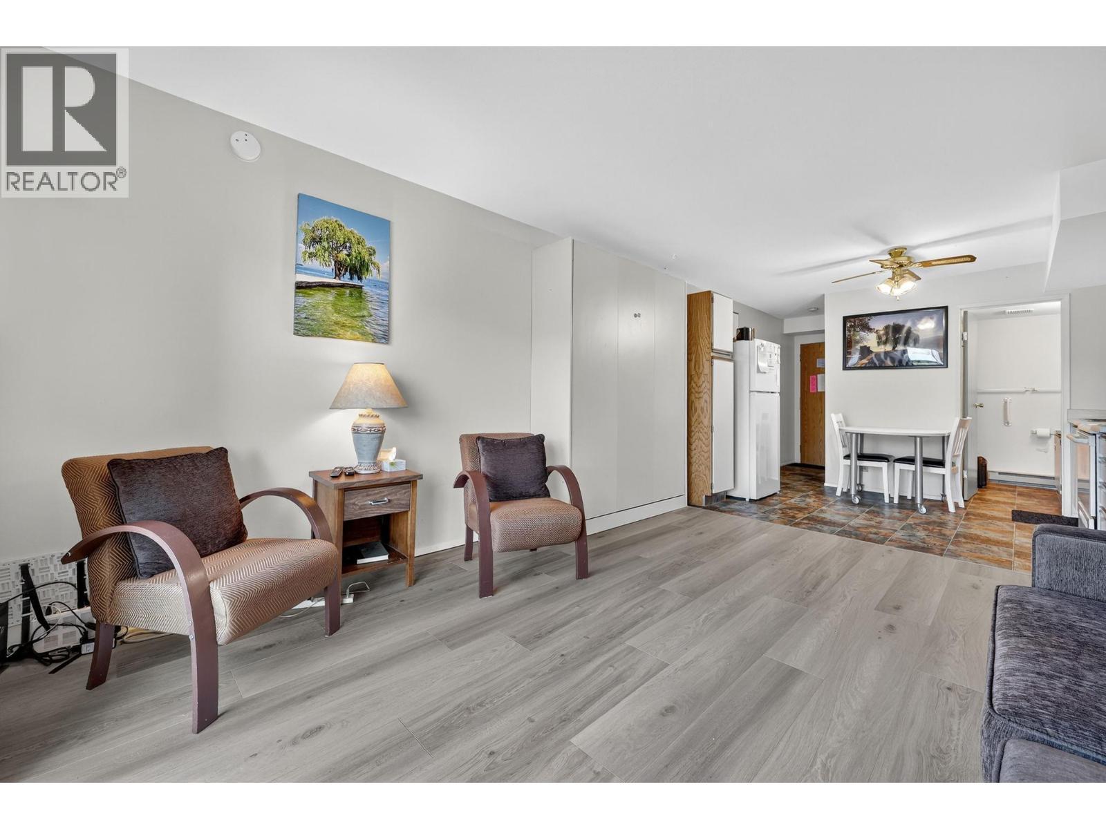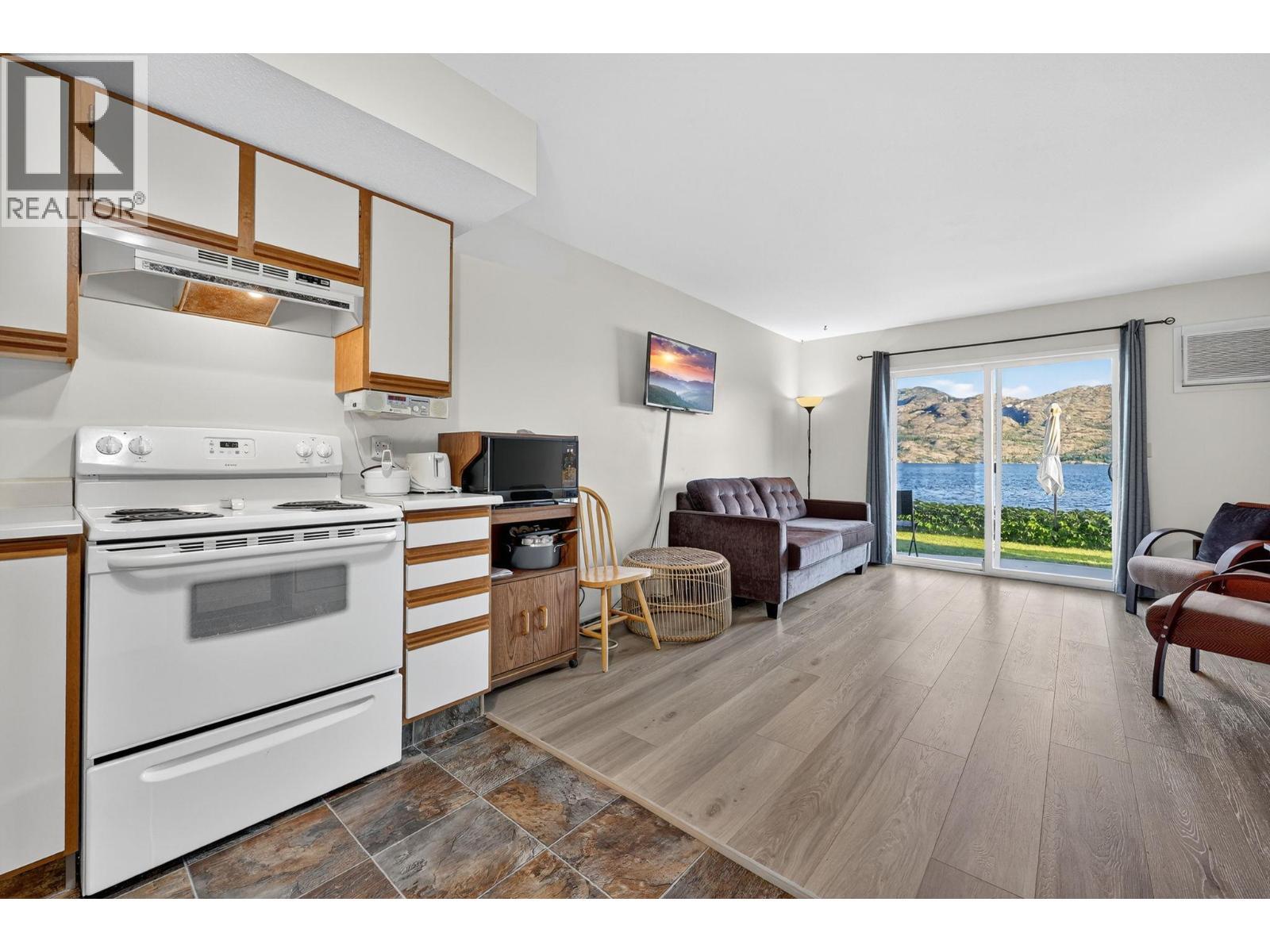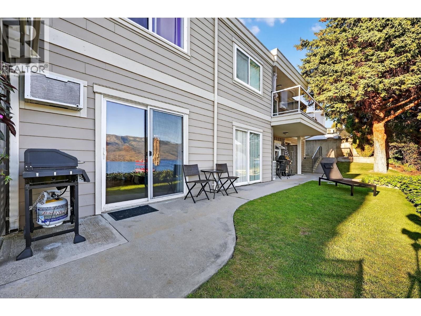 Own your own piece of Okanagan lake front! Best kept secret in the area. This open concept, air conditioned condo in a secure gated community has everything you need to spend your summers on the lake. Sleeps 4, fully furnished, with a new hide a bed, a murphy bed with a new mattress, newer smart TV, tables, chairs and even pots, pans, dishware, glasses, cutlery and a BBQ. New laminate flooring this past year. Wake upright beside the lake and enjoy the lakefront breeze while having a morning cup of coffee on your patio beside the water. Extra storage and 1 assigned parking spot. The resort life comes with many amenities such as boat moorage in the private marina, a clubhouse, private shared dock, boat launch, boat trailer parking, fire pits, coin laundry and ice machine. Telus fibre optic WIFI is available and for extra security the marina and guest parking is monitored by cameras. Great for rental income when you aren't using it yourself. Come see for yourself what lake life can be like. Don't miss out on this great opportunity. These units don't come up for sale very often. (id:6769)