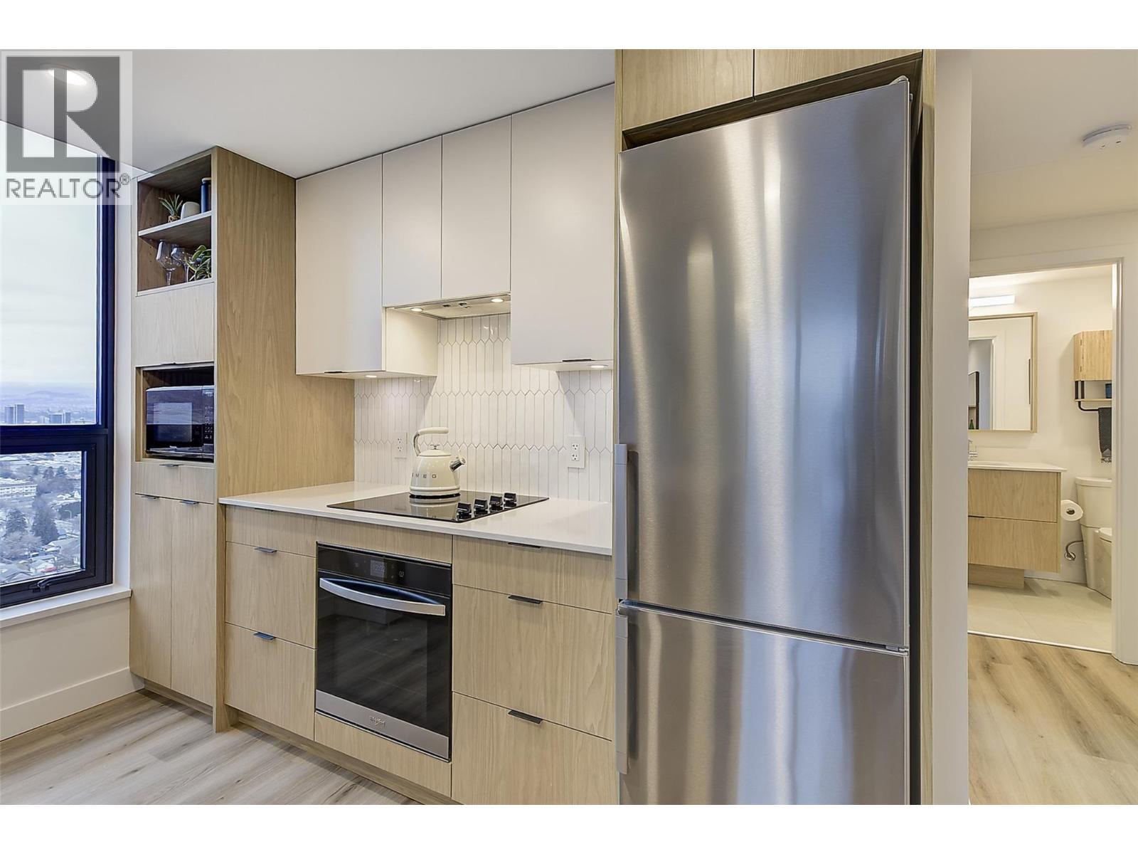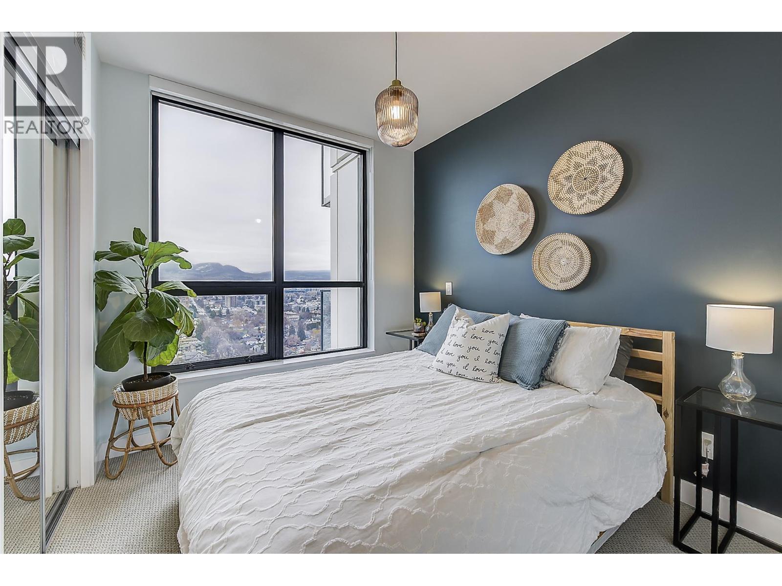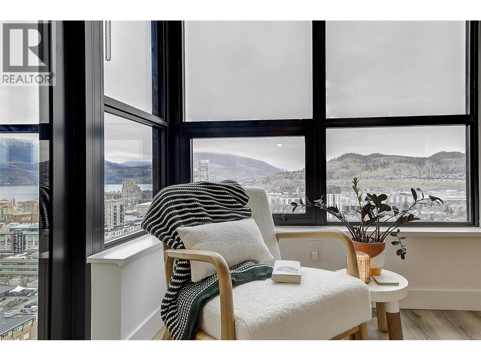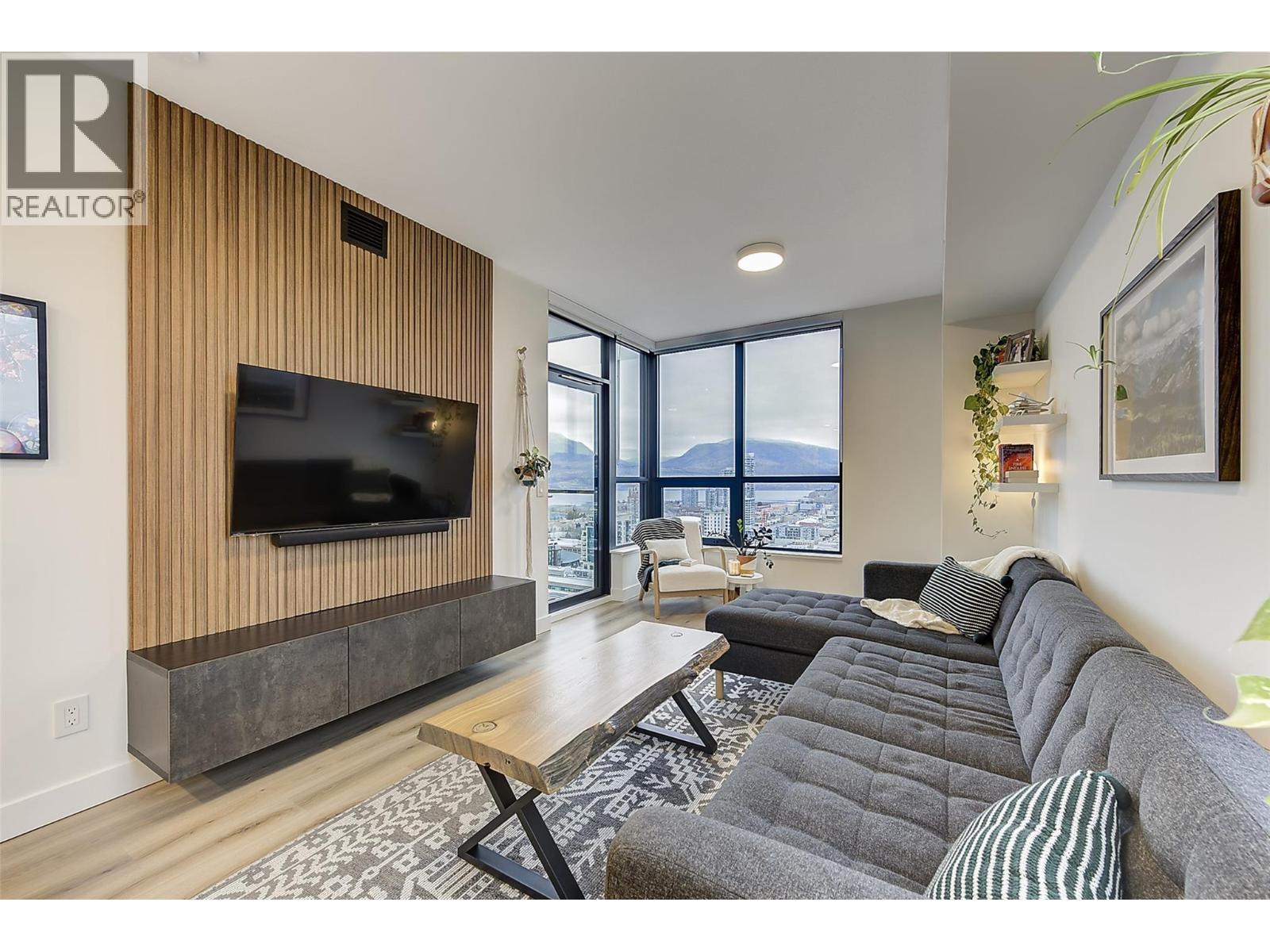 Welcome to Bertram, located in the heart of Downtown Kelowna. Recently built in 2024, this bright two-bedroom, two-bathroom outside corner unit is perched way up on the 25th floor where you can enjoy stunning unobstructed lake, city and mountain views. The 805 sq. ft. layout is thoughtfully designed with split bedrooms for privacy, air conditioning, expansive windows, and a clean modern kitchen featuring quartz countertops and stainless steel appliances. Step out onto the covered deck and enjoy a glass of wine with a beautiful view. Residents enjoy resort-style amenities including a rooftop heated pool and oversized hot tub with 360-degree views, outdoor BBQ and lounge areas, fitness centre, bocce ball court, dog run and wash station, community gardens, secure bike storage, and multiple indoor lounges and workspaces. One secure parking stall and a dedicated storage locker are included. Just steps to the lake, boardwalk, shopping, groceries, fitness/gyms, and some of Kelowna’s top restaurants, this home offers a exceptional walkable lifestyle and everything that makes Downtown Kelowna the place to be!. Hurry and Call your Realtor NOW!. (id:6769)