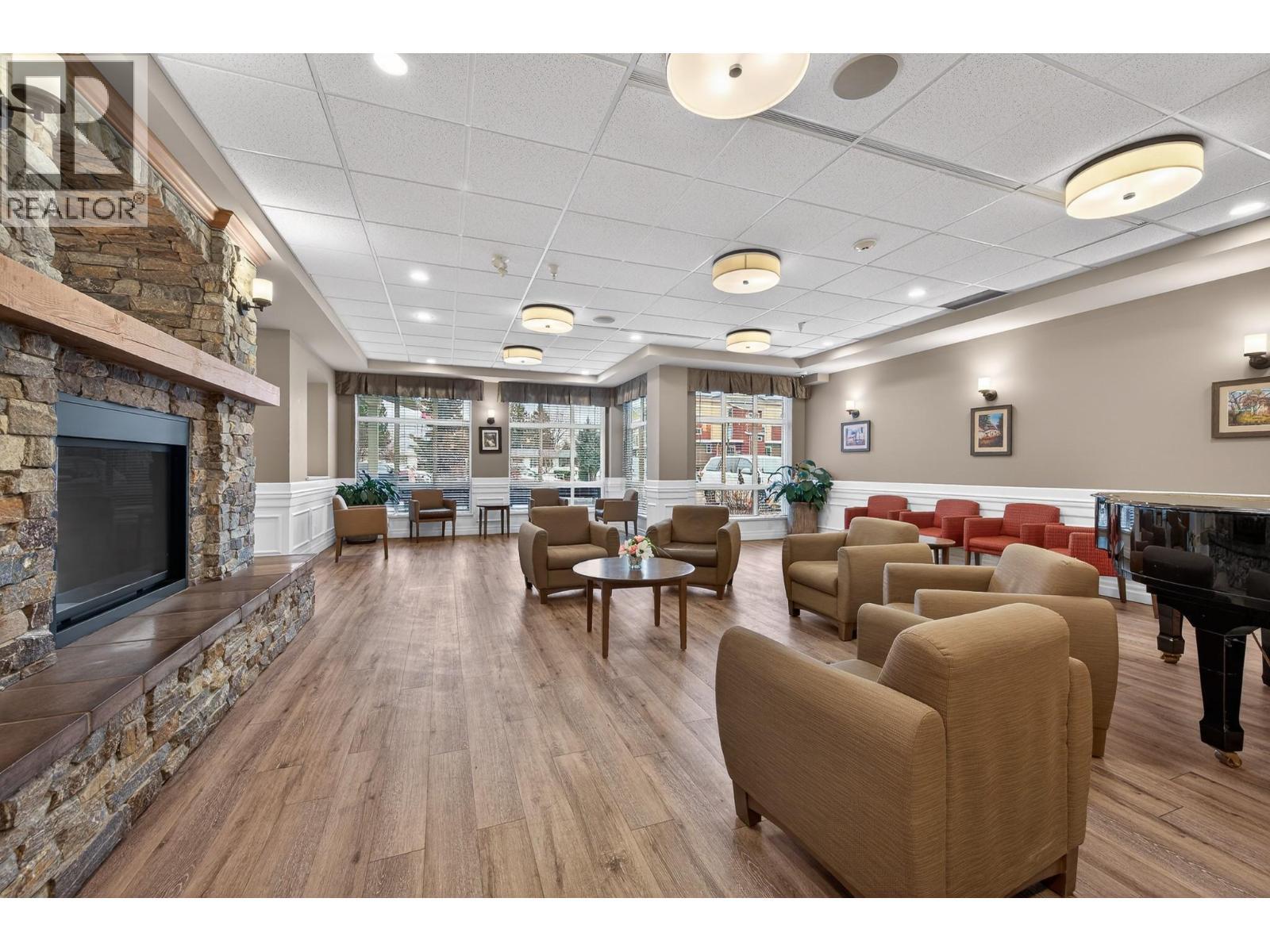 An exceptional opportunity awaits at Mayfair–RiverBend! This bright, spacious 2-bedroom home offers an inviting open-concept design, complete with a well-equipped kitchen featuring abundant cupboard space. The oversized bathroom includes a walk-in shower and direct access to a generous walk-in closet. Large windows fill the dining and living areas with natural light, complemented by an electric built-in fireplace and access to a private balcony that enjoys warm morning and early afternoon sun. Thoughtfully designed for accessibility, the unit features widened doorways and hallways suitable for wheelchair use. Situated in an executive 55+ community with secure entry, the building welcomes you with a beautifully appointed lobby that includes a piano, fireplace, and comfortable seating. River Bend Seniors Community offers a vibrant lifestyle with daily activities and impressive amenities such as an optional dining room, library, media room, gym, community room, storage locker, and electric scooter parking. Outdoors, residents can enjoy a raised community garden, gazebo, and a scenic walkway leading to the riverfront beach. Convenience is at your doorstep with direct access to a dentist, pharmacy, and hair salon, plus an easy stroll to Brock Shopping Centre—home to Save-On-Foods, Dollar Store, restaurants, a bakery, liquor store, insurance office, and Tim Hortons. Optional outdoor parking is available for $25 per month (waiting list). Rentals and small pets are permitted with some restrictions. A wonderful place to embrace retirement living—contact your REALTOR® today to arrange a viewing! (id:6769)