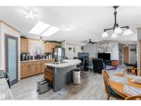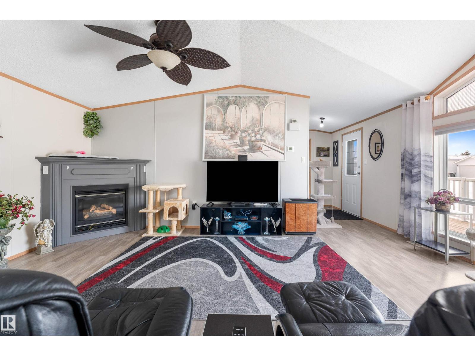 Meticulously cared for and located in the sought after community of Meridian Meadows, this ranch-style home offers 1,480 sqft of modern, low maintenance lifestyle for those seeking the quality & comforts of main floor living. Find flow & functionality as you follow tasteful vinyl plank flooring through the spacious living room with cathedral ceilings & corner fireplace, and into the airiness of the kitchen where the pantry, abundance of cabinet & counter space and island with bar seating will leave you impressed. The dining area presents a view of the massive covered deck, perfect for entertaining. A king-size ready primary bedroom, offers a walk-in closet & private 3pc ensuite. On the other end of the home, you'll find 2 more generous sized bedrooms, each characterized by vaulted ceilings, and serviced by the 4pc main bathroom. The custom back deck tastefully enclosed with a glass wall, keeps bugs and wind out, while preserving sunshine. The extensive driveway leads to a heated, double, tandem garage. (id:6769)