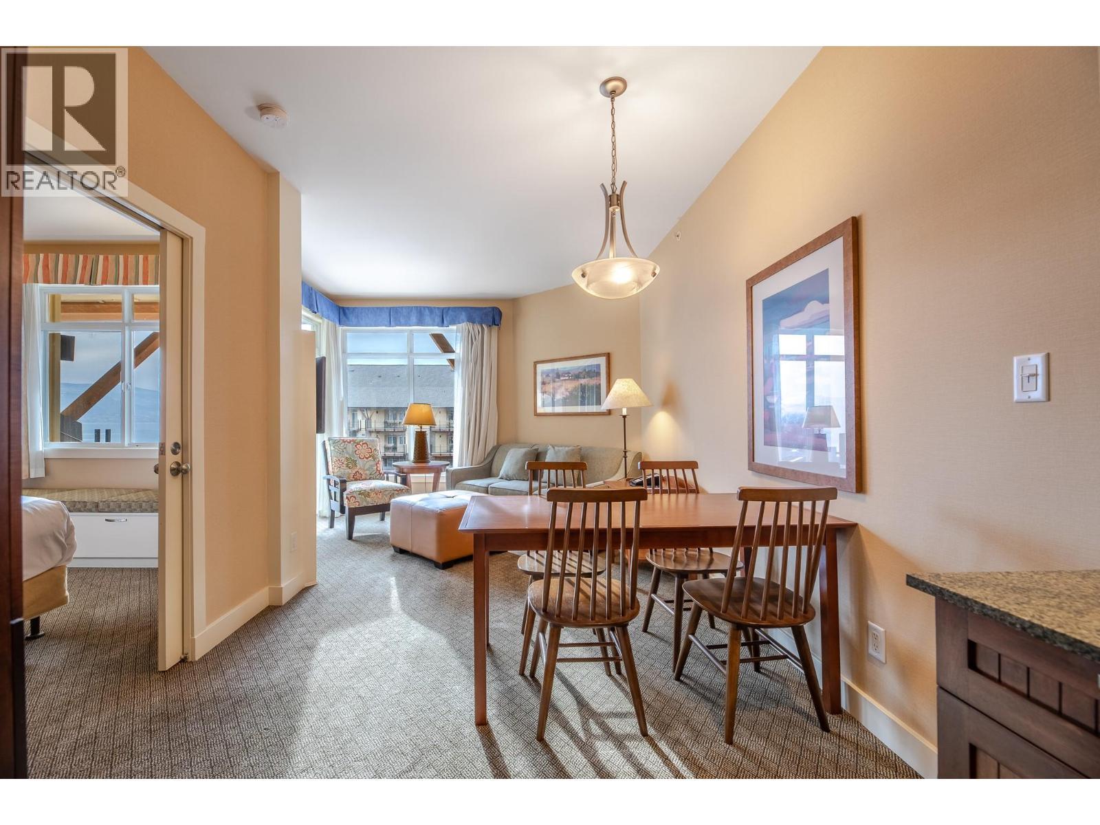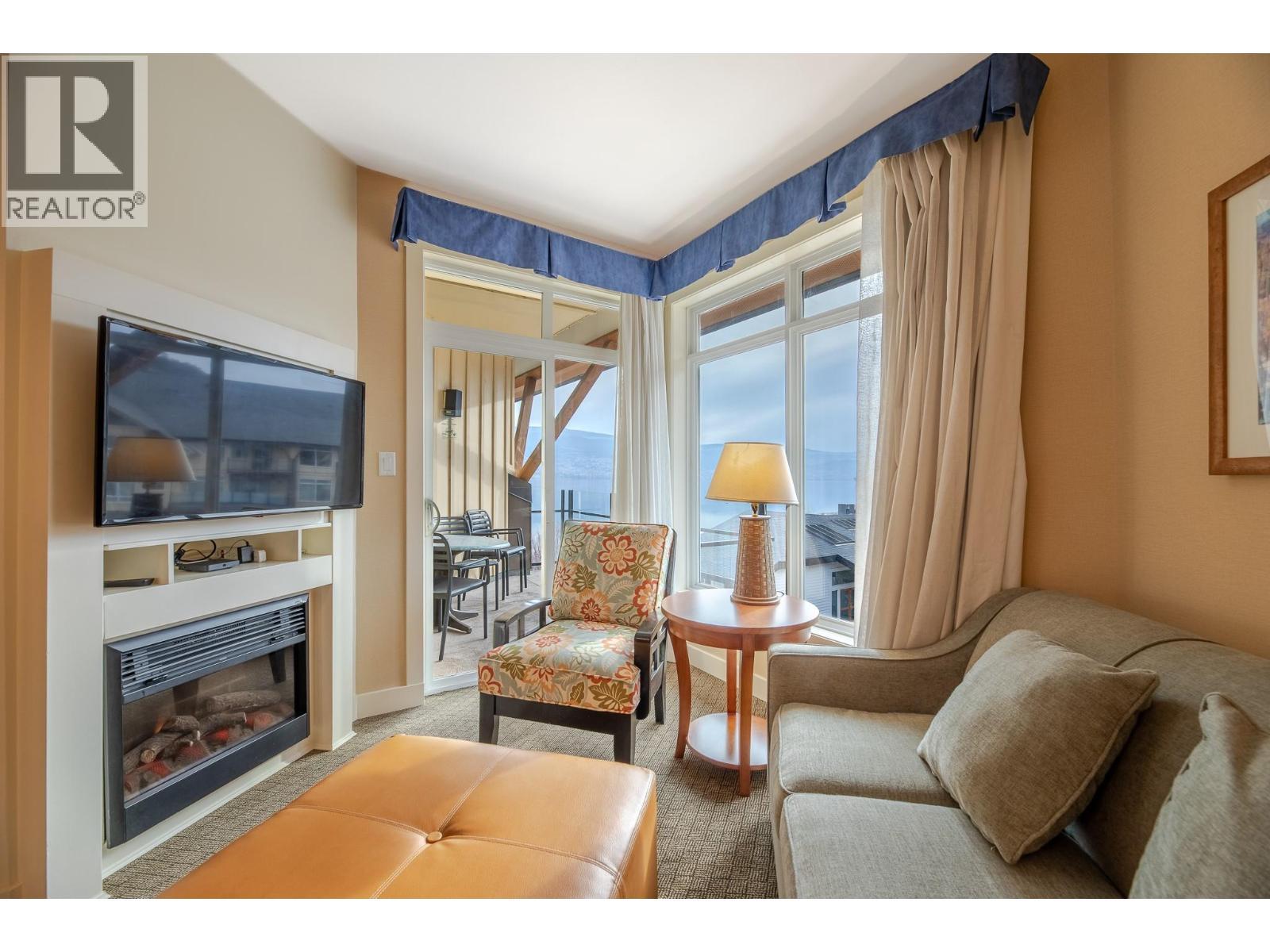Perched on the top floor of the Summerland Waterfront Resort, this bright and airy suite offers a front-row seat to the natural beauty of Lake Okanagan and the surrounding mountains from your own private balcony. The open-concept interior comes fully furnished with granite countertops, stainless appliances, sofa bed and a cozy fireplace that anchors the living space. Beyond the suite, the resort serves as a complete lakeside playground, providing exclusive access to a private beach, heated outdoor pool, hot tubs, and a fitness center, all while being a short stroll from the marina and local dining. This pet-friendly property functions as both a personal sanctuary and a smart asset, offering a turn-key solution for those who want to enjoy the best of the Okanagan while benefiting from a professionally managed rental pool to generate income when you're away. All measurements are approximate. (id:6769)