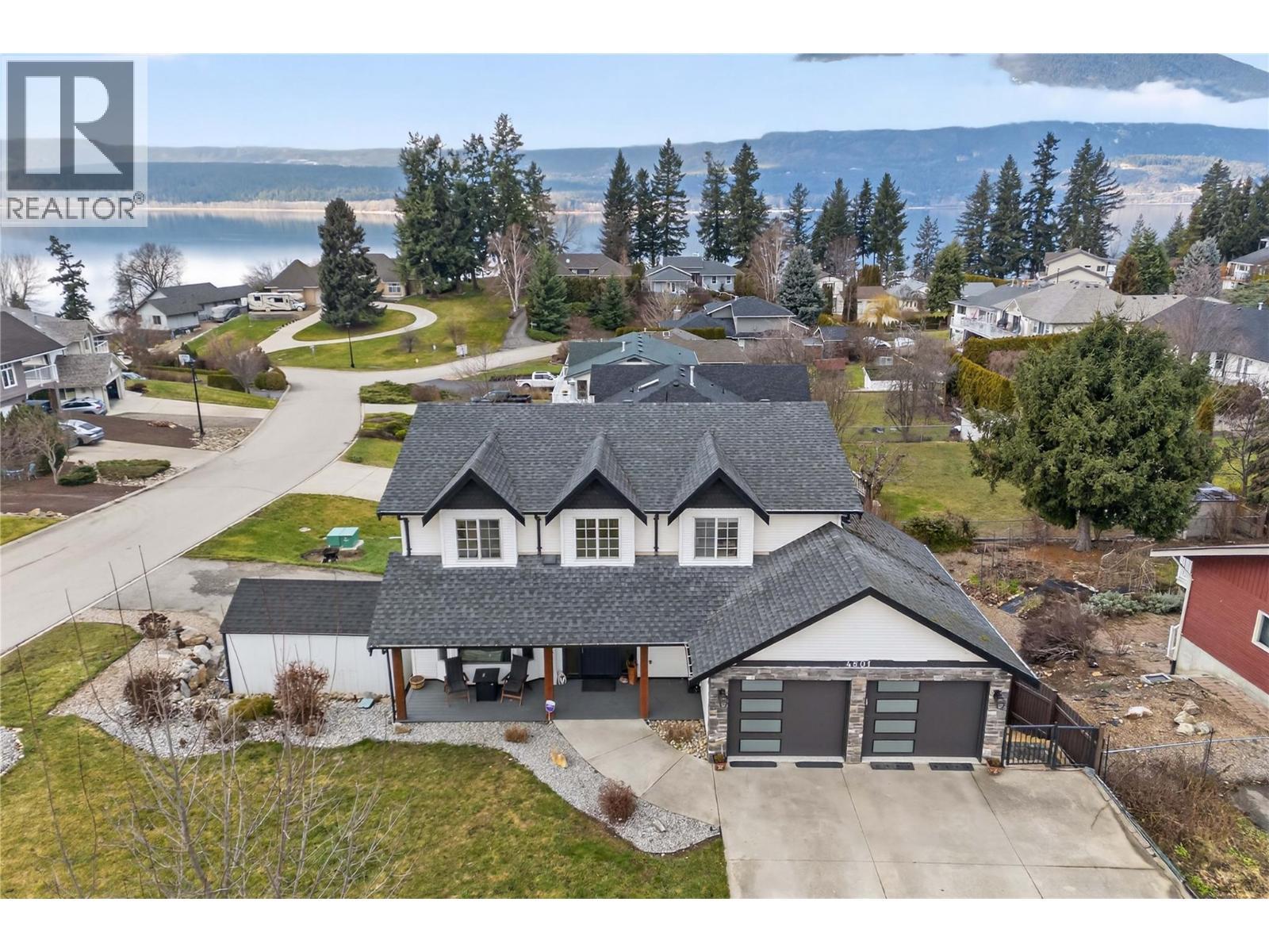 This beautifully updated 5-bedroom, 4-bathroom lakeview home offers over 3,300 sq ft of extensively renovated living space. The main level features a welcoming layout with a spacious kitchen opening to the family room & breakfast nook. Kitchen updates include quartz countertops, new tile backsplash, sink & hardware, plus a new fridge & dishwasher. Fresh paint, new light fixtures & updated blinds throughout create a clean, modern feel. Step outside to the new back deck overlooking the lake—perfect for relaxing or hosting summer barbecues. Curb appeal shines with a beautiful new front door, front porch with composite decking, new garage doors, epoxied garage floor & landscaped backyard. Upstairs, the primary bedroom offers a walk-in closet & a stunning new ensuite with walk-in shower & soaker tub with lake views, plus three additional bedrooms & a renovated full bath. The lower level (with all new flooring) includes a bedroom, renovated bathroom, spacious rec room with fireplace, large storage area & a versatile room with exterior access—ideal for a home office, gym, bedroom, or guest space. Poly-B plumbing has been replaced for added peace of mind. Ample parking includes a flat driveway, double garage & secondary driveway with space for a boat or RV. Located in a family-friendly neighborhood on the school bus route, just steps to parks, the foreshore trail to downtown Salmon Arm & close to Coyote Park’s walking & biking trails. A detailed list of upgrades is available. (id:6769)