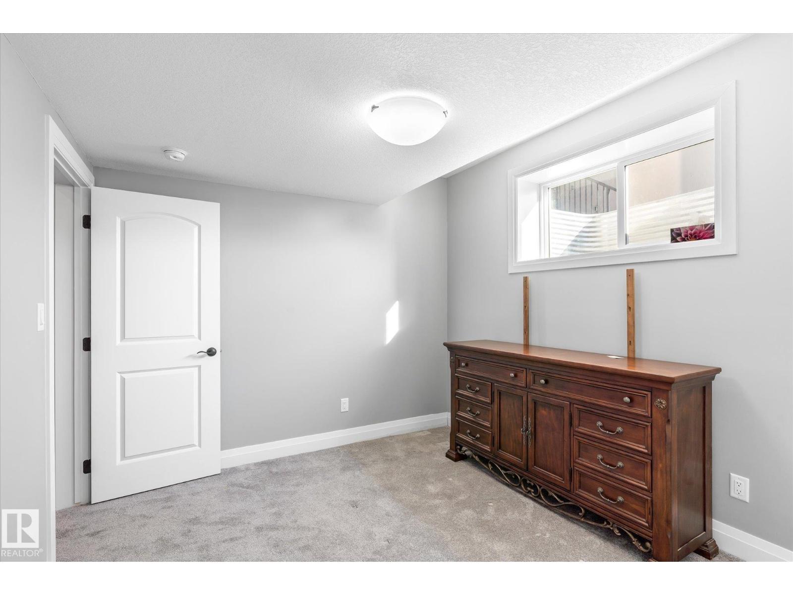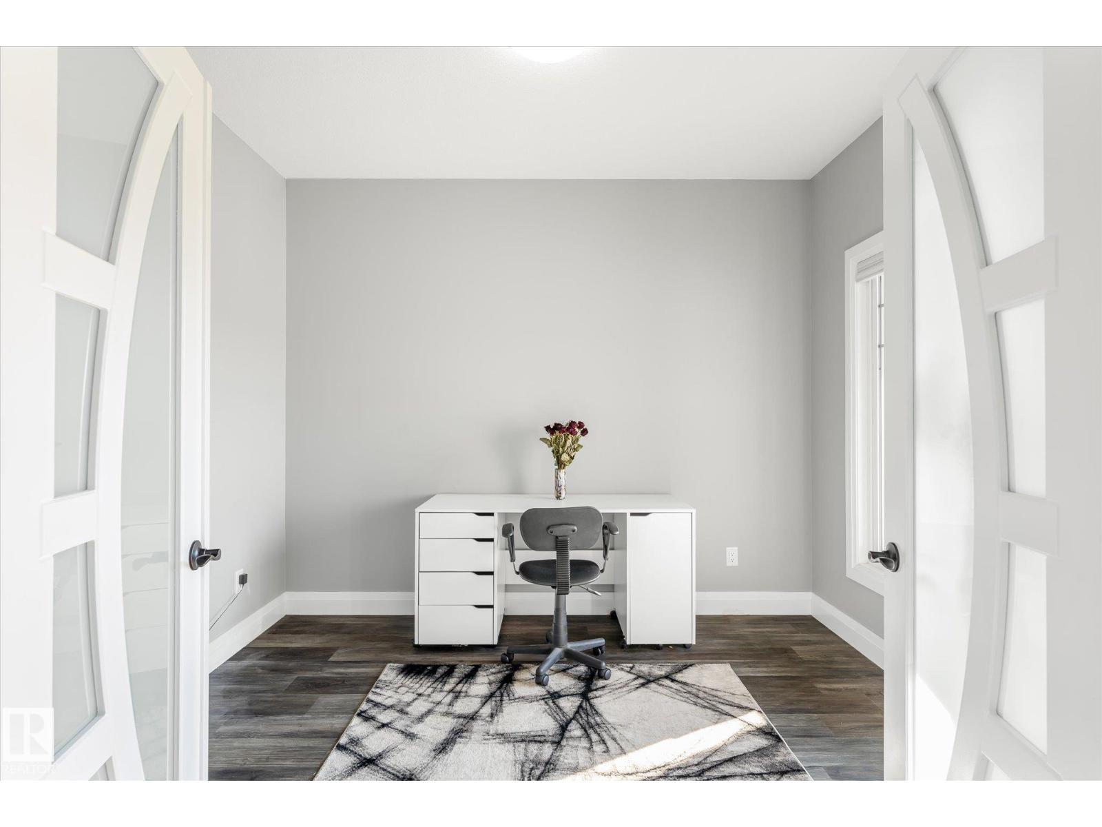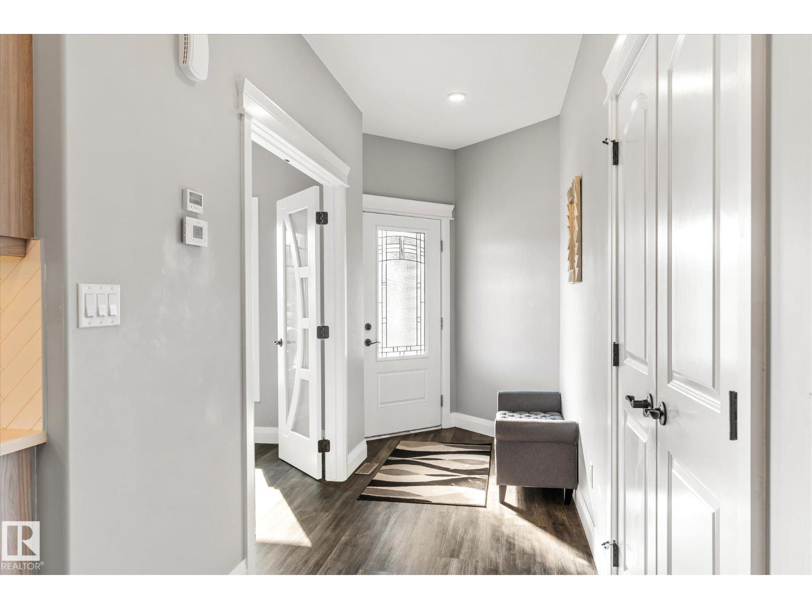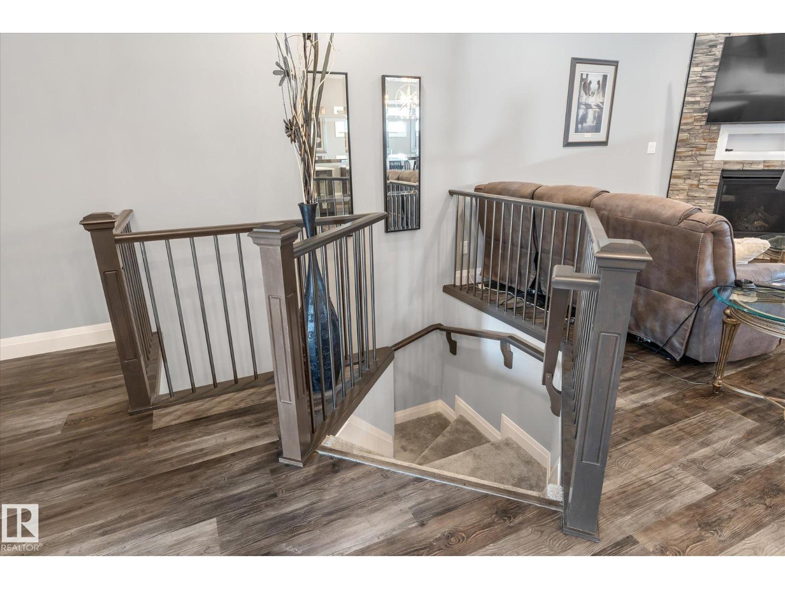 Exquisite custom-built bungalow with all the bells and whistles! Rare find in Fort Saskatchewan on a quiet cul-de-sac, partially backing a park for privacy. At 1,577 sq ft with fully finished basement, it offers high-end finishes and plenty of space for downsizers seeking single-floor living while keeping a functional basement. Stunning curb appeal includes a triple car garage and front veranda. Main floor features a bright den, warm fireplace in the living room, dining area, chef’s kitchen with stainless appliances, granite counters, island, and pantry. Mudroom with laundry, 4-pc main bath, and spacious primary bedroom with TWO walk-in closets and 5-pc ensuite with heated floors. Basement boasts high ceilings, large windows, 3 bedrooms, and massive rec space. Enjoy the back deck, landscaping, central A/C, and pristine condition — a true 10/10! (id:6769)