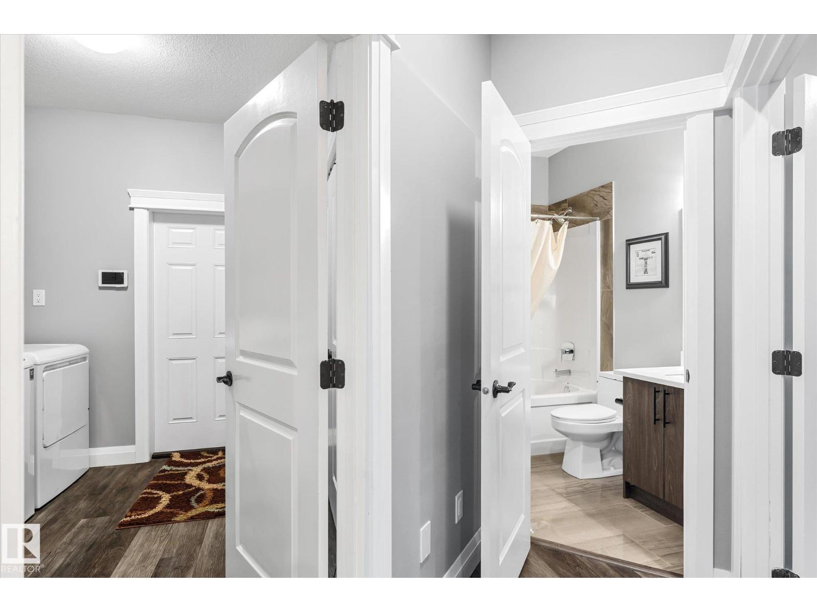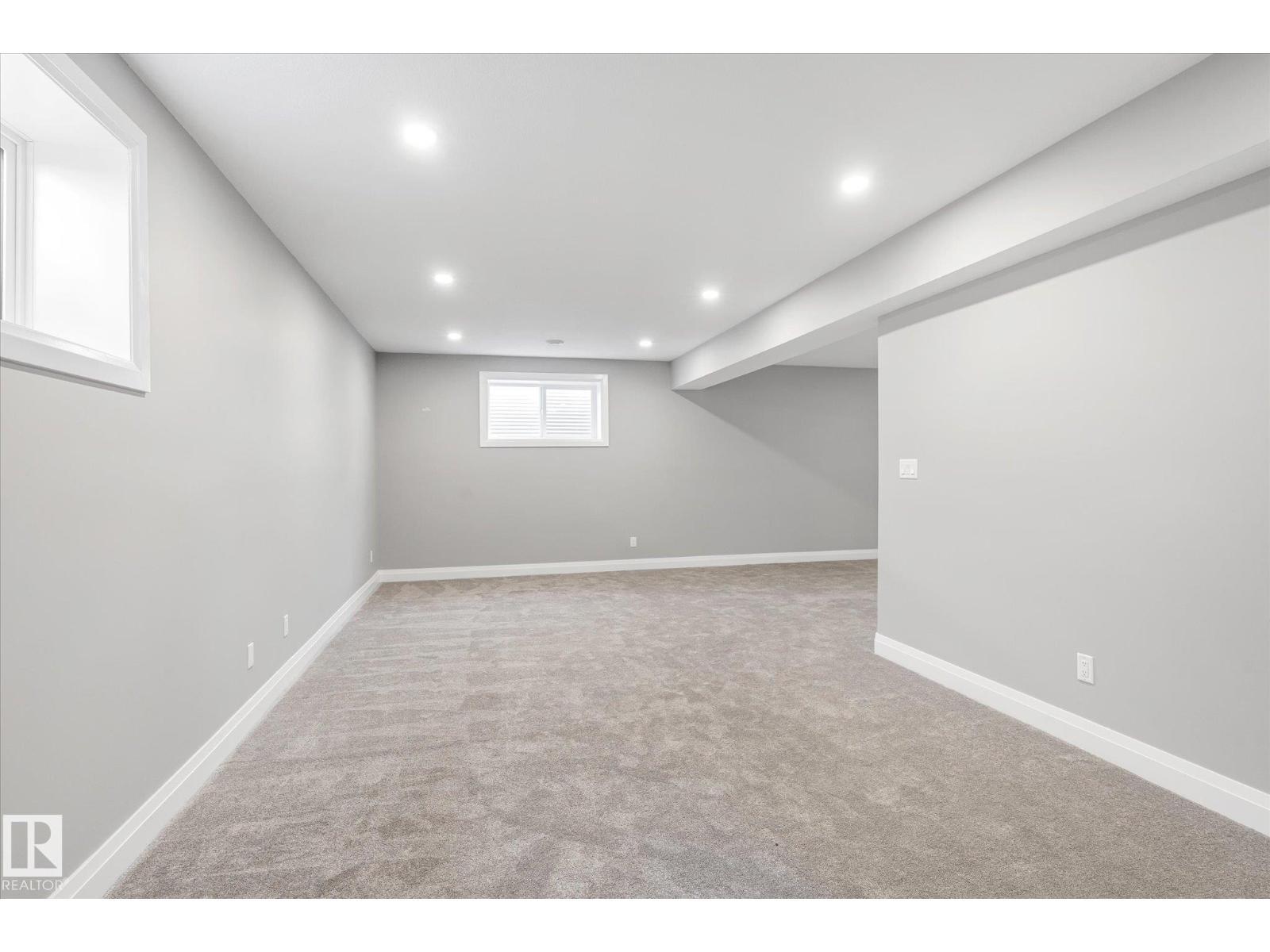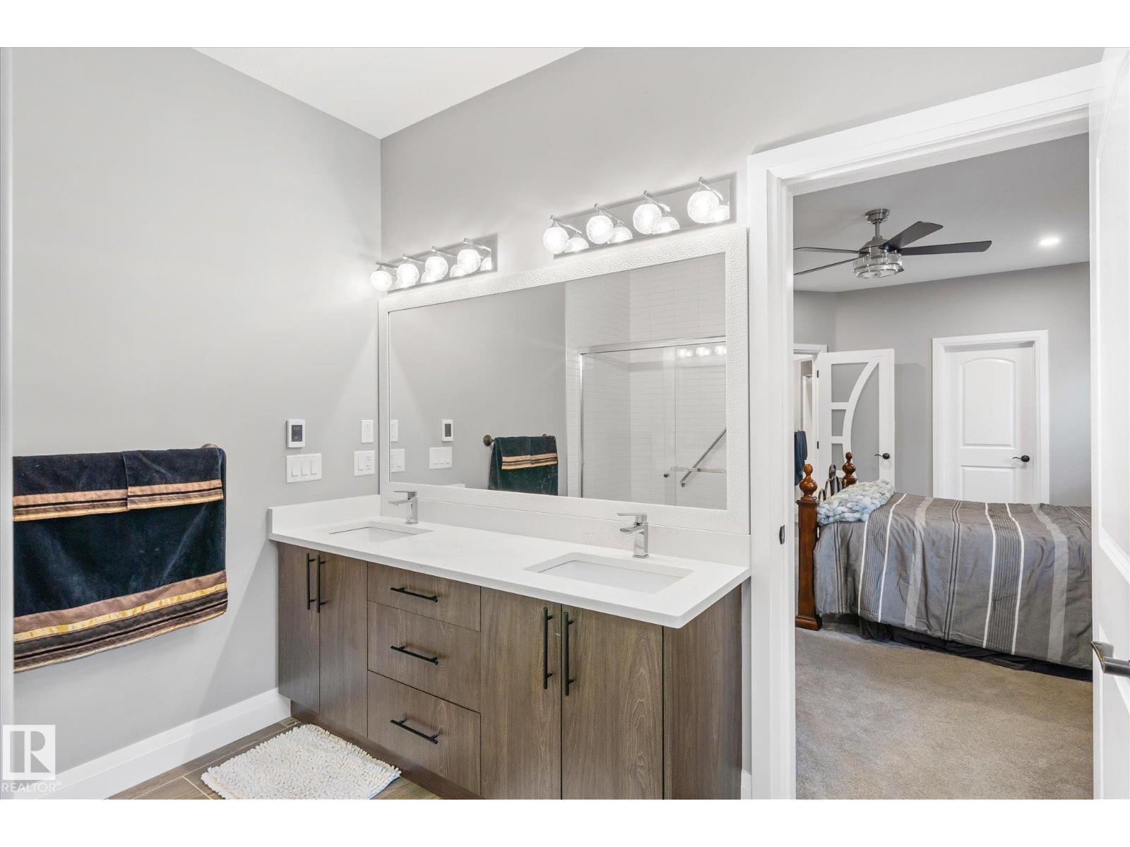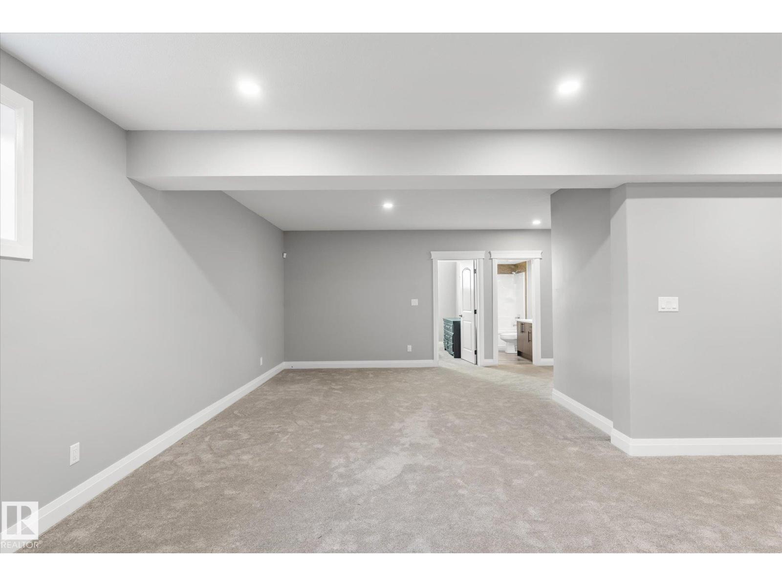 Exquisite custom-built bungalow with all the bells and whistles! Rare find in Fort Saskatchewan on a quiet cul-de-sac, partially backing a park for privacy. At 1,577 sq ft with fully finished basement, it offers high-end finishes and plenty of space for downsizers seeking single-floor living while keeping a functional basement. Stunning curb appeal includes a triple car garage and front veranda. Main floor features a bright den, warm fireplace in the living room, dining area, chef’s kitchen with stainless appliances, granite counters, island, and pantry. Mudroom with laundry, 4-pc main bath, and spacious primary bedroom with TWO walk-in closets and 5-pc ensuite with heated floors. Basement boasts high ceilings, large windows, 3 bedrooms, and massive rec space. Enjoy the back deck, landscaping, central A/C, and pristine condition — a true 10/10! (id:6769)