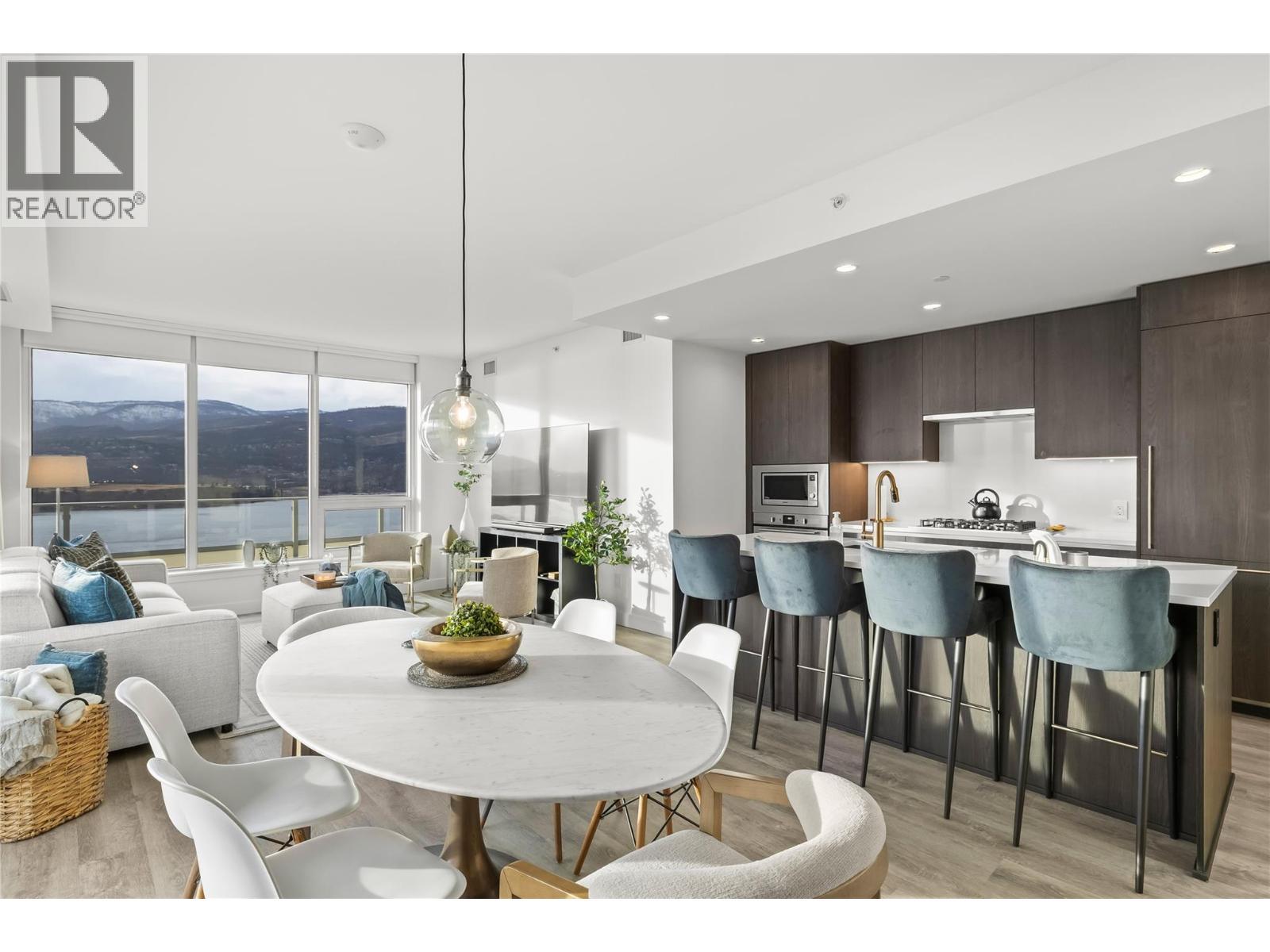 The newly completed, Water Street by the Park sets a new benchmark for luxury in downtown Kelowna. Perched on the 20th floor, this exceptional residence showcases breathtaking lake and mountain views stretching both South and North across Okanagan Lake and natural light pours in from ever window. Offering 3 bedrooms +den/storage room, the spacious layout is complemented by two secure, side-by-side parking stalls. A wrap-around balcony extends the living space outdoors, creating a seamless connection to the ever-changing views. The primary suite is a true private retreat with balcony access, a walk-through closet, ensuite with double vanity, soaker tub, and separate glass shower. The designer kitchen is equally impressive, complete with a large island, gas cooktop, wall oven, built-in microwave, integrated fridge/freezer and wine fridge. Two additional bedrooms are thoughtfully positioned on the opposite side of the home for privacy and flexibility, with one offering its own private balcony. Residents of Water Street by the Park enjoy an unparalleled collection of resort-style amenities, including a rooftop style pool, 2 hot tubs, fire tables, fully equipped fitness centre, yoga and spin studio, sauna, theatre, putting green, dog wash, indoor play place, and multiple social and co-working spaces. Pet-friendly with a dedicated dog run, this prime location places you steps from beaches, shops, cafes, and restaurants—everything that defines the true Okanagan lifestyle. (id:6769)