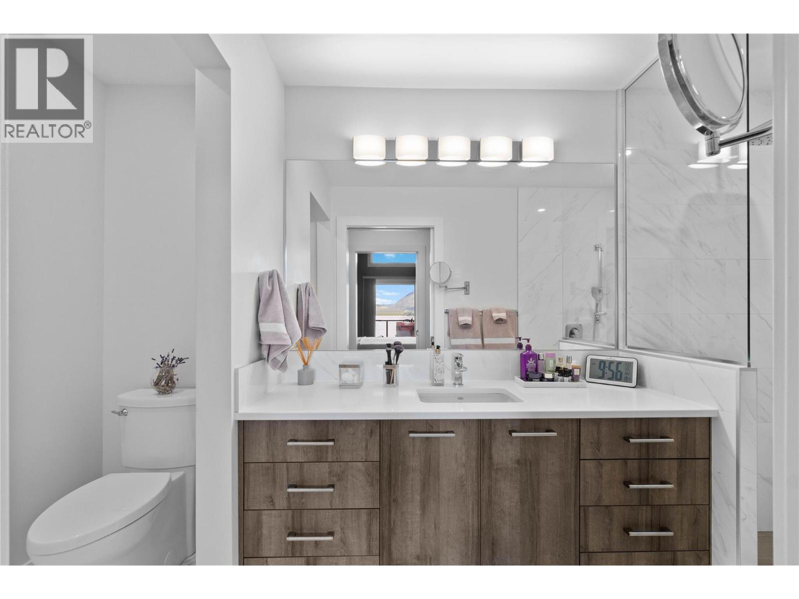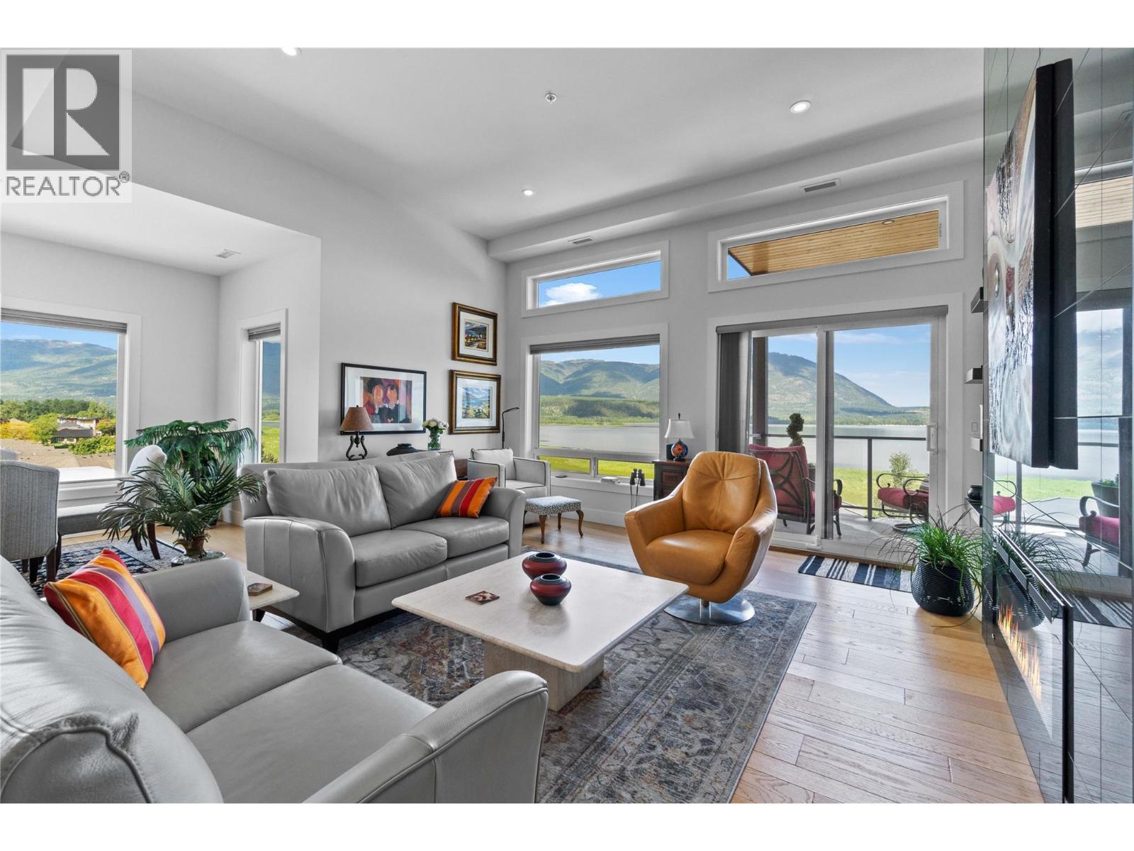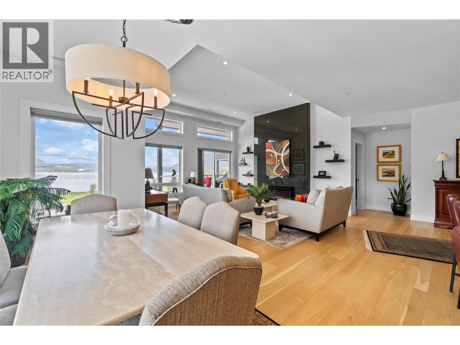 Experience the best of lakeside living in this stunning top-floor condo overlooking the sparkling waters of Shuswap Lake. Built in 2020, this beautifully designed 1,493 sq. ft. home offers two bedrooms, two bathrooms, and an open-concept layout filled with natural light. High ceilings and expansive windows frame breathtaking panoramic views, creating a bright and airy atmosphere throughout. The modern kitchen is both stylish and functional, featuring stainless steel appliances, a large island ideal for entertaining, and a walk-in pantry for added storage. The spacious living area is anchored by a striking floor-to-ceiling electric fireplace, adding warmth, style, and a cozy focal point to the room. The living and dining areas flow seamlessly onto a covered deck, perfect for relaxing while taking in the incredible scenery year-round. The primary suite is a private retreat with direct access to the deck, a generous walk-in closet, and a contemporary ensuite bathroom complete with a walk-in tiled shower. The second bedroom includes custom built-in cabinetry and a desk, offering a flexible space for guests, a home office, or creative use. Additional features include secure underground parking, beautiful modern finishings, and an unbeatable location in downtown Salmon Arm, just steps from restaurants, shops, and the waterfront. This top-floor unit offers the perfect blend of comfort, style, and convenience. (id:6769)